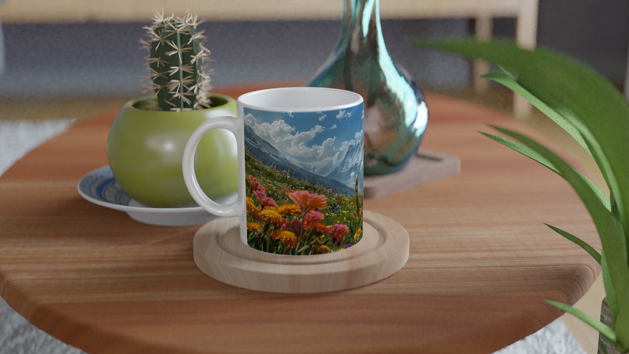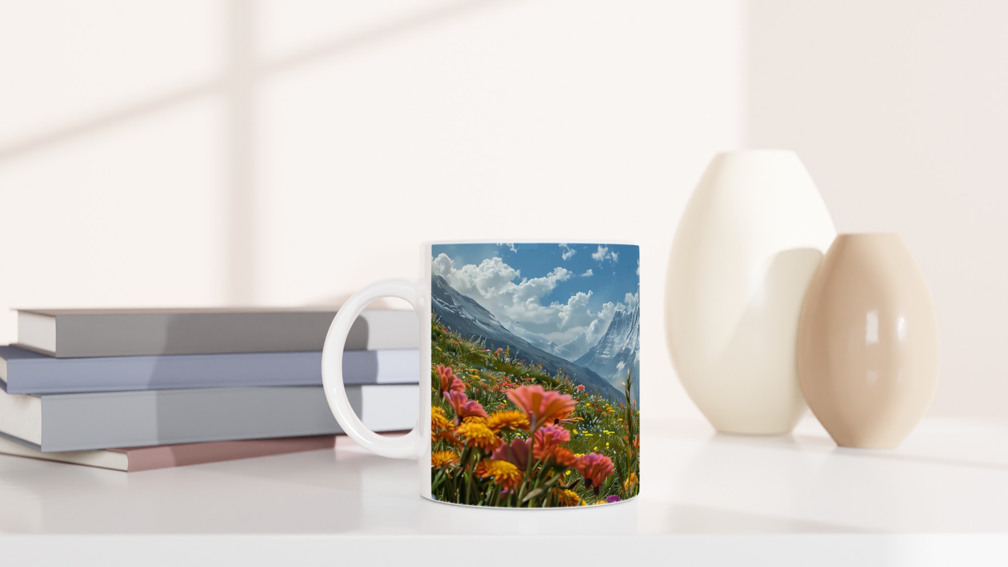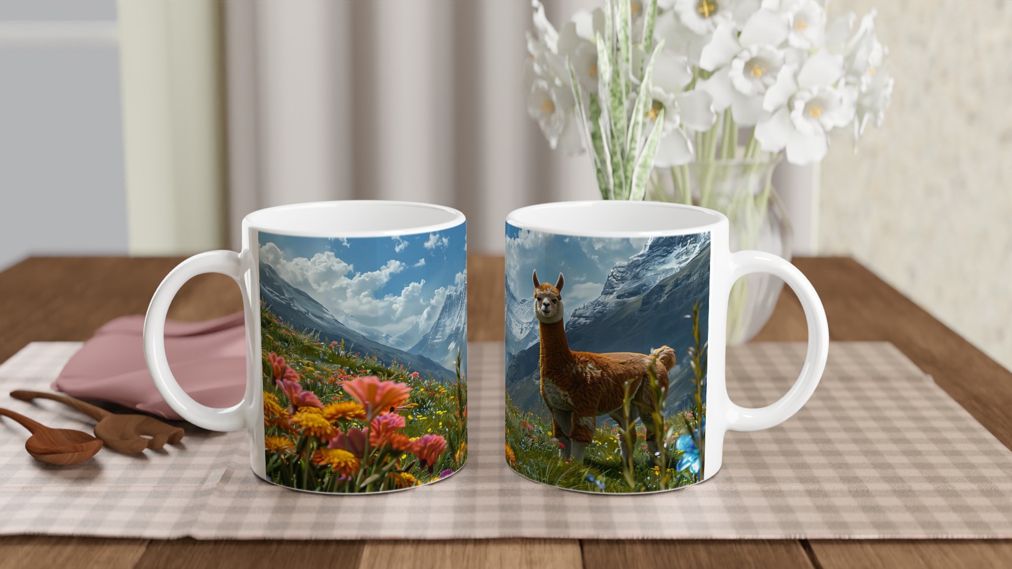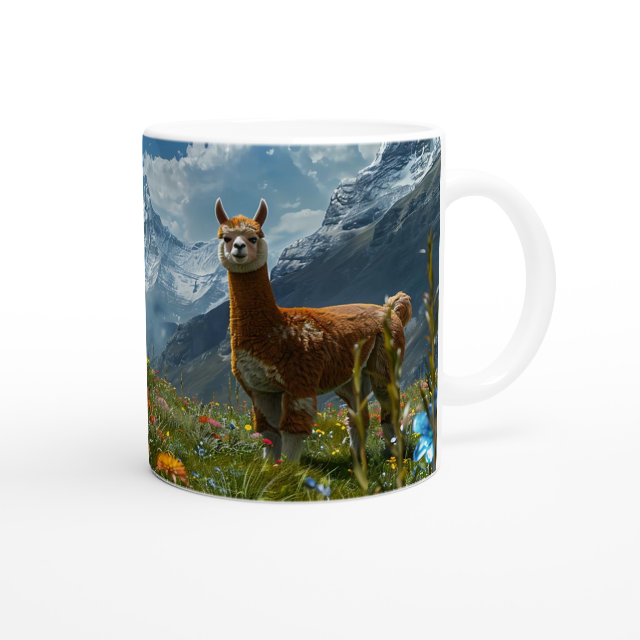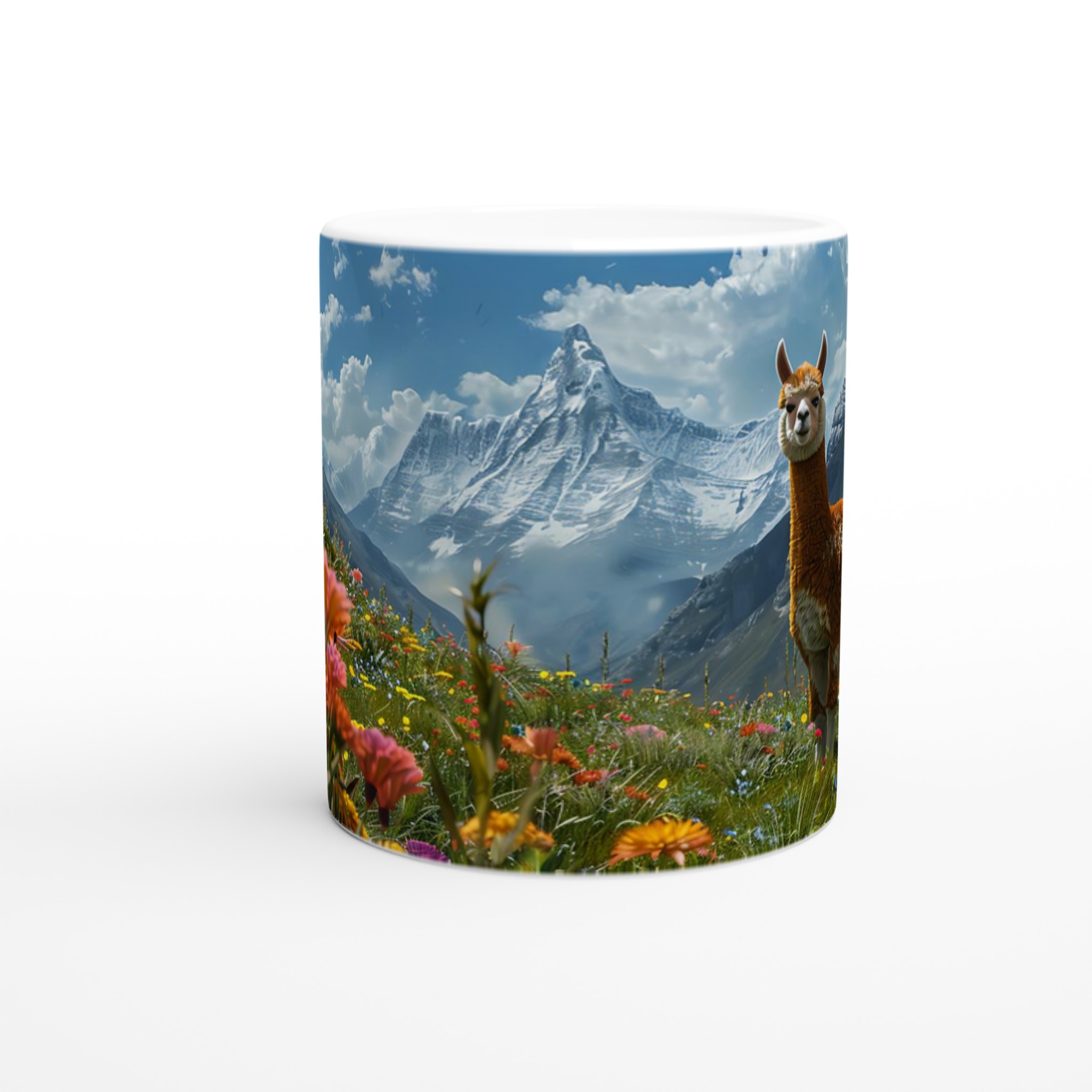 Föreställ dig en lugn alpäng, full av blommor och en söt lama som tittar nyfiket på dig. Denna charmiga keramiska mugg fångar den glädjefyllda energin med sitt livfulla tryck av en lama mitt i ett blomstrande bergslandskap. Den blir snabbt en vardagsfavorit och en påminnelse om naturens skönhet med varje klunk, perfekt för morgonkaffet, kvällens varma choklad eller när du bara vill njuta av en kopp te.