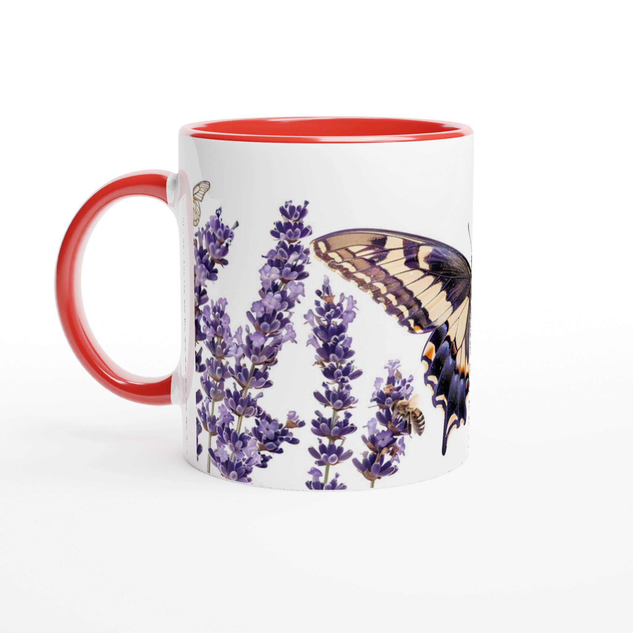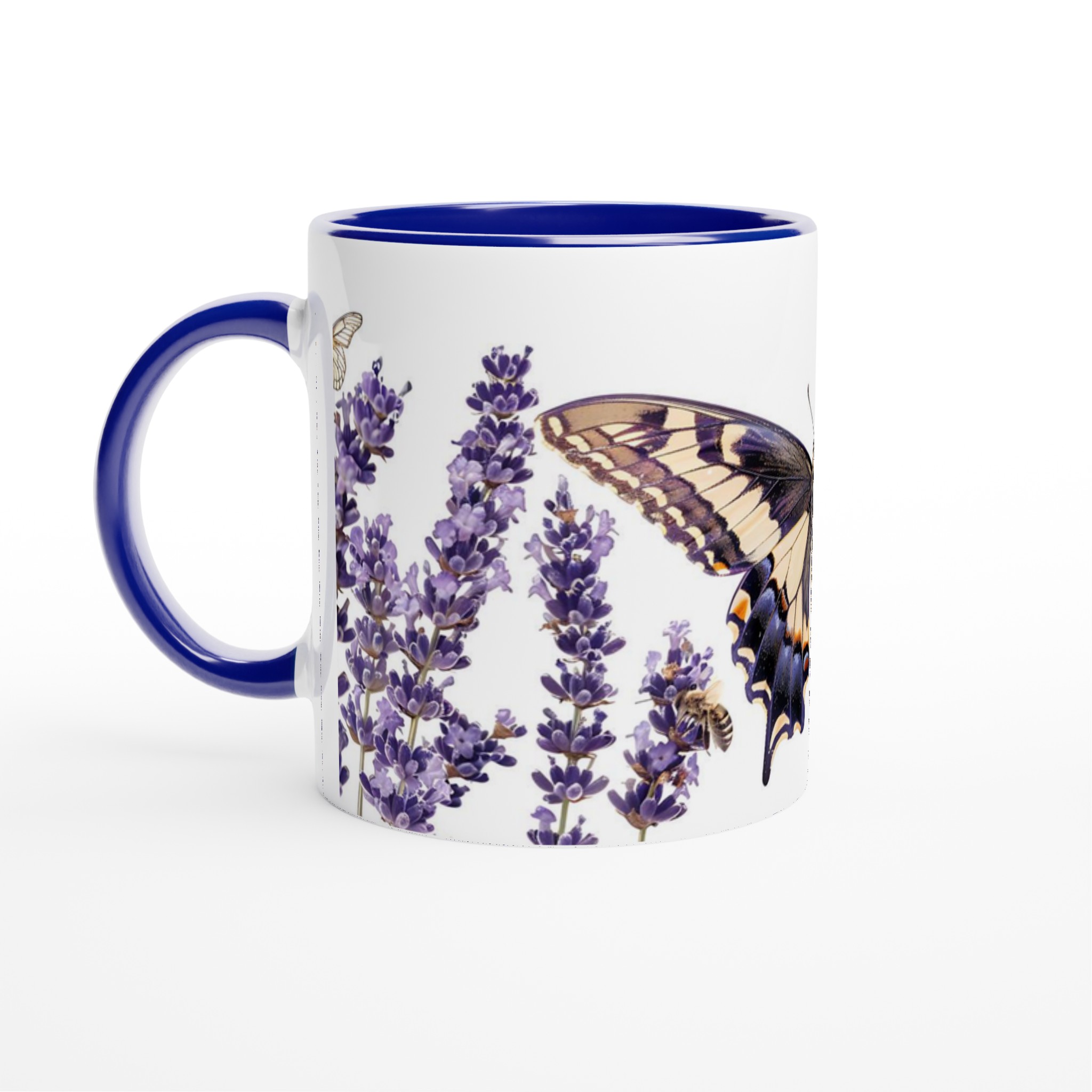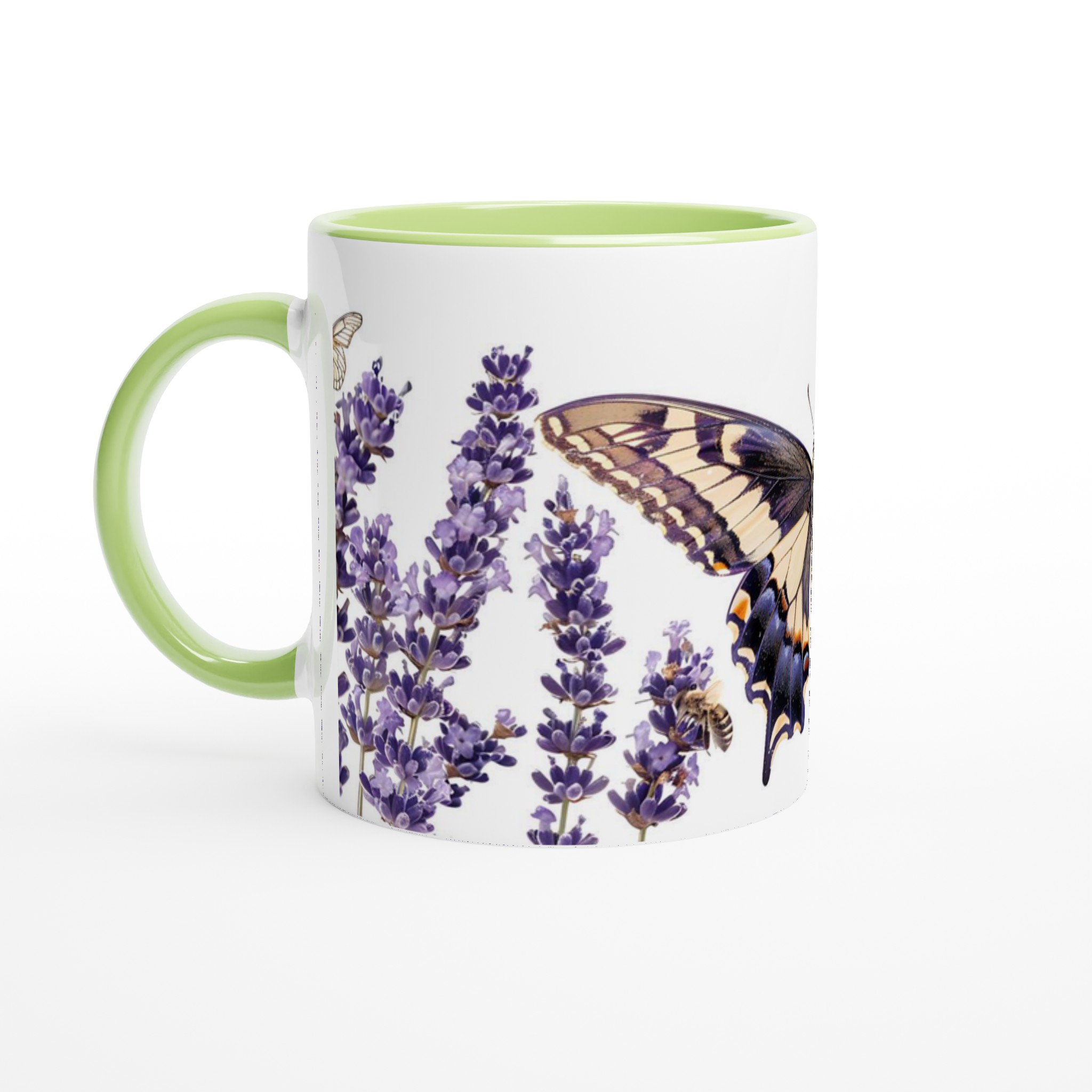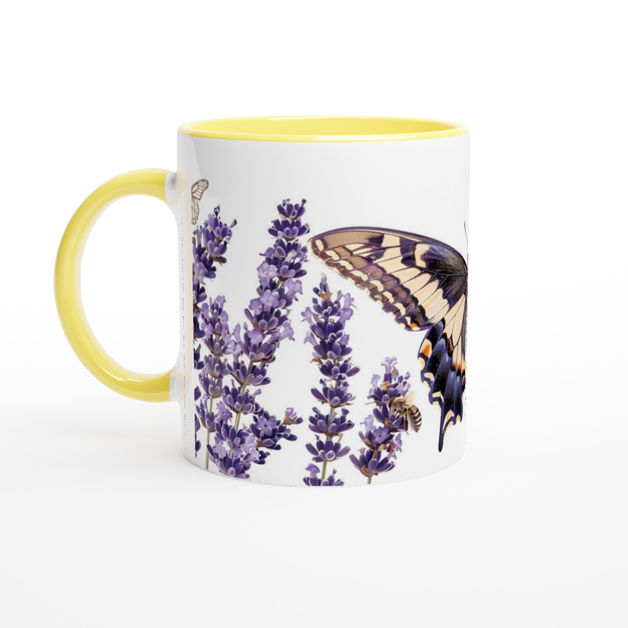 Fånga den lugna skönheten av en sommaräng med vår keramiska mugg med lavendelblommor och fjärilar. Den här stilrena muggen blir snabbt en vardagsfavorit, perfekt för morgonkaffet, kvällens varma choklad eller när du bara vill njuta av en kopp te. Den blanka ytan gör att trycken framhävs med klara och levande färger, som håller sig fina även efter många turer i mikron och diskmaskinen.