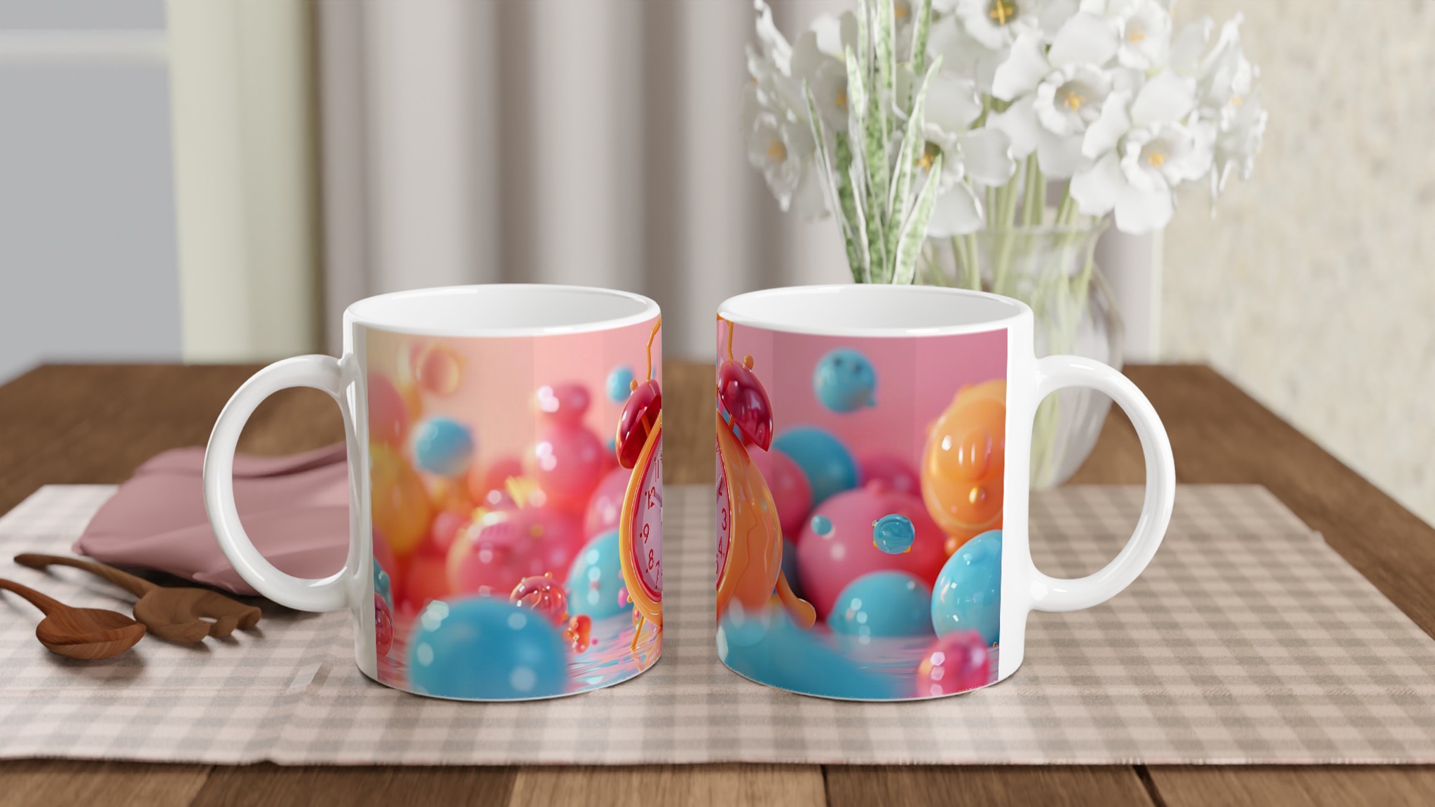 Lys upp din dag med denna lekfulla keramiska mugg, designad med en drömlik palett av pastellfärger. Varje klunk blir en fest för sinnena, perfekt för morgonkaffet, kvällens varma choklad eller när du bara vill njuta av en kopp te i en mugg som sprider glädje. Den blanka ytan framhäver tryck med klara och levande färger som håller sig fina, även efter otaliga turer i mikron och diskmaskinen.