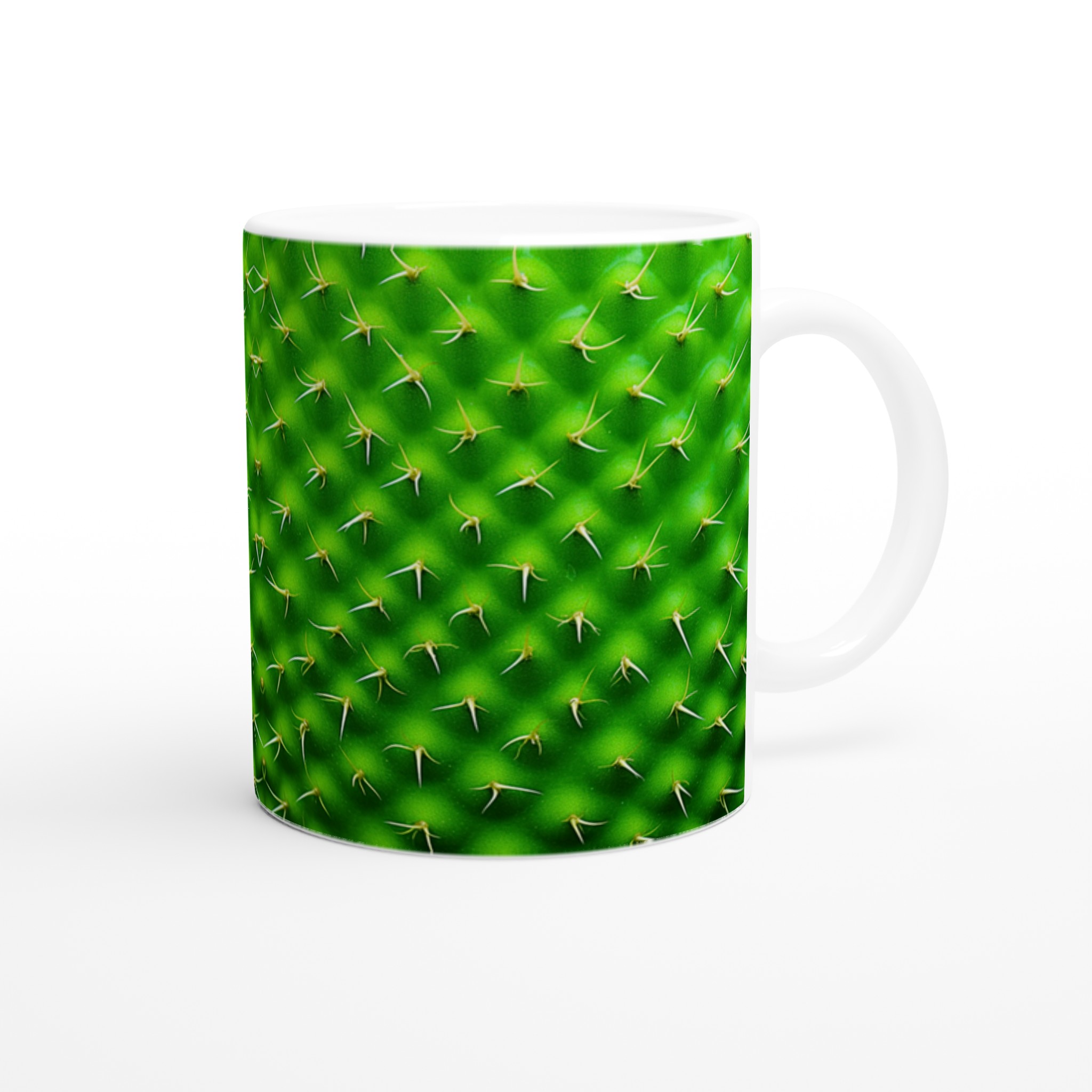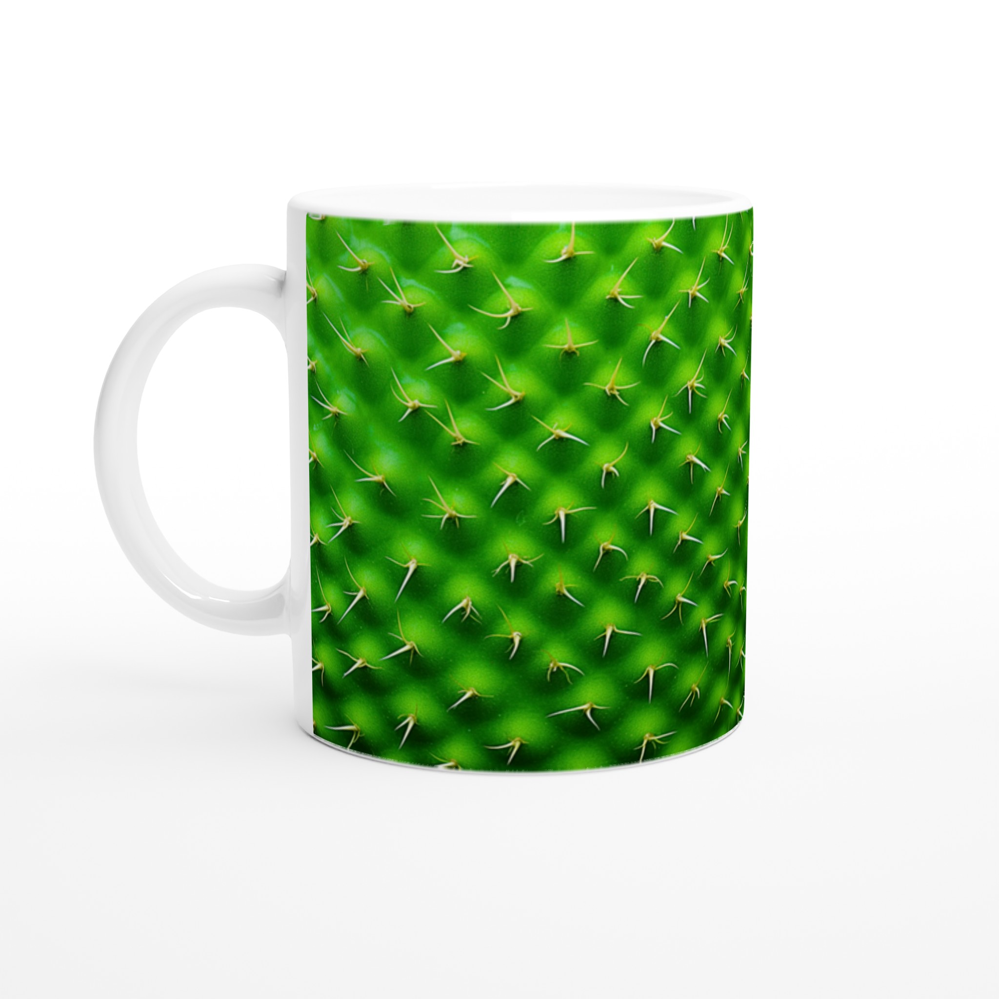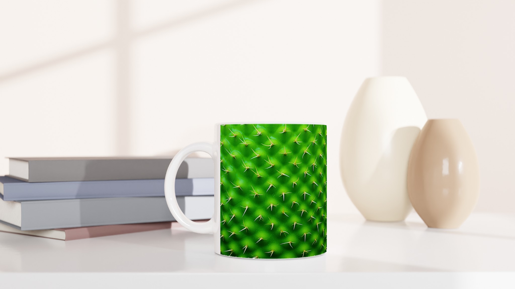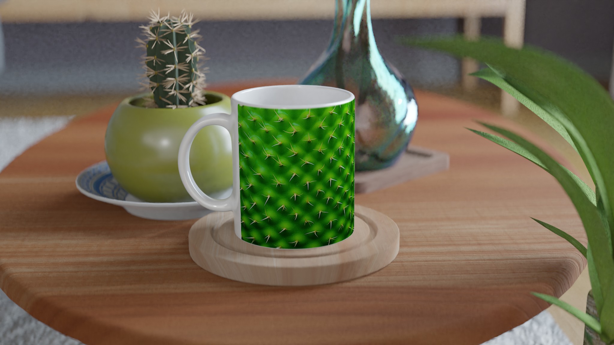 Fånga naturens levande energi med denna unika keramiska mugg, inspirerad av kaktusens förtrollande mönster och friska gröna nyanser. Den här stilrena muggen blir snabbt en vardagsfavorit, perfekt för morgonkaffet, kvällens varma choklad eller när du bara vill njuta av en kopp te. Den blanka ytan framhäver det detaljerade, naturliga trycket med klara och levande färger, som håller sig fina även efter många turer i mikron och diskmaskinen.