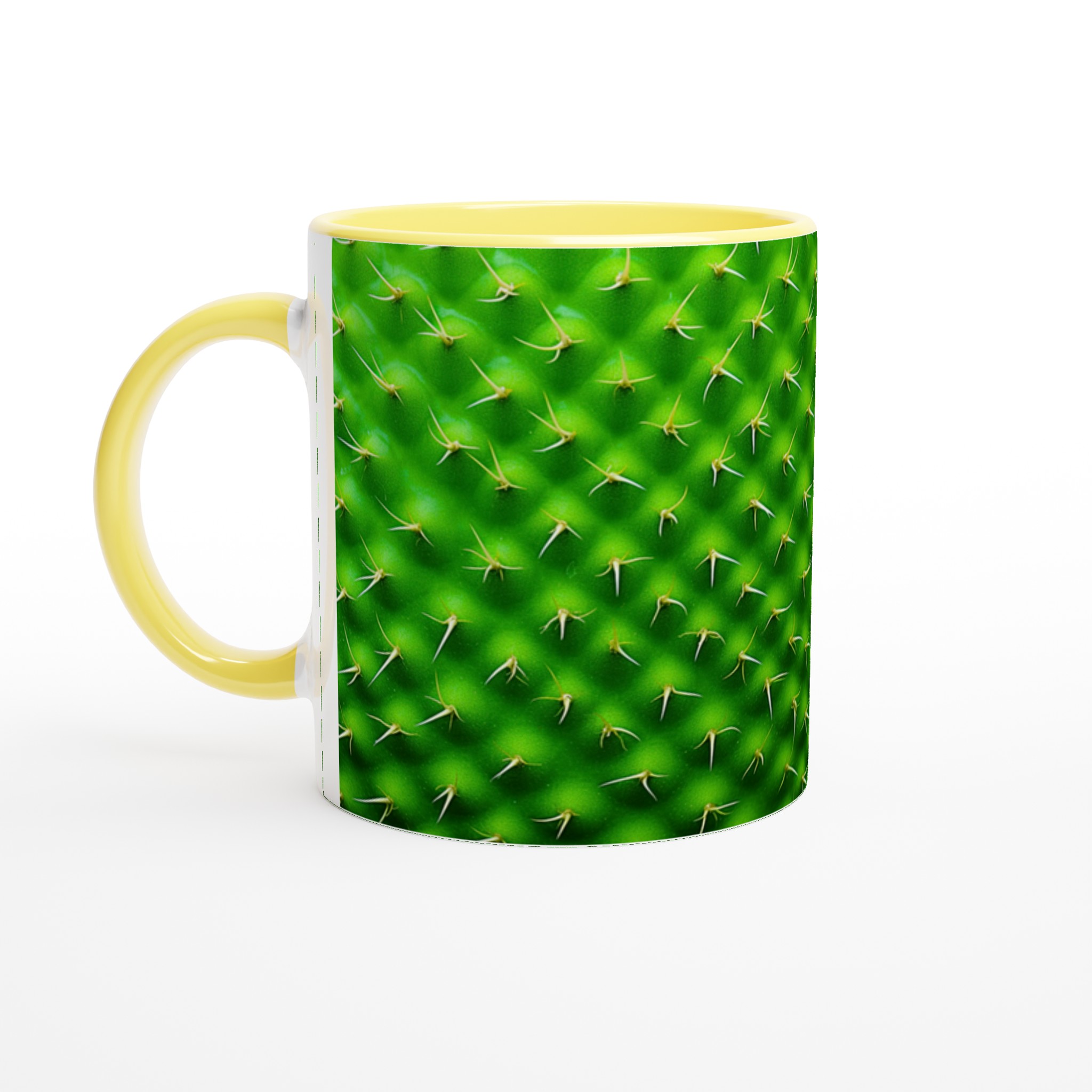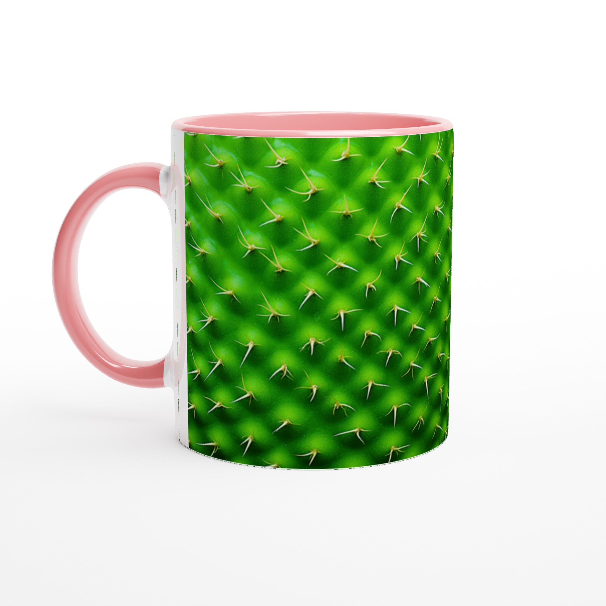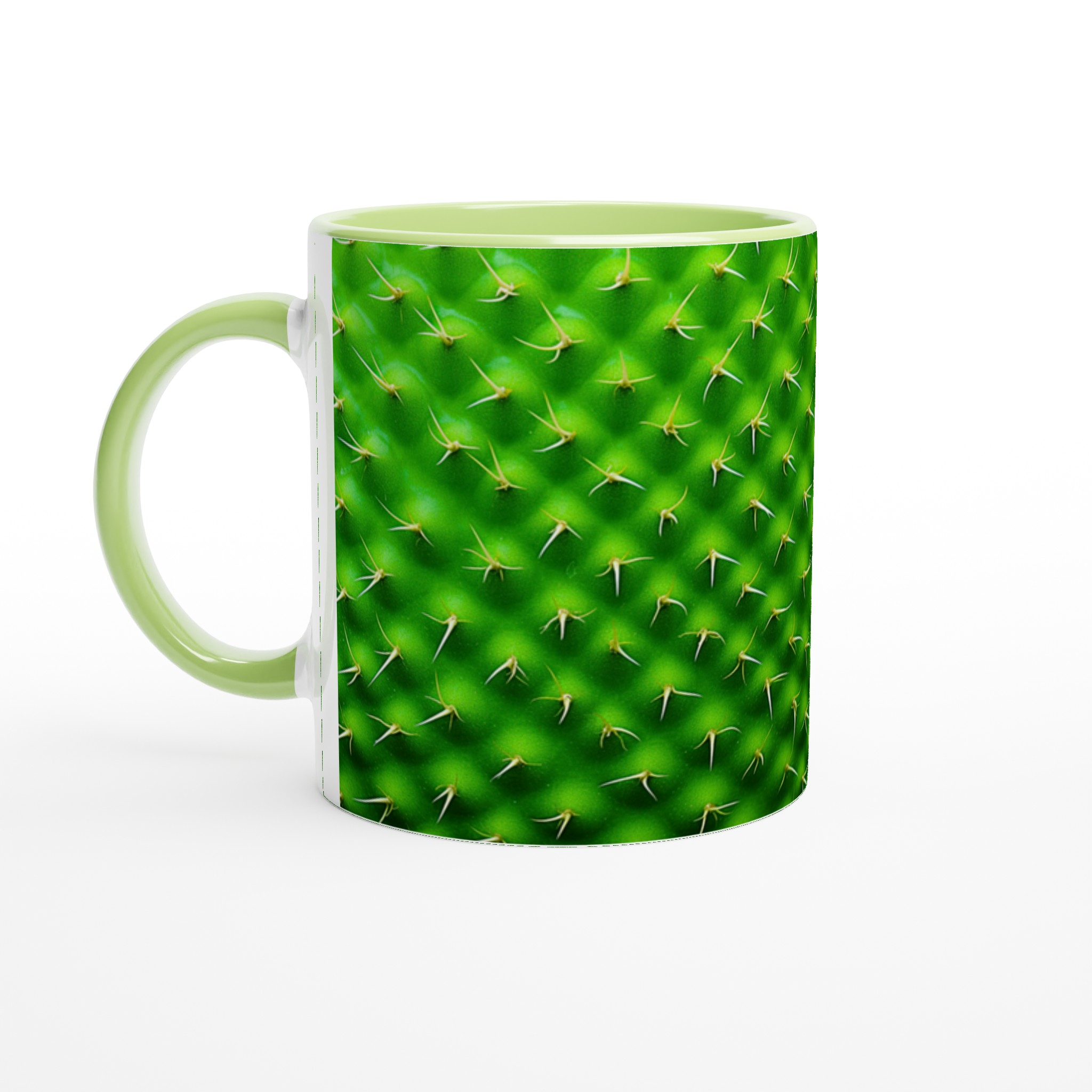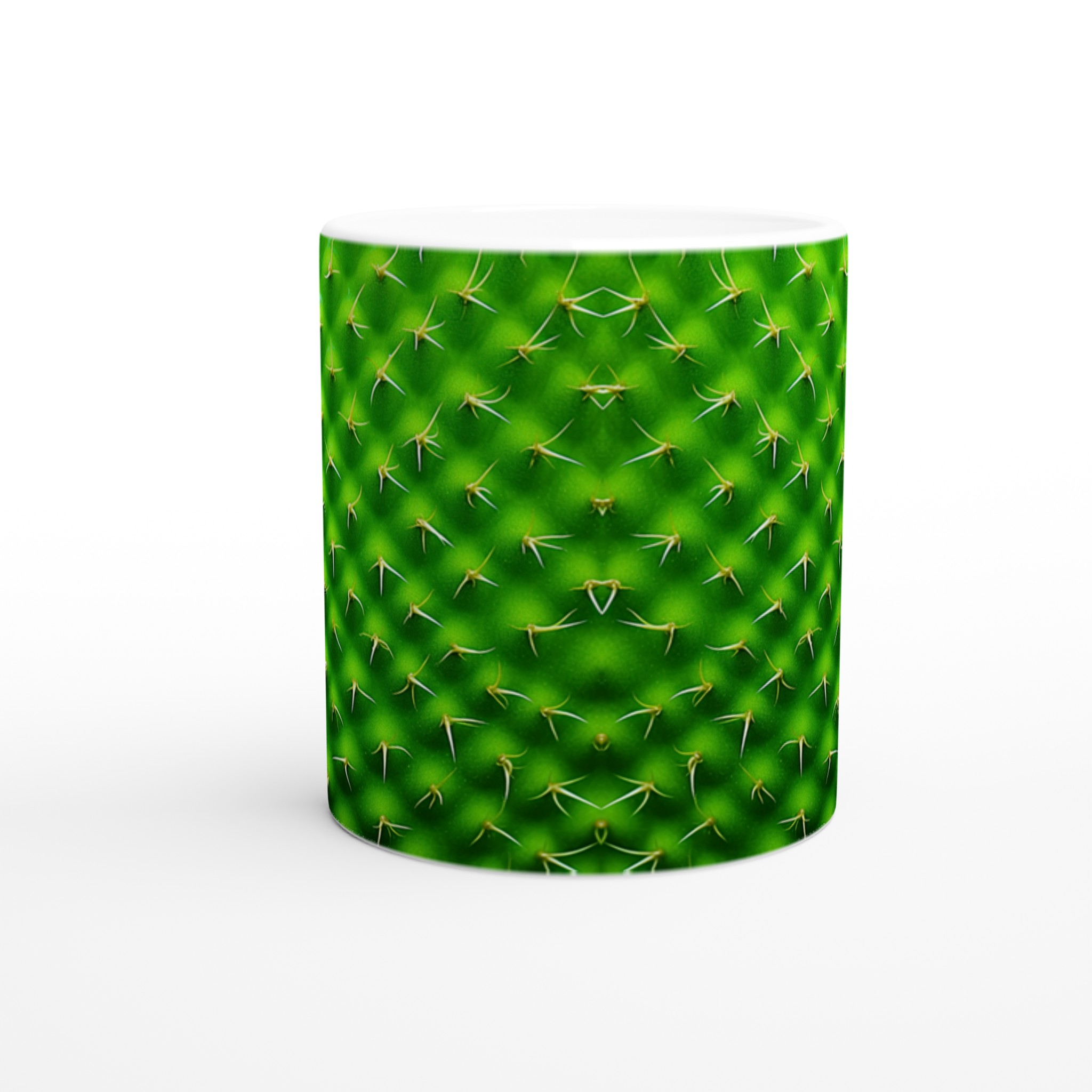Fånga naturens levande energi med denna unika keramiska mugg, inspirerad av kaktusens förtrollande mönster och friska gröna nyanser. Den här stilrena muggen blir snabbt en vardagsfavorit, perfekt för morgonkaffet, kvällens varma choklad eller när du bara vill njuta av en kopp te. Den blanka ytan framhäver det detaljerade, naturliga trycket med klara och levande färger, som håller sig fina även efter många turer i mikron och diskmaskinen.