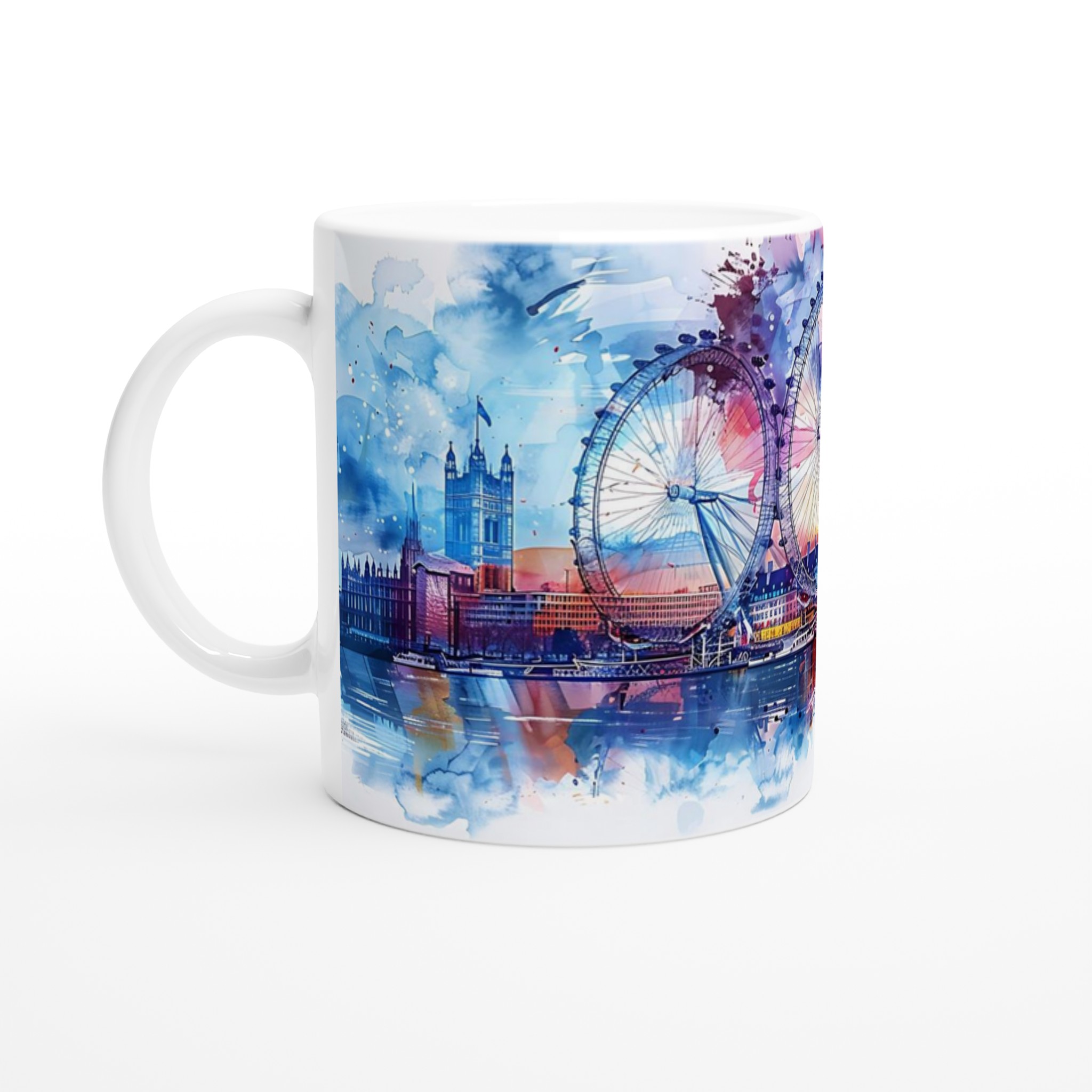 Den blanka ytan ger ett skarpt och levande tryck som verkligen sticker ut, perfekt för att sätta en personlig prägel på din fikastund eller som en minnesvärd present till den som älskar Storbritanniens huvudstad. Vår premiumkeramikmugg är skapad för att låta detta färgsprakande motiv glänsa, tvätt efter tvätt. Den är tillverkad av högkvalitativ keramik som tål både diskmaskin och mikrovågsugn utan att tappa färg eller glans – en riktig vardagsfavorit som består.