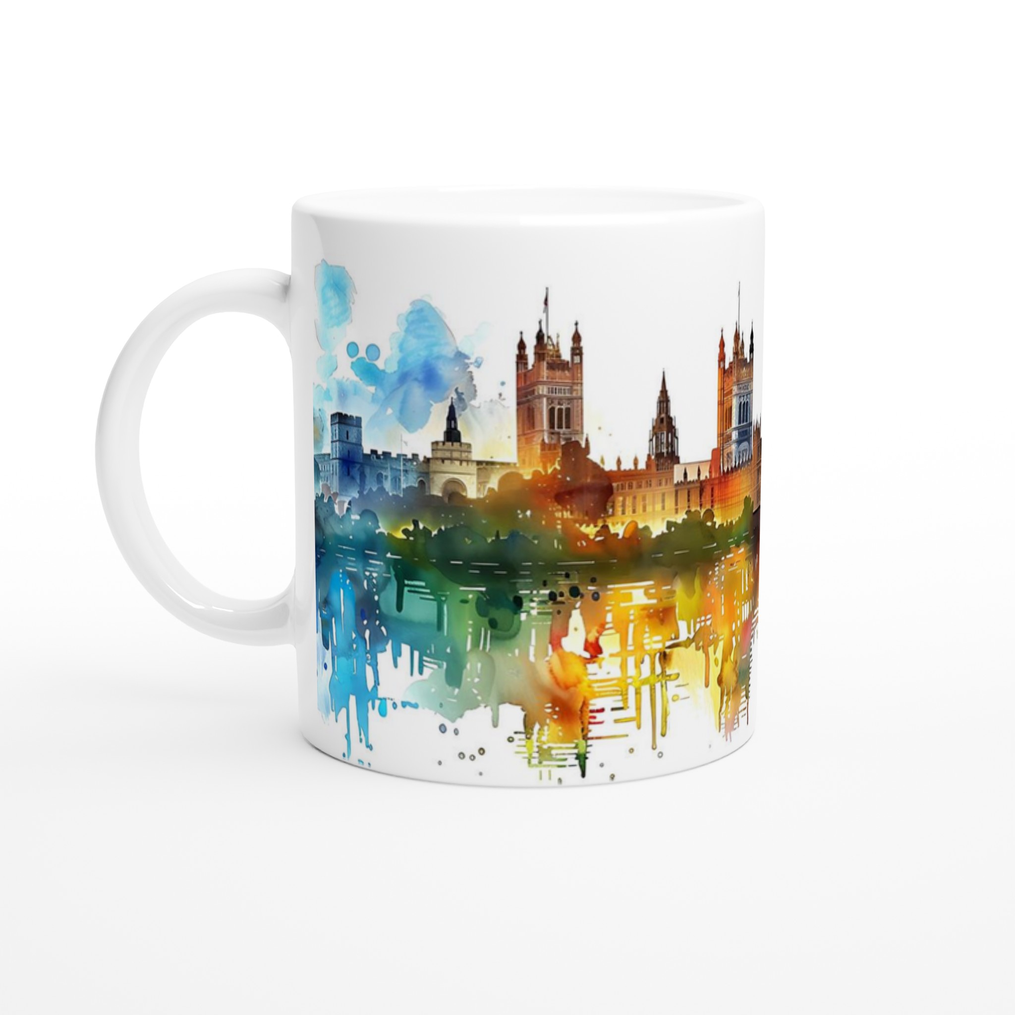 Denna exklusiva keramikmugg pryds av en livfull akvarellillustration av Londons ikoniska skyline, fångad i en explosion av djärva, drömlika färger. Från de majestätiska byggnaderna till den glittrande floden, varje detalj är målad med en lekfull och konstnärlig känsla som förvandlar din dryckesupplevelse till en daglig hyllning till den brittiska huvudstaden. Det blanka vita ytan ger ett skarpt och levande tryck som verkligen sticker ut, oavsett om det är en personlig design, ett roligt citat eller en present till någon du tycker om.