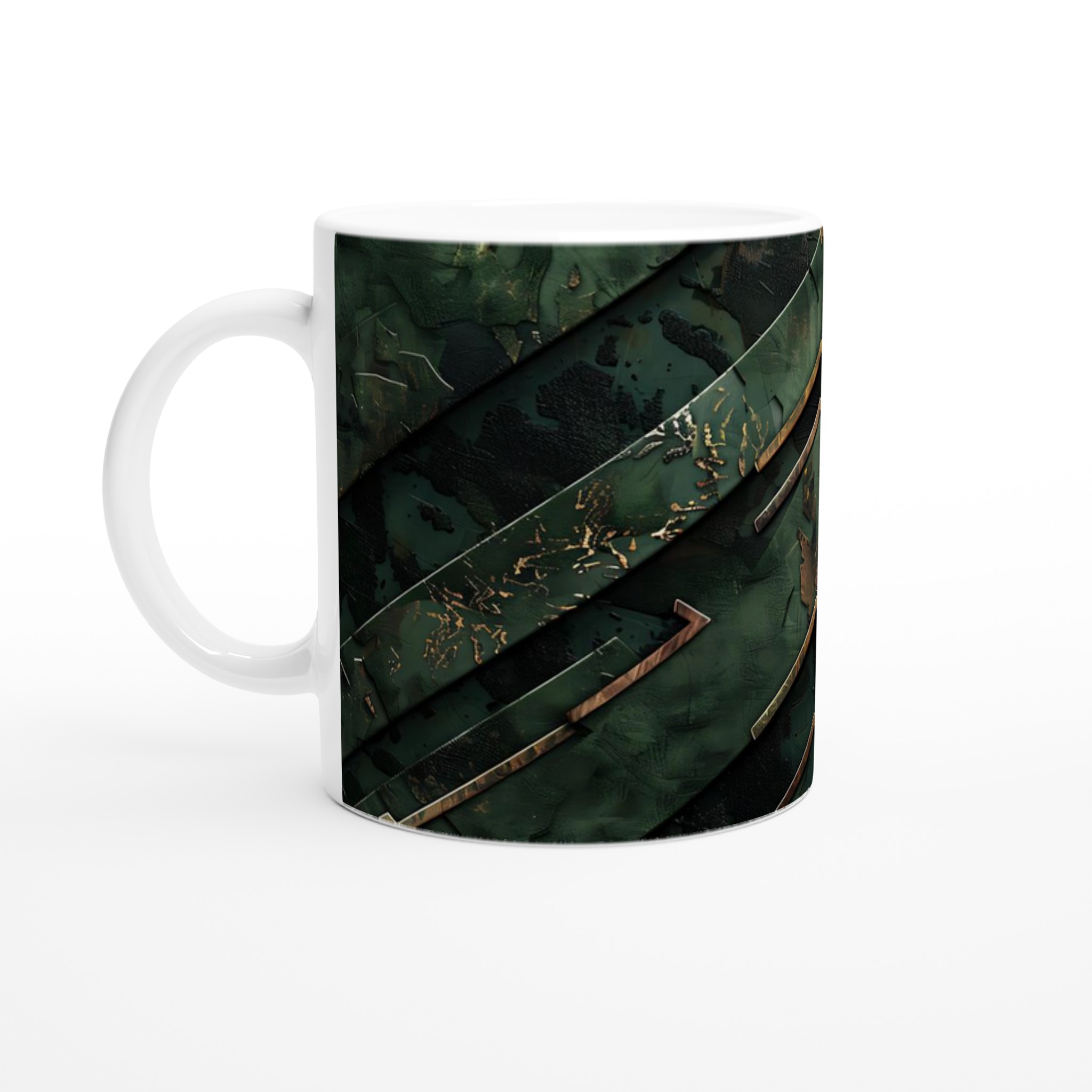 Inspirerad av djupa skogsgröna toner och guldskimrande marmorering, erbjuder denna mugg en touch av exklusivitet till din vardag. Den blanka vita ytan ger ett skarpt och levande tryck som verkligen sticker ut, oavsett om det är en personlig design, ett roligt citat eller en present till någon du tycker om.