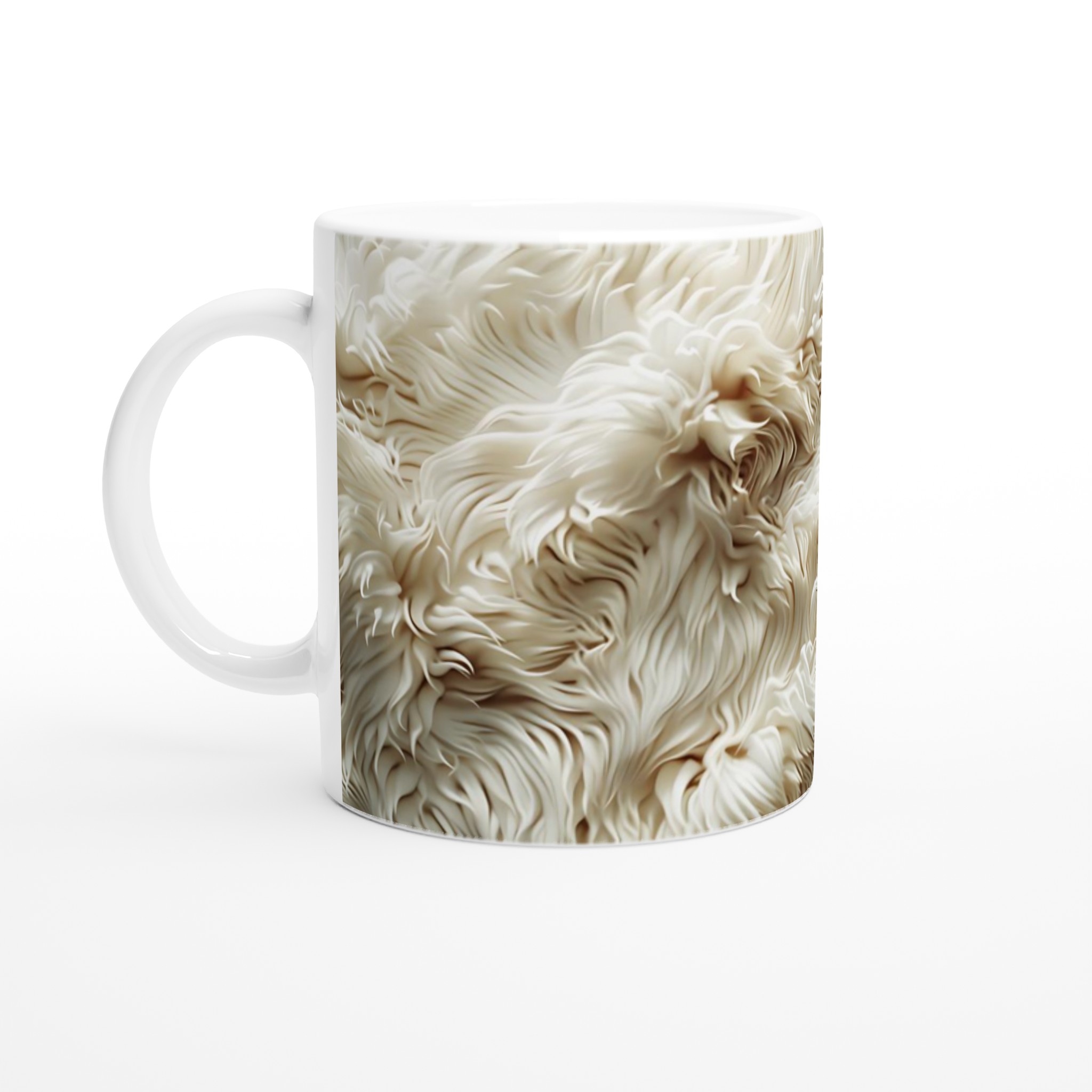 Den blanka vita ytan ger ett skarpt och levande tryck som verkligen sticker ut, oavsett om det är en personlig design, ett roligt citat eller en present till någon du tycker om. Inspirerad av den mjuka texturen hos vit fuskpäls, ger denna mugg en känsla av lyx och komfort till din dagliga rutin. Varje detalj i trycket framhäver den subtila elegansen och det mysiga intrycket.