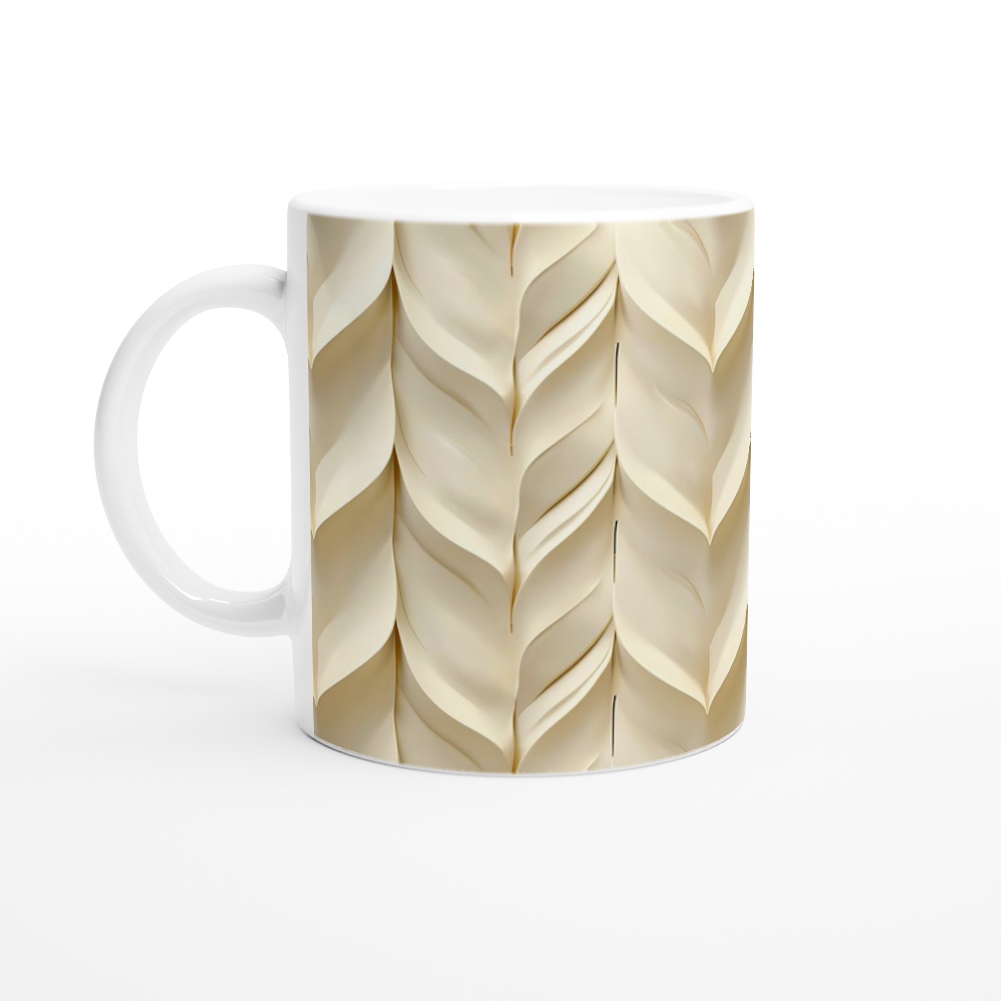 Inspirerad av naturens elegans, med ett sofistikerat 3D-bladmotiv i en lugnande beige-gräddvit palett, erbjuder denna mugg en touch av exklusivitet till din vardagsrutin. Den blanka vita ytan ger ett skarpt och levande tryck som verkligen sticker ut, oavsett om det är en personlig design, ett roligt citat eller en present till någon du tycker om.