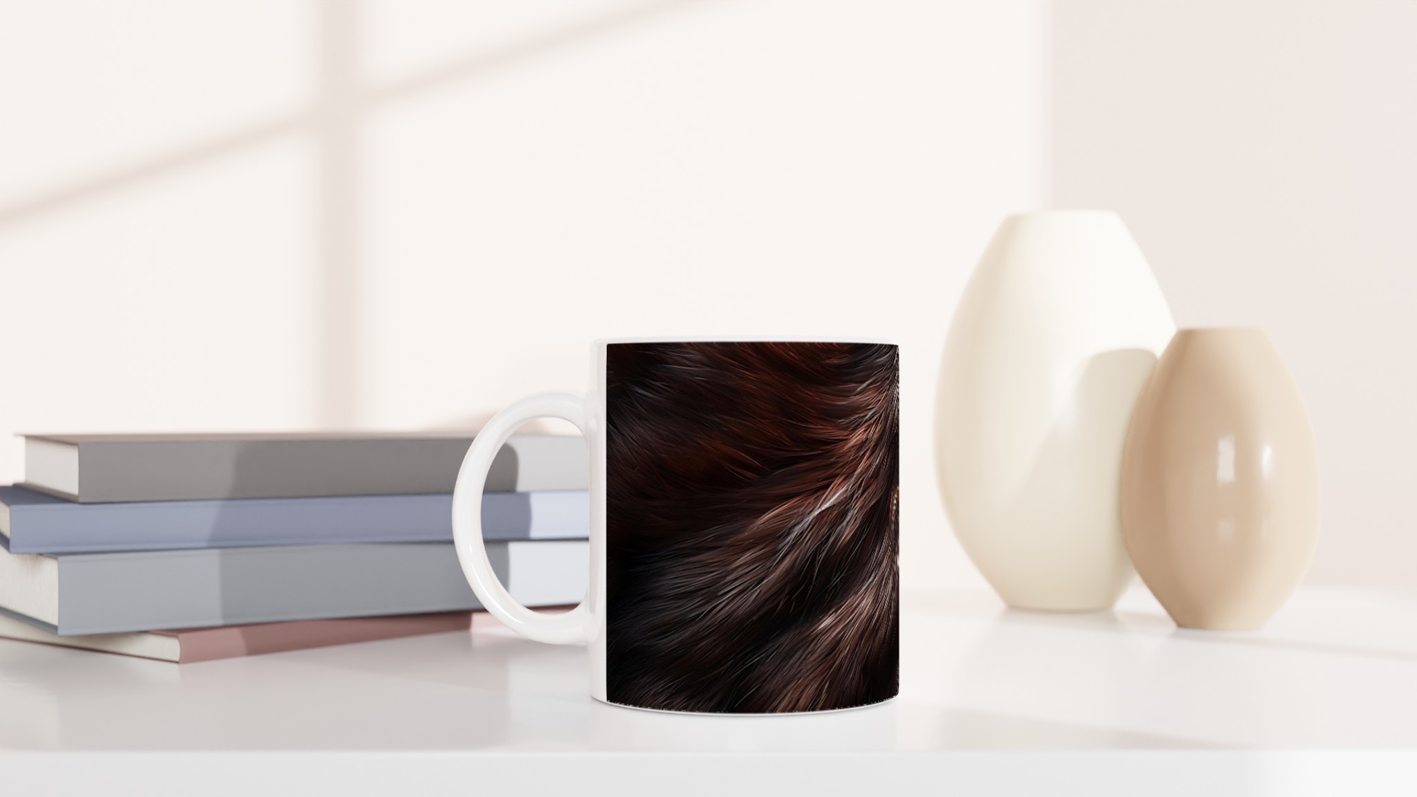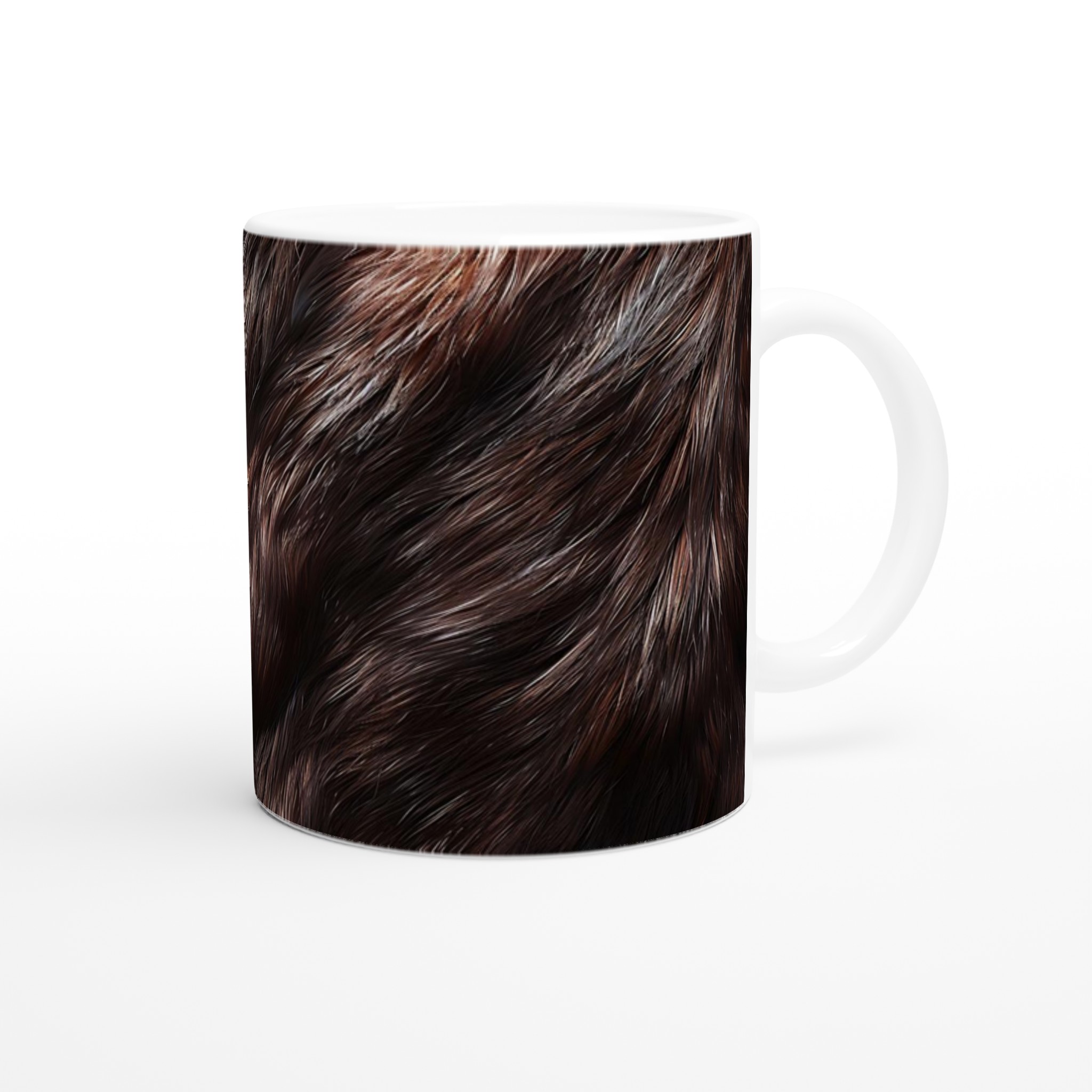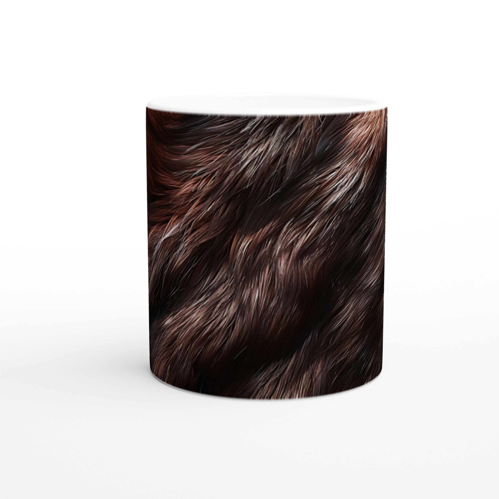 Omfamna naturens skönhet med denna unika keramiska mugg, inspirerad av den rika, texturerade känslan av lyxig brun päls. Den mörka, jordnära färgpaletten med inslag av varma bruna toner och delikata ljusare stråk skapar en sofistikerad och mysig atmosfär, perfekt för att förhöja dina dagliga kaffestunder eller kvällens avkoppling med en varm dryck.