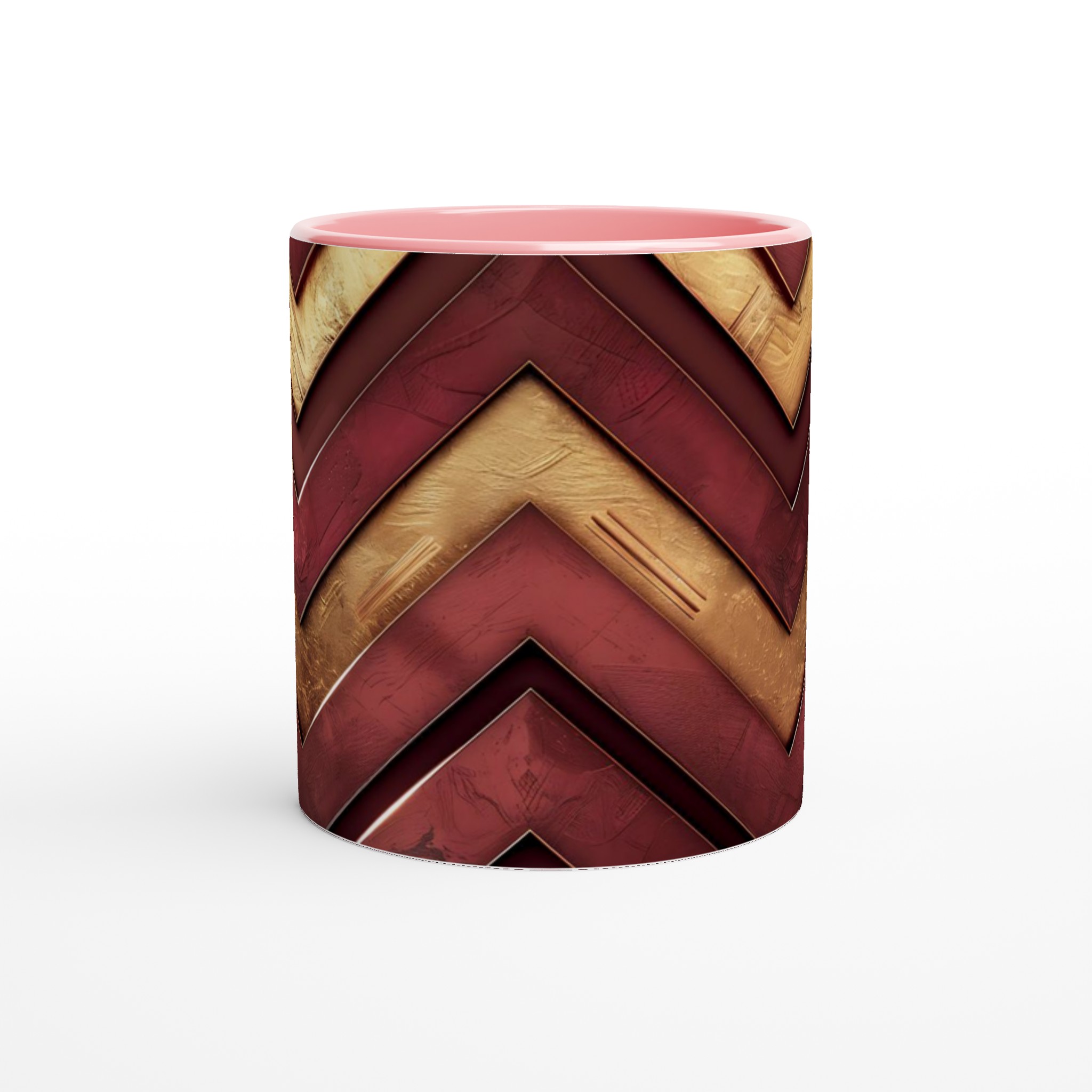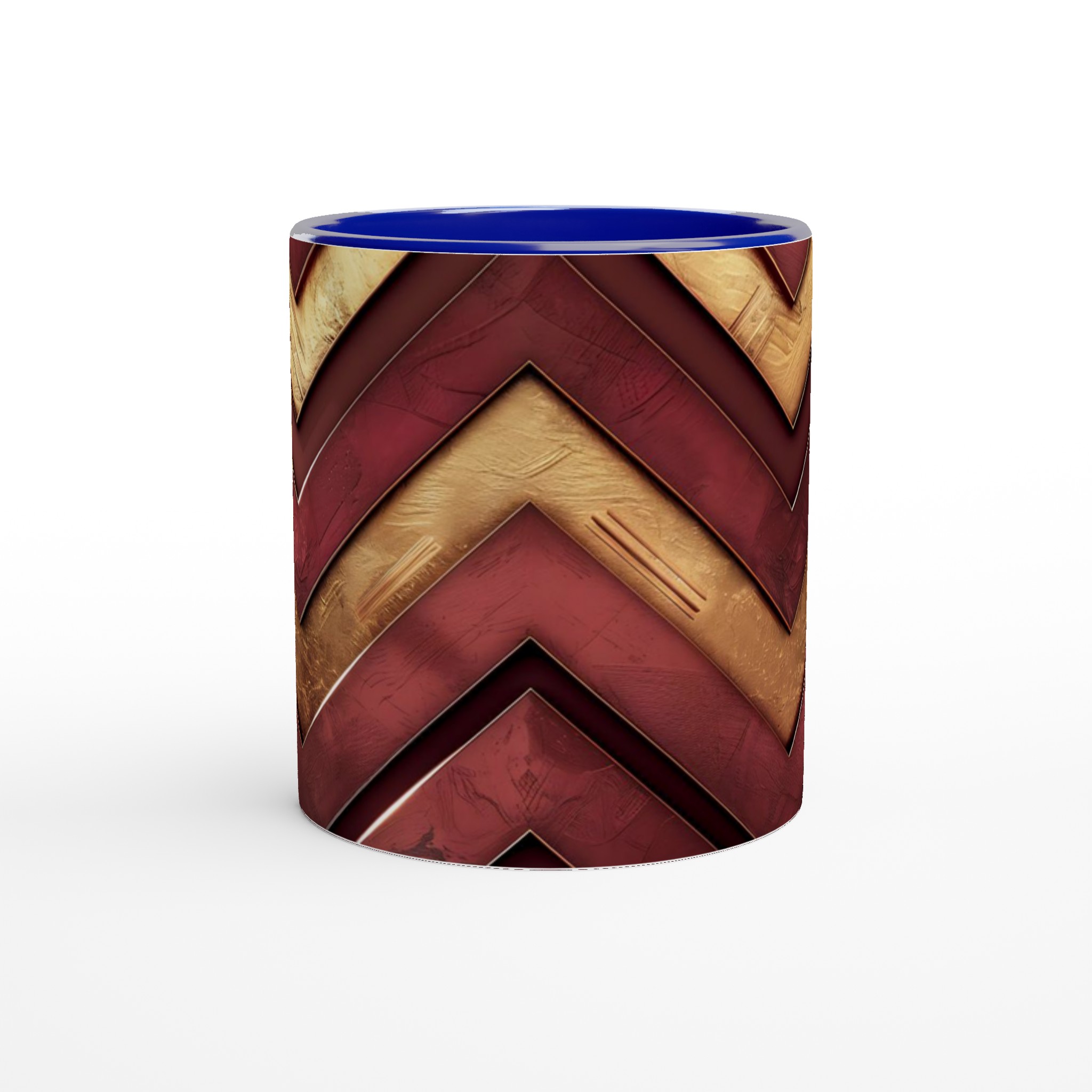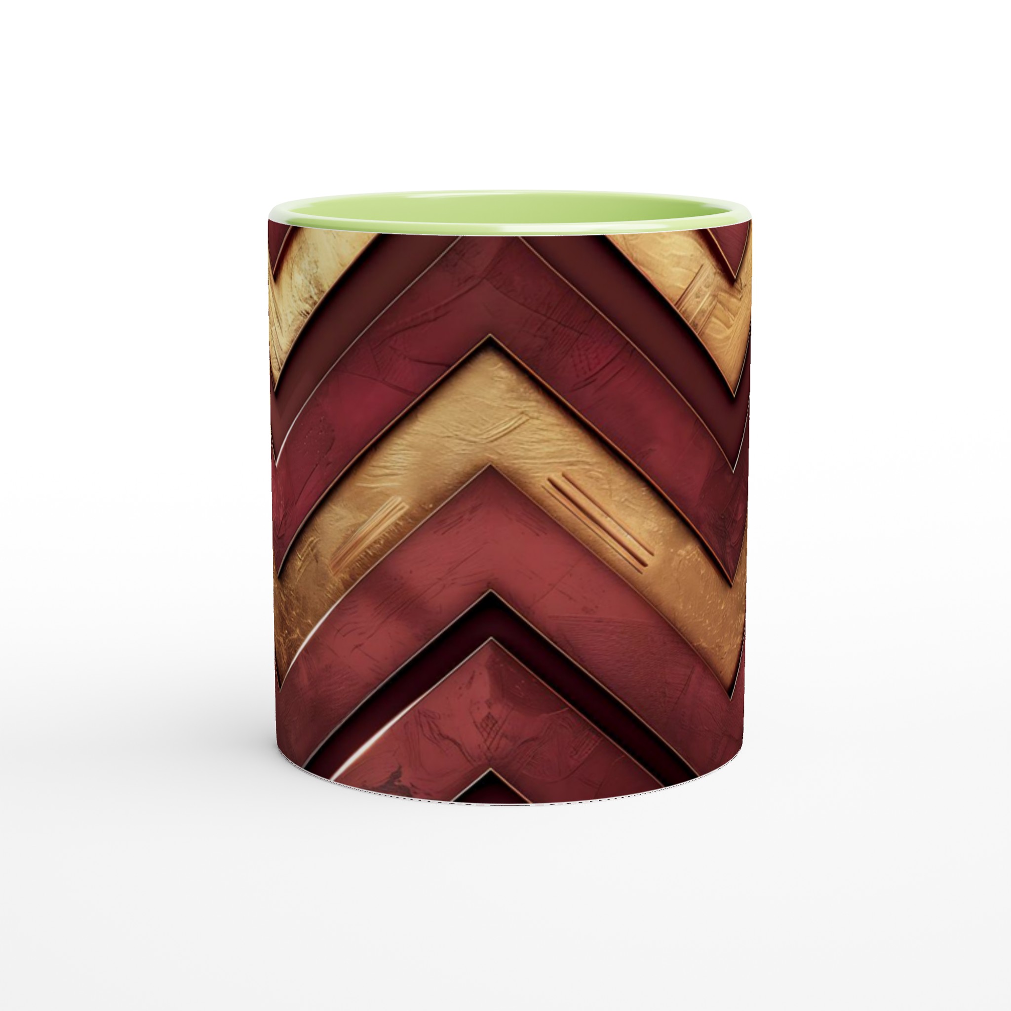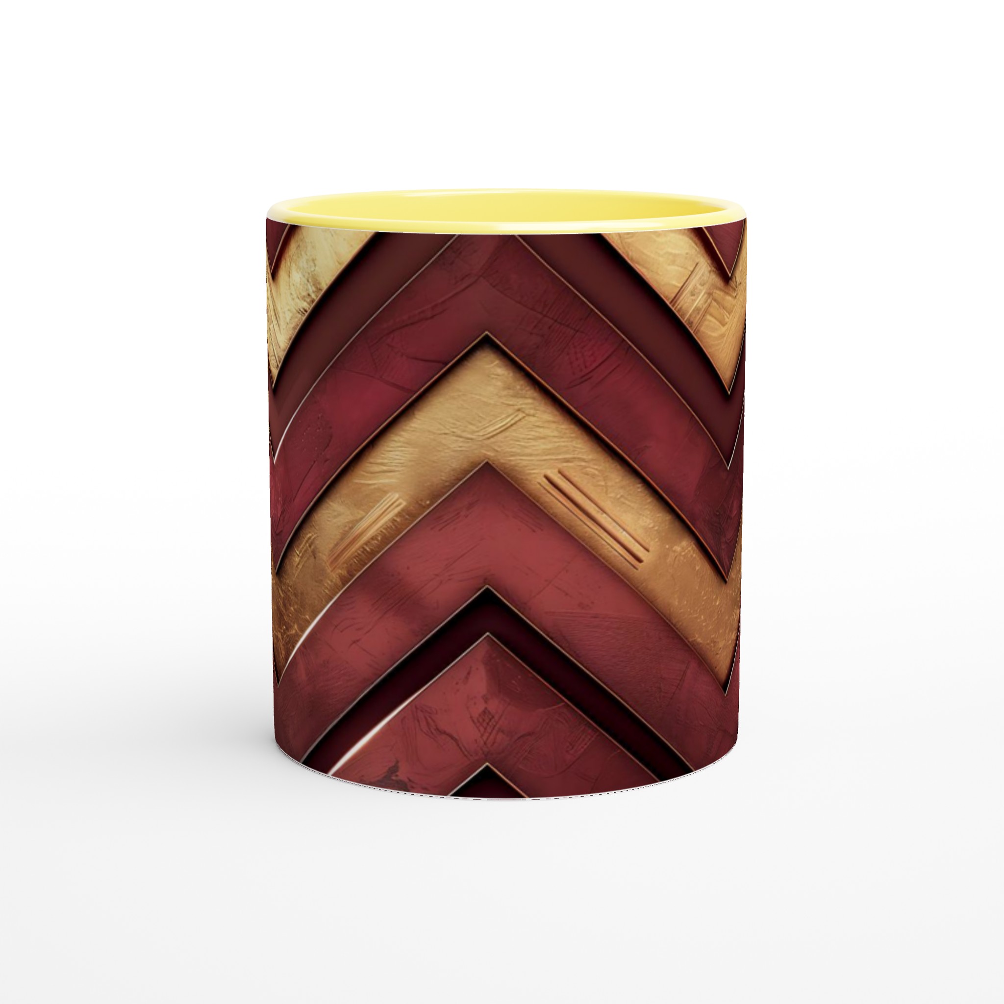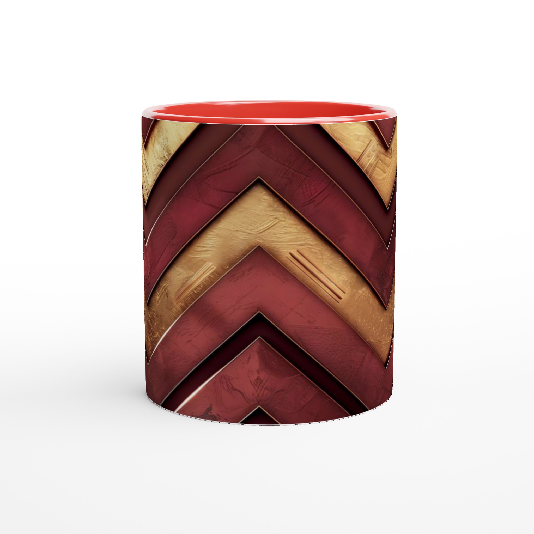 Lyft din fikastund med denna exklusiva keramikmugg, prydd med ett iögonfallande chevronmönster i sofistikerade guld- och vinröda toner. Denna mugg är inte bara en praktisk vardagsfavorit utan också en statement-detalj som ger en touch av lyx till ditt kök eller kontor. Den rika färgpaletten och de skarpa, moderna linjerna gör den till ett perfekt inslag för dig som uppskattar både stil och funktionalitet.