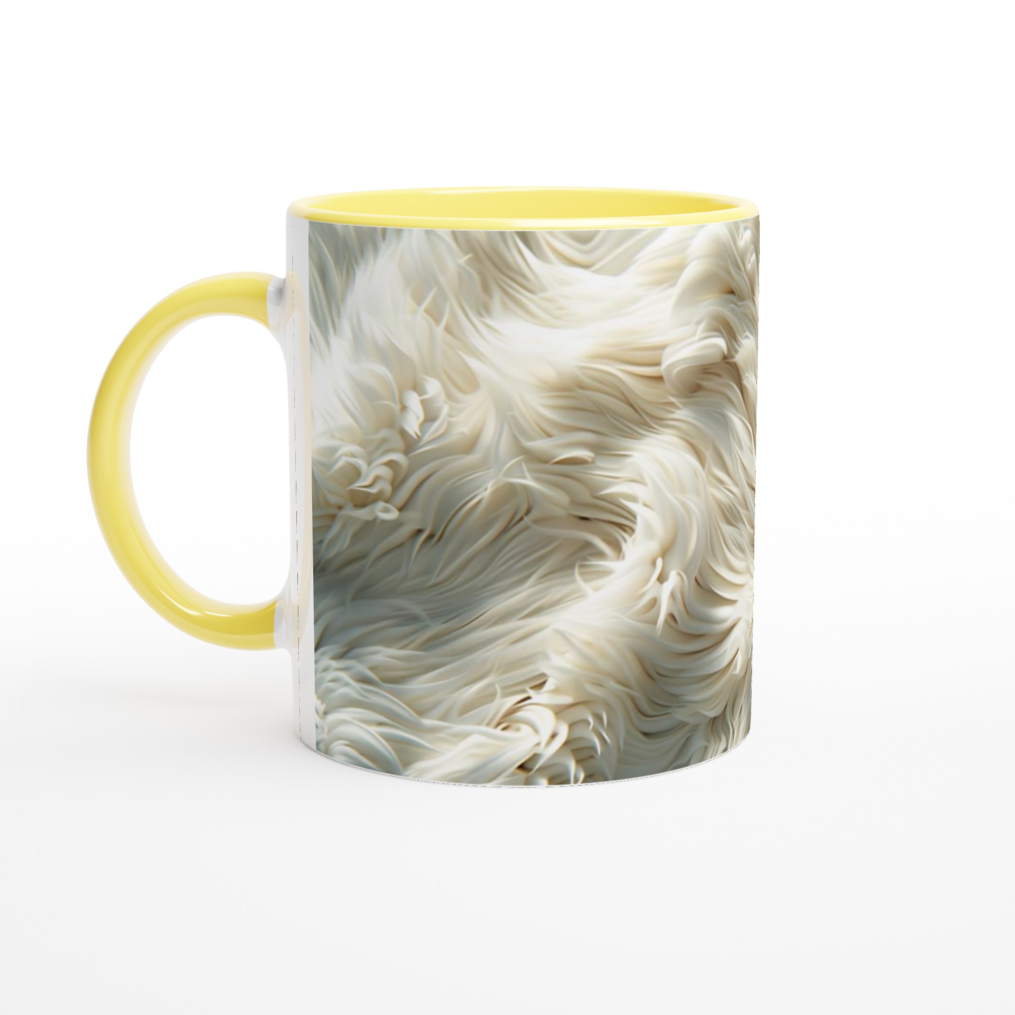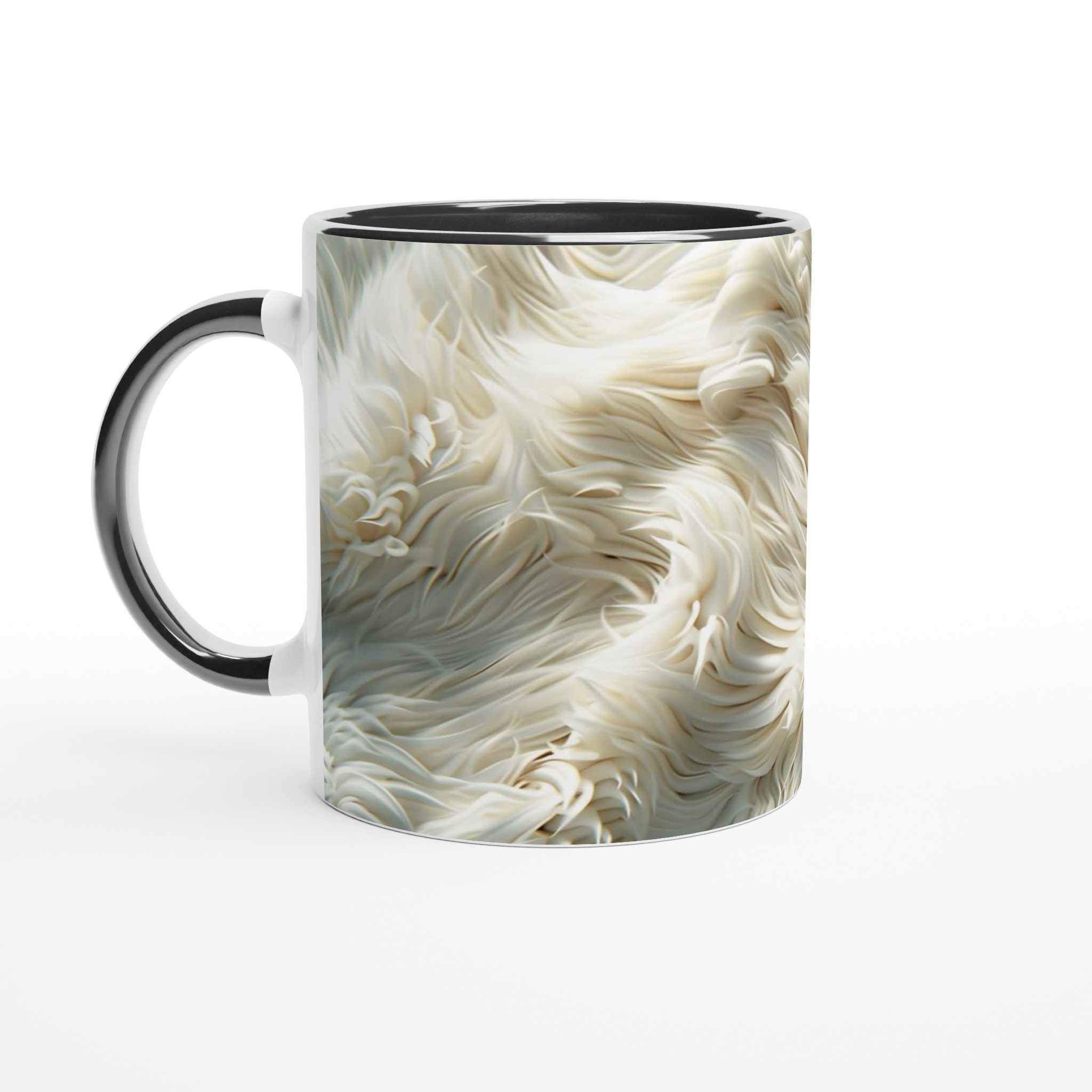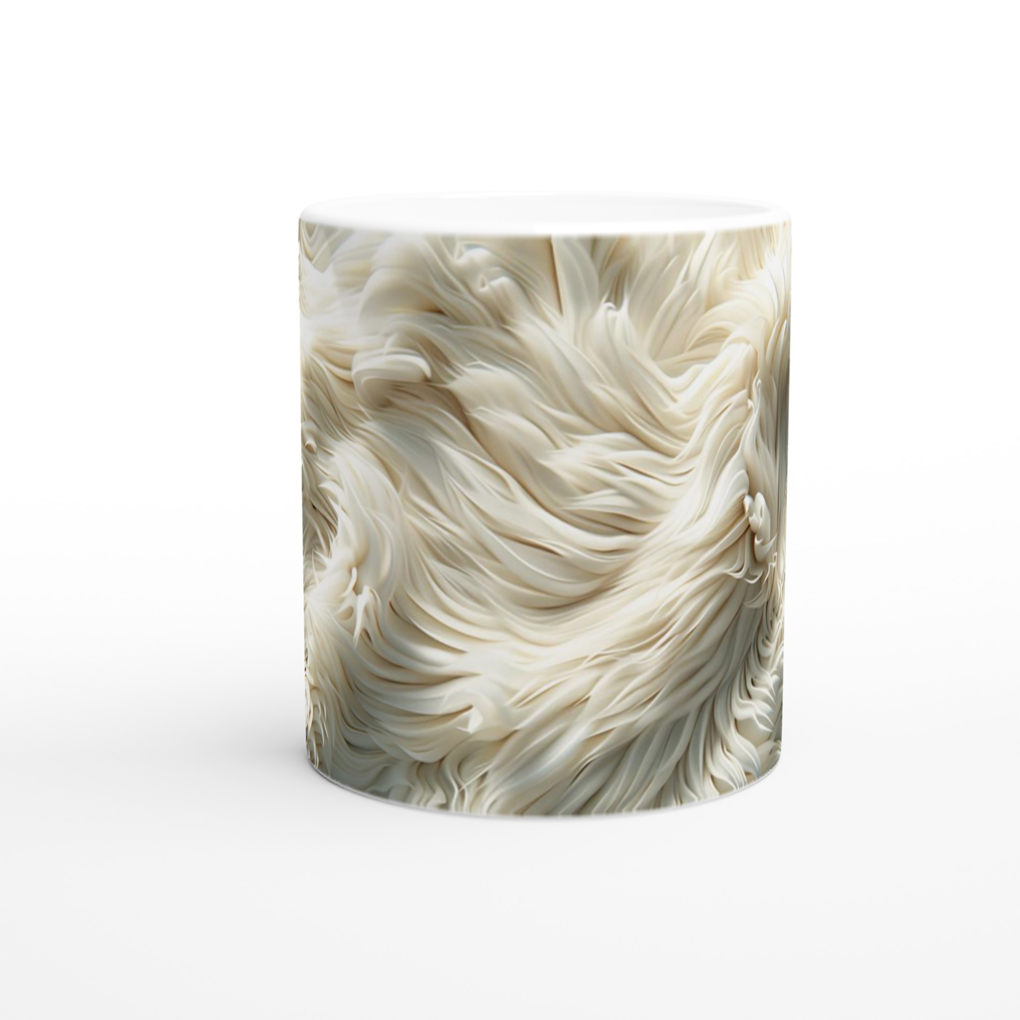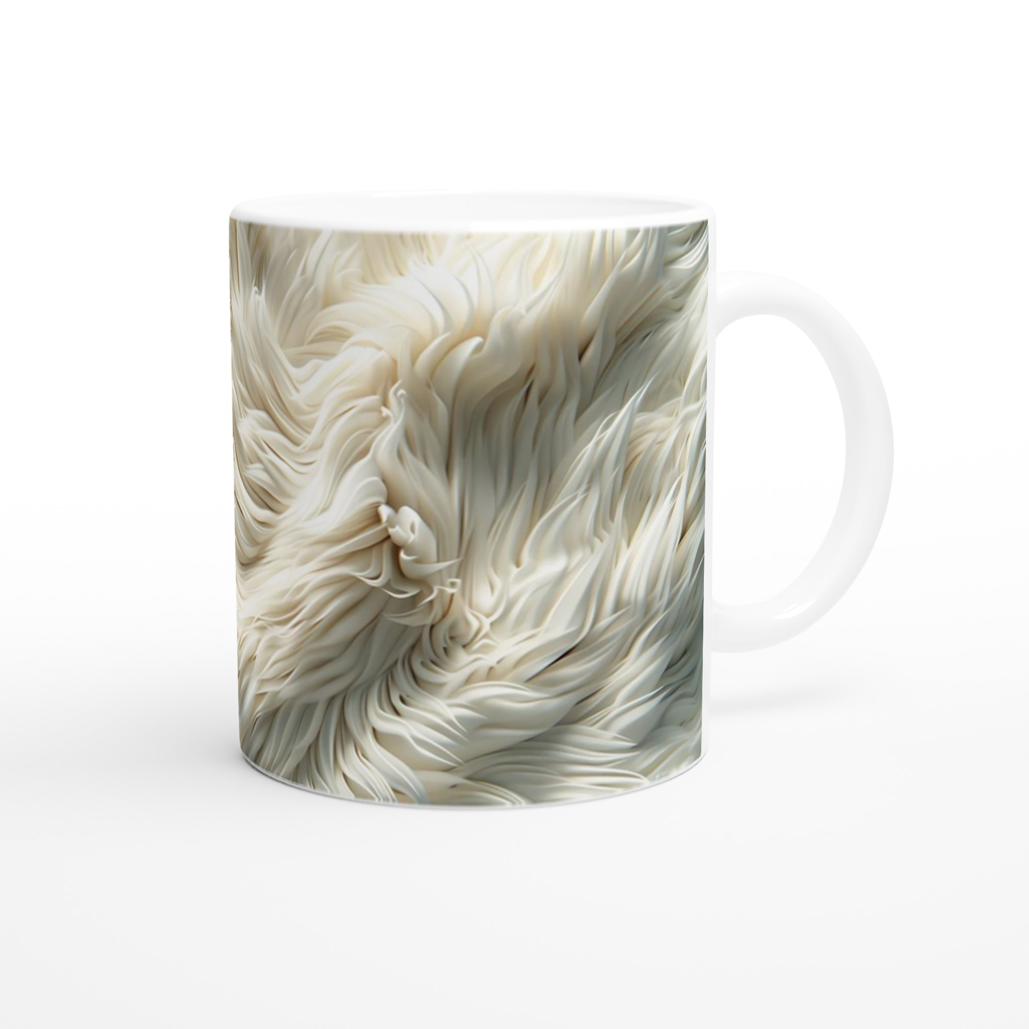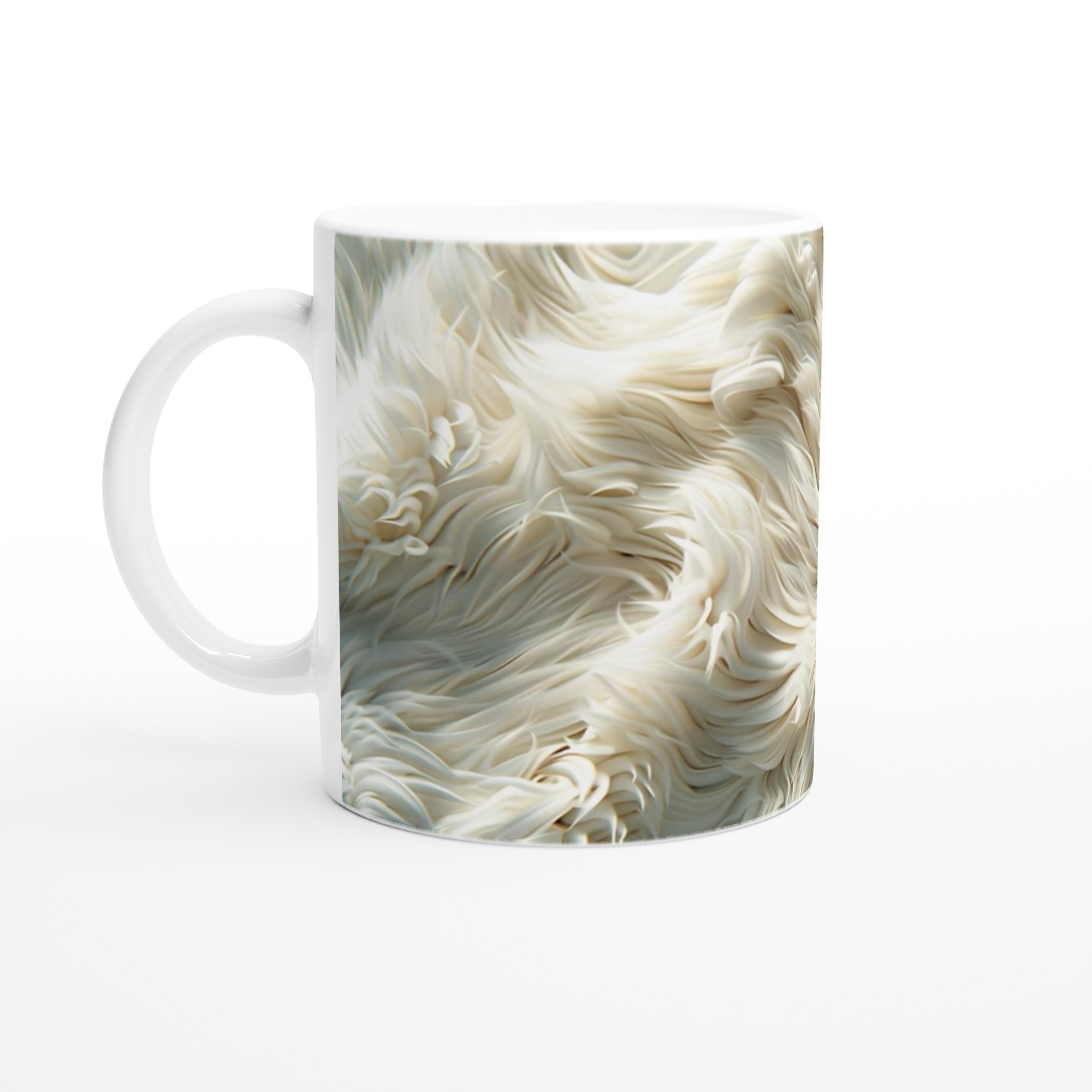Förvandla din fikastund till en liten lyxpaus med vår fluffiga keramiska mugg! Inspirerad av den mjuka texturen och de lugnande tonerna av krämig päls eller moln, är denna mugg designad för att väcka en känsla av lugn och komfort. Den här stilrena keramiska muggen blir snabbt en vardagsfavorit. Perfekt för morgonkaffet, kvällens varma choklad eller när du bara vill njuta av en kopp te. Den blanka vita ytan gör att trycken framhävs med klara och levande färger, som håller sig fina även efter många turer i mikron och diskmaskinen.