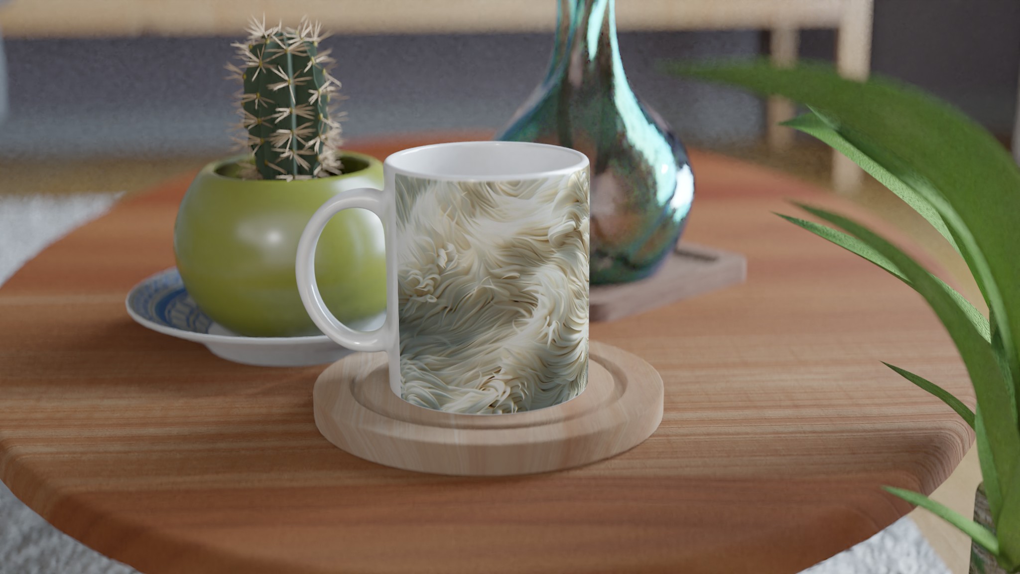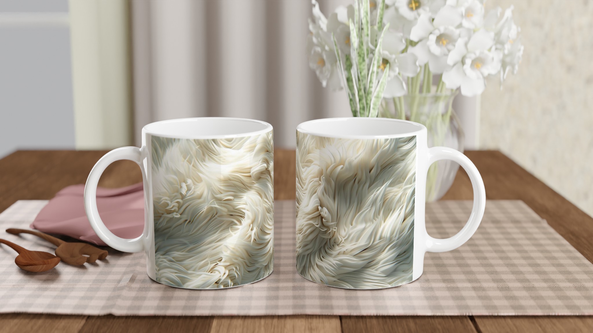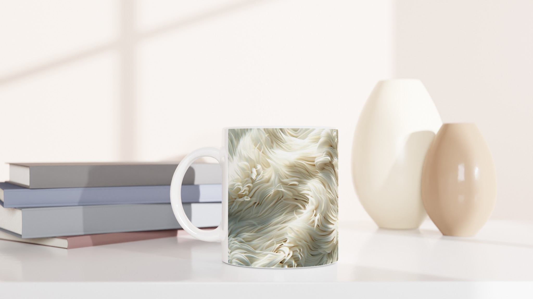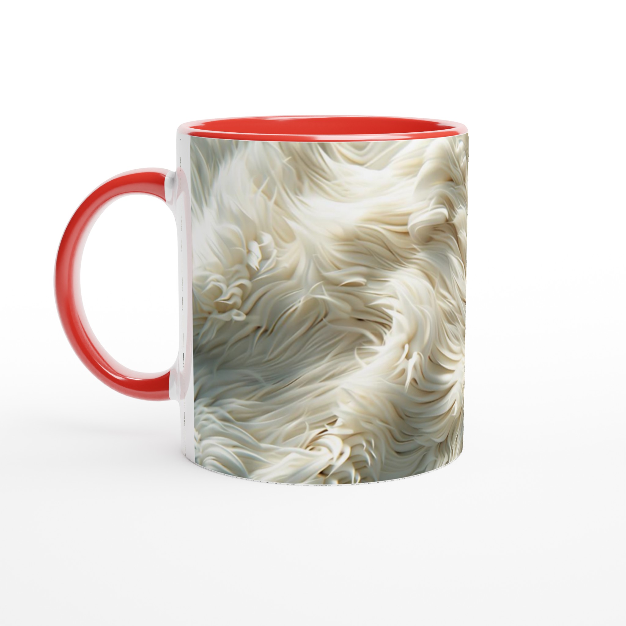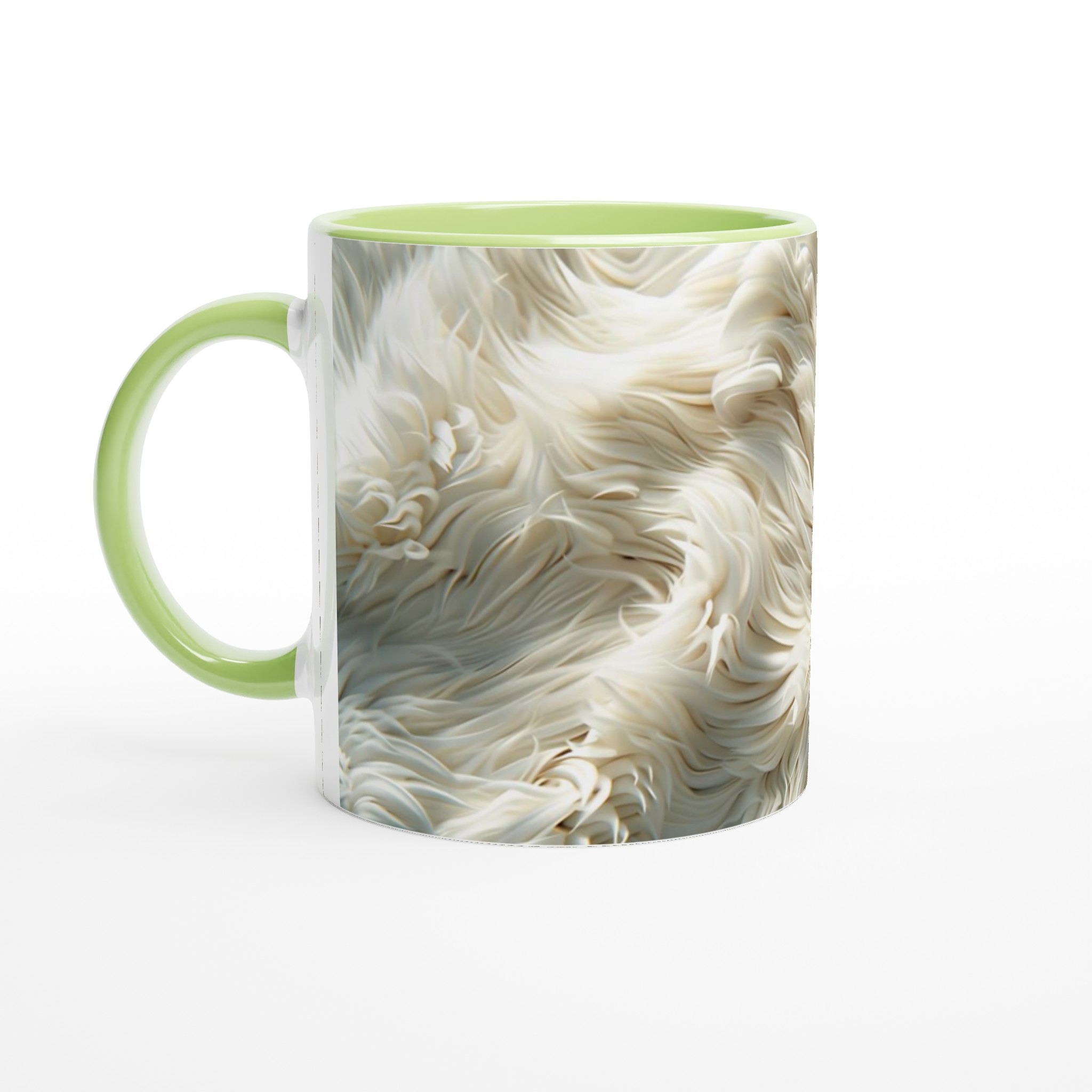 Förvandla din fikastund till en liten lyxpaus med vår fluffiga keramiska mugg! Inspirerad av den mjuka texturen och de lugnande tonerna av krämig päls eller moln, är denna mugg designad för att väcka en känsla av lugn och komfort. Den här stilrena keramiska muggen blir snabbt en vardagsfavorit. Perfekt för morgonkaffet, kvällens varma choklad eller när du bara vill njuta av en kopp te. Den blanka vita ytan gör att trycken framhävs med klara och levande färger, som håller sig fina även efter många turer i mikron och diskmaskinen.