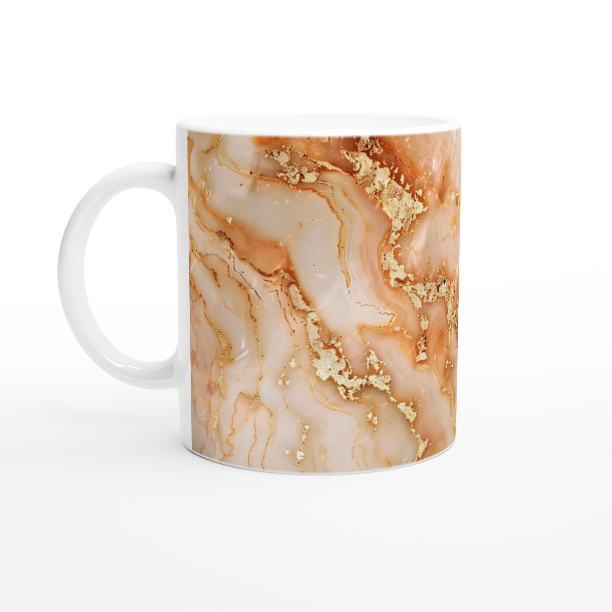 Vår ”Lyxig Guld Marmor Mugg” fångar essensen av elegans med sitt skimrande guld och mjuka marmorinslag. Varje klunk blir en upplevelse av lyx, perfekt för den som uppskattar en touch av glamour i vardagen. Låt ditt personliga meddelande eller design samspela med den sofistikerade bakgrunden och skapa en mugg som är lika unik som du.