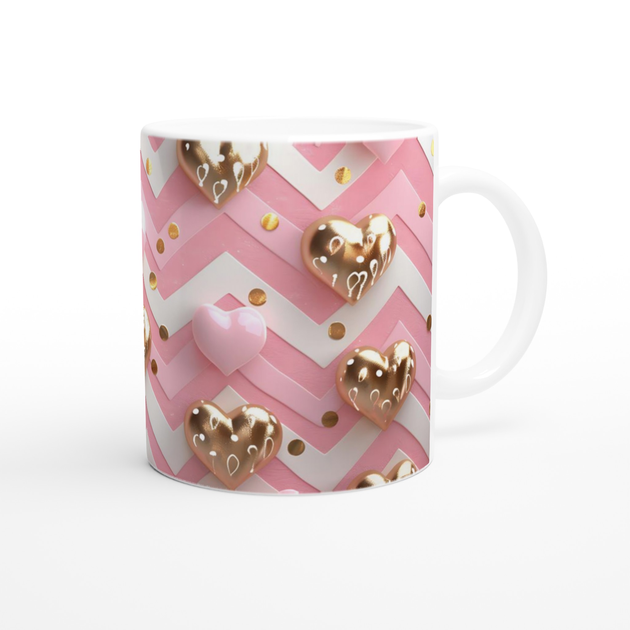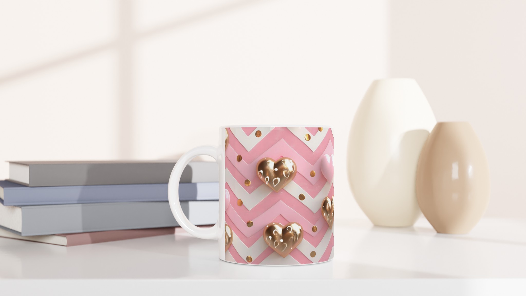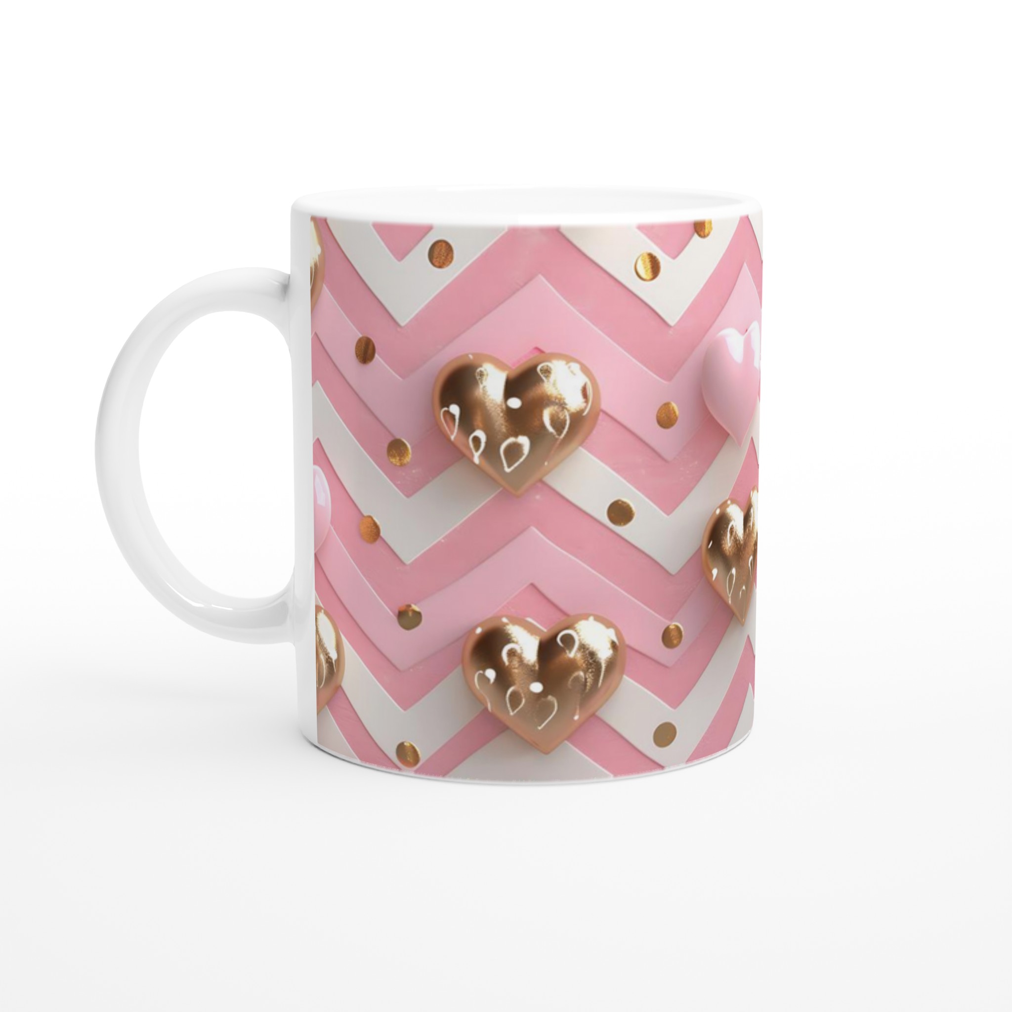 Förgyll varje dryckesstund med vår lyxiga keramikmugg, prydd med en charmig design av skimrande guldhjärtan, vita stänk och pastellrosa toner. Denna mugg är inte bara en fröjd för ögat utan också en perfekt följeslagare för alla dagens stunder – morgonkaffet, en värmande kopp te eller en härlig varm choklad. Den blanka ytan får den kärleksfulla designen att framträda klart och färgstarkt, vilket gör muggen till en riktig favorit i vardagen.
