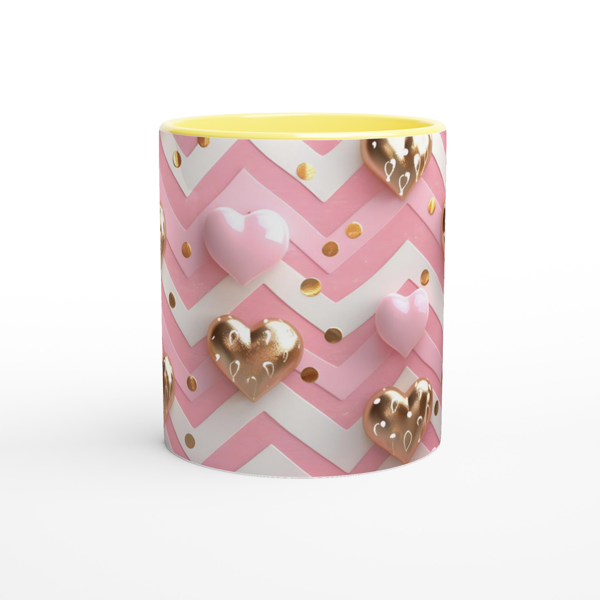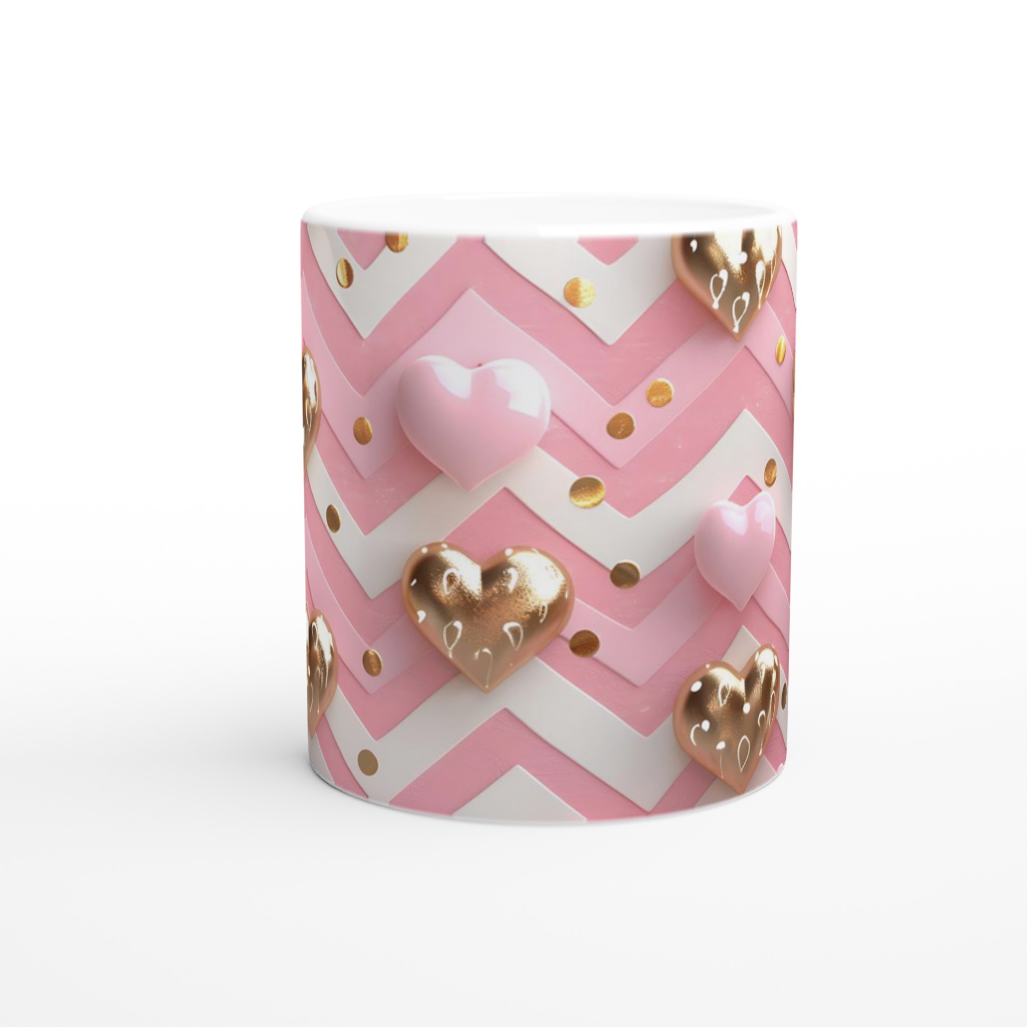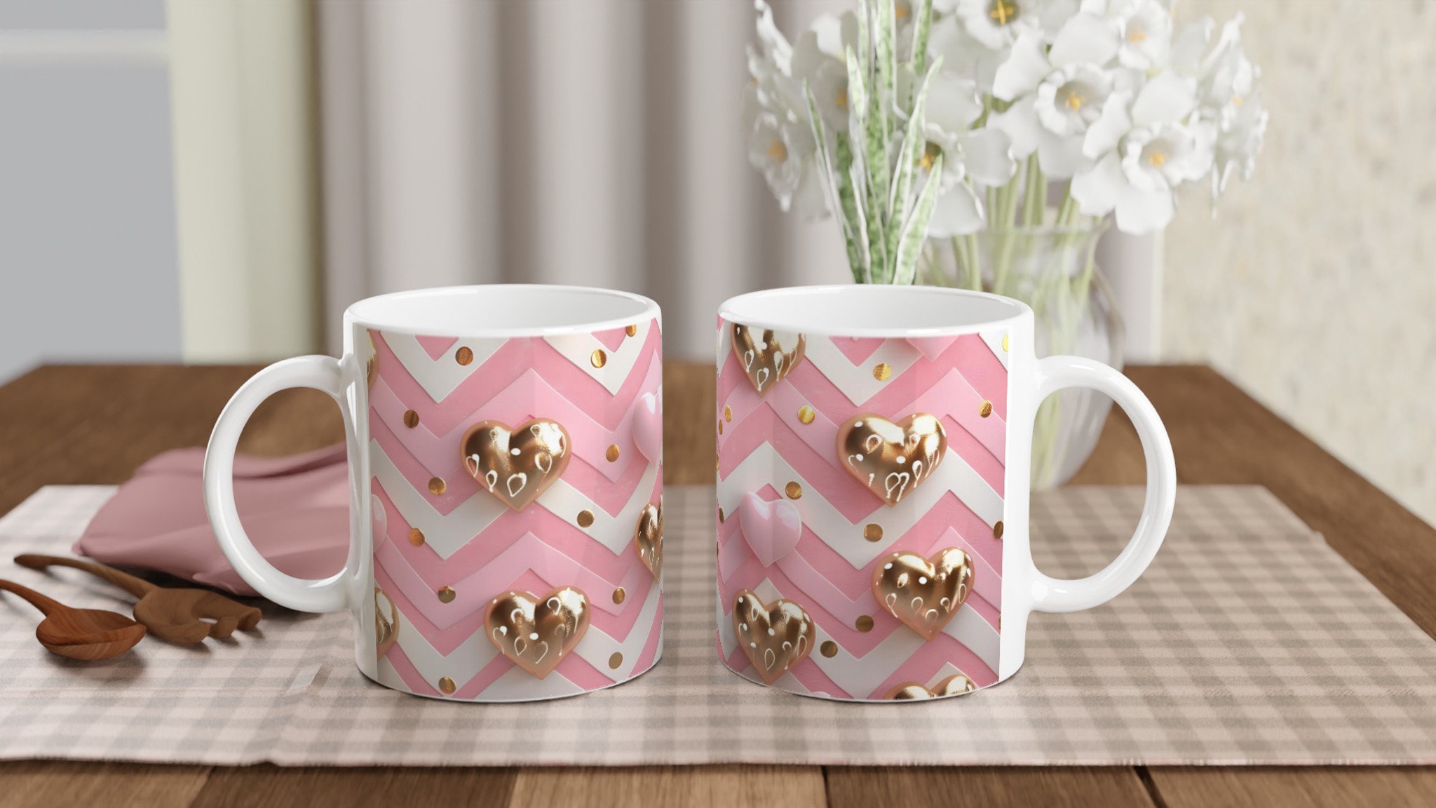 Förgyll varje dryckesstund med vår lyxiga keramikmugg, prydd med en charmig design av skimrande guldhjärtan, vita stänk och pastellrosa toner. Denna mugg är inte bara en fröjd för ögat utan också en perfekt följeslagare för alla dagens stunder – morgonkaffet, en värmande kopp te eller en härlig varm choklad. Den blanka ytan får den kärleksfulla designen att framträda klart och färgstarkt, vilket gör muggen till en riktig favorit i vardagen.