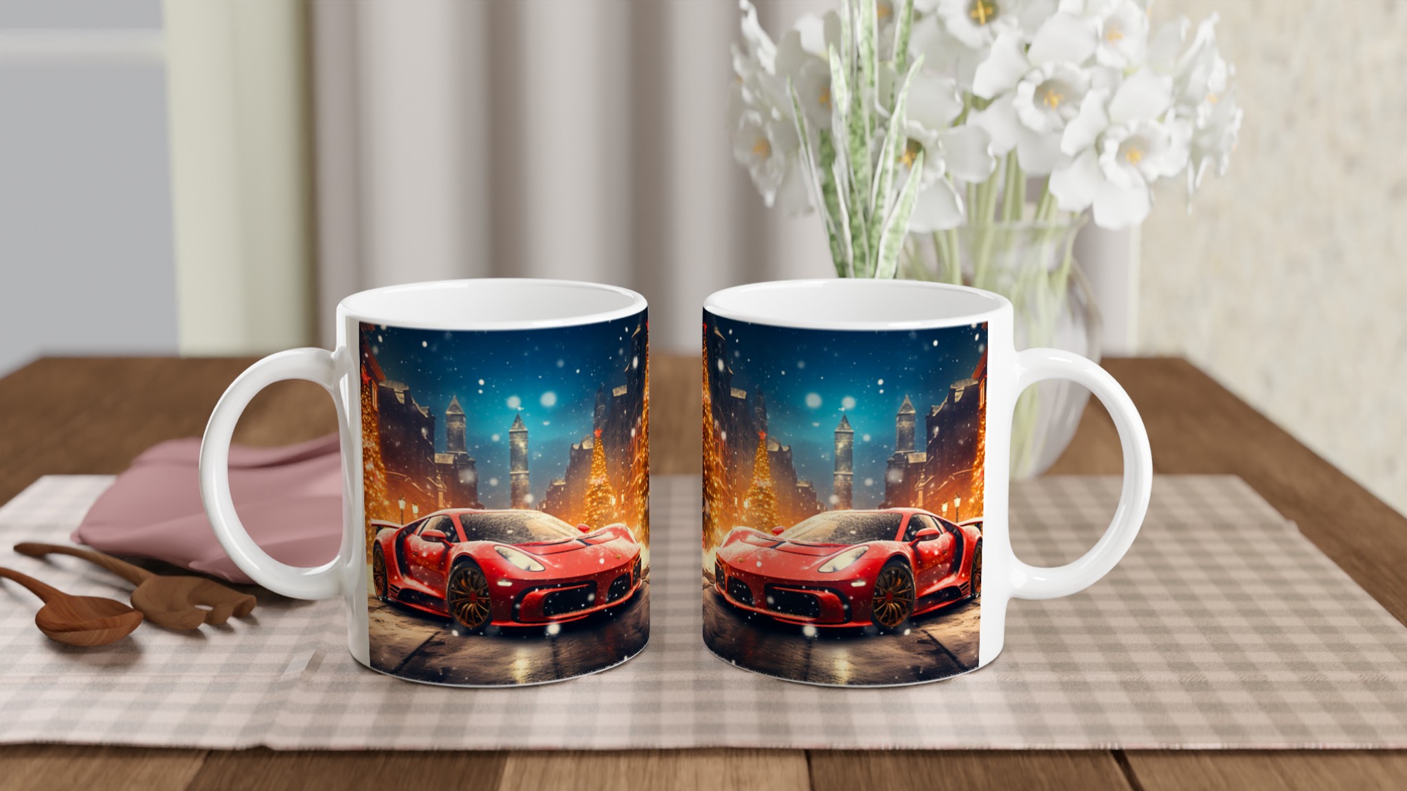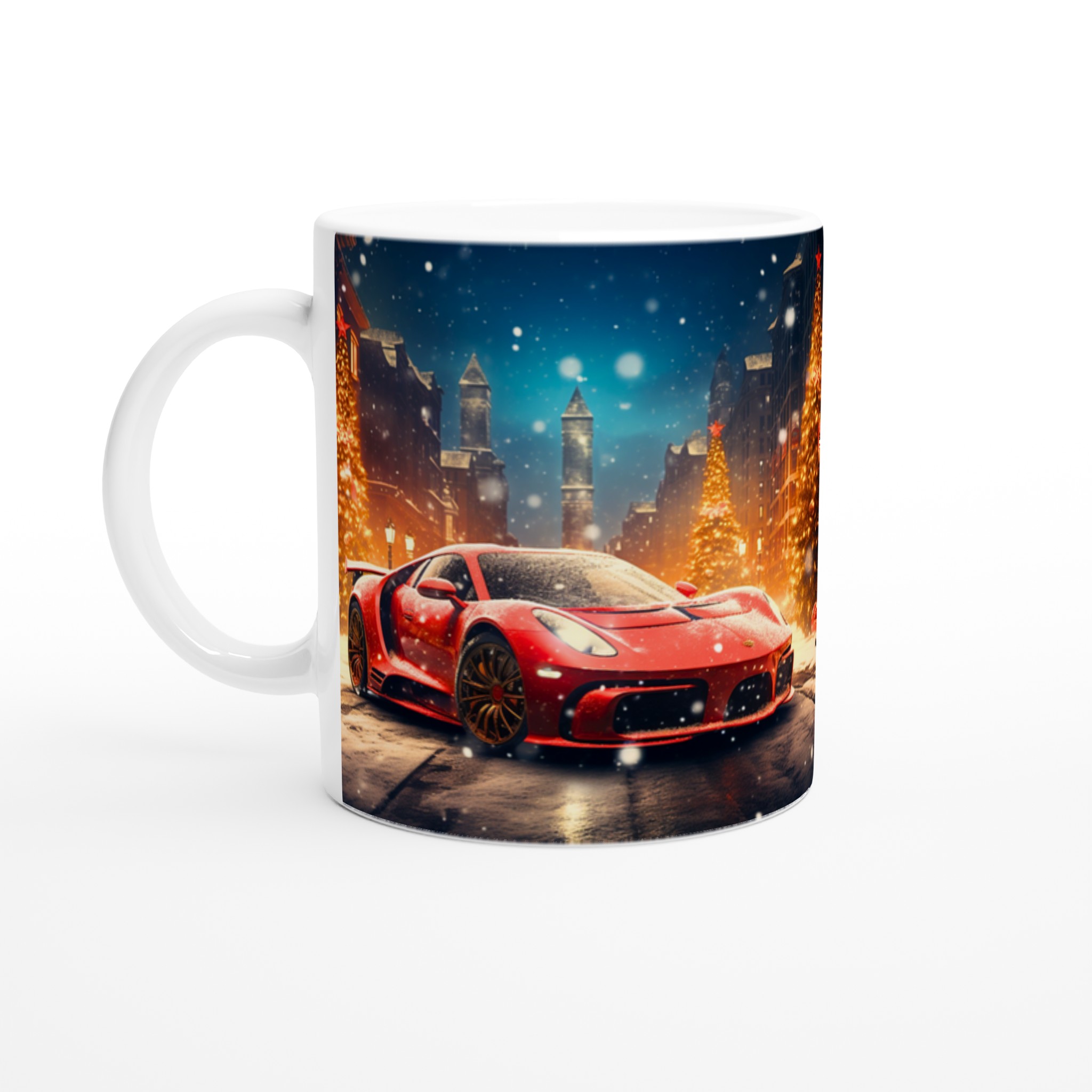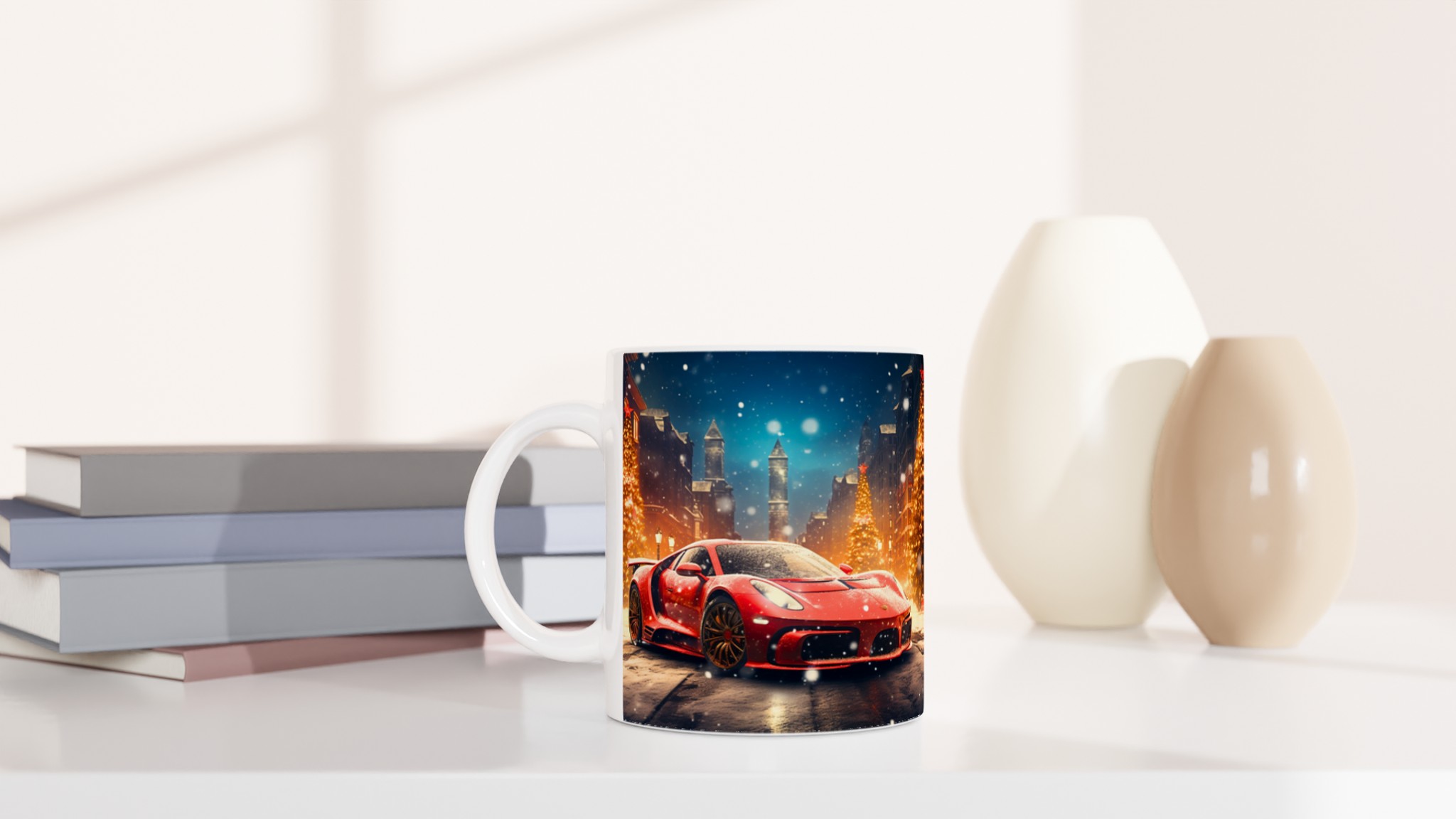 Fånga den magiska julkänslan varje dag med vår exklusiva keramiska mugg, prydd med en glänsande sportbil i ett drömskt, snöigt vinterlandskap. Den här stilrena muggen blir snabbt en vardagsfavorit, perfekt för morgonkaffet, kvällens varma choklad eller när du bara vill njuta av en kopp te. Den blanka vita ytan gör att trycken framhävs med klara och levande färger, som håller sig fina även efter många turer i mikron och diskmaskinen.