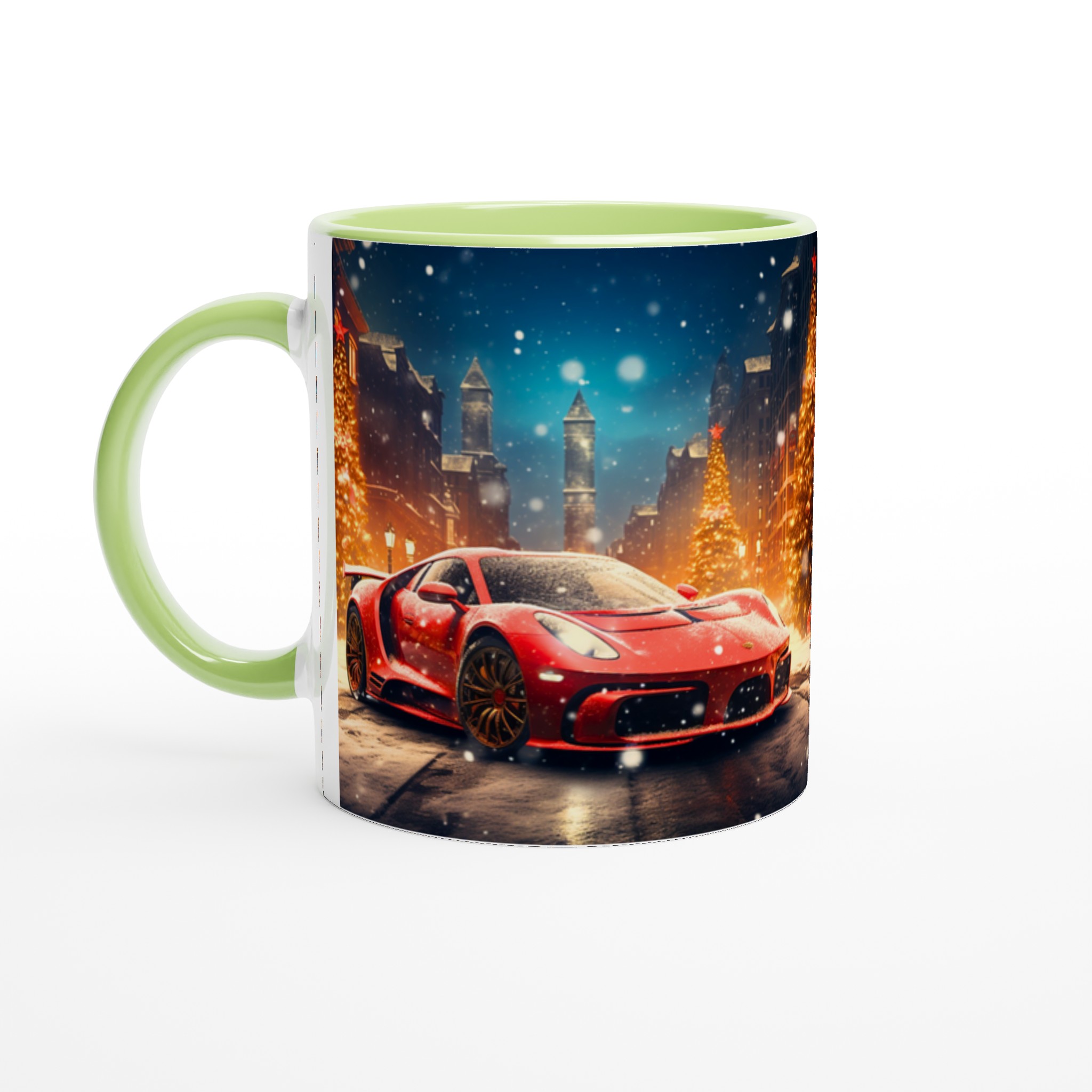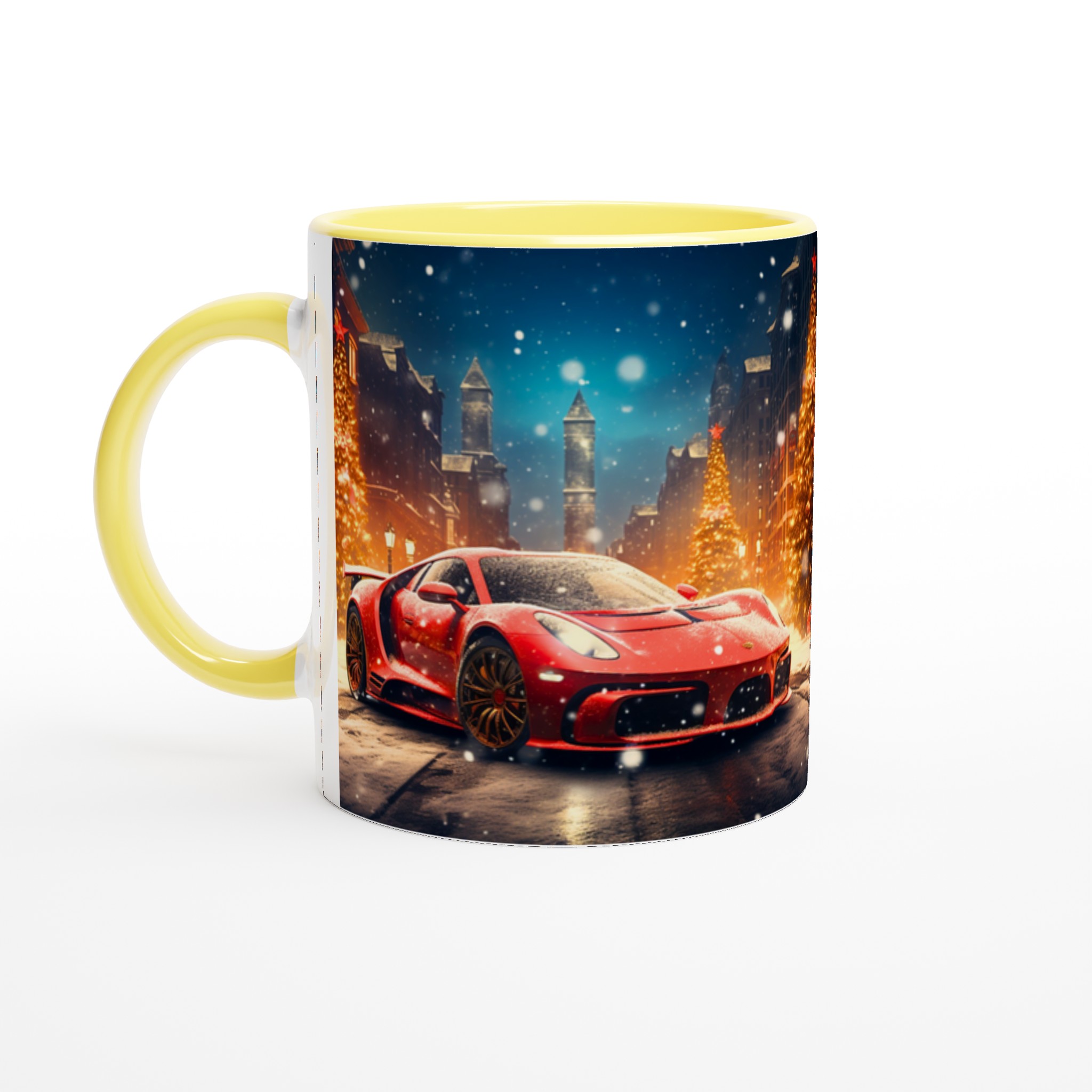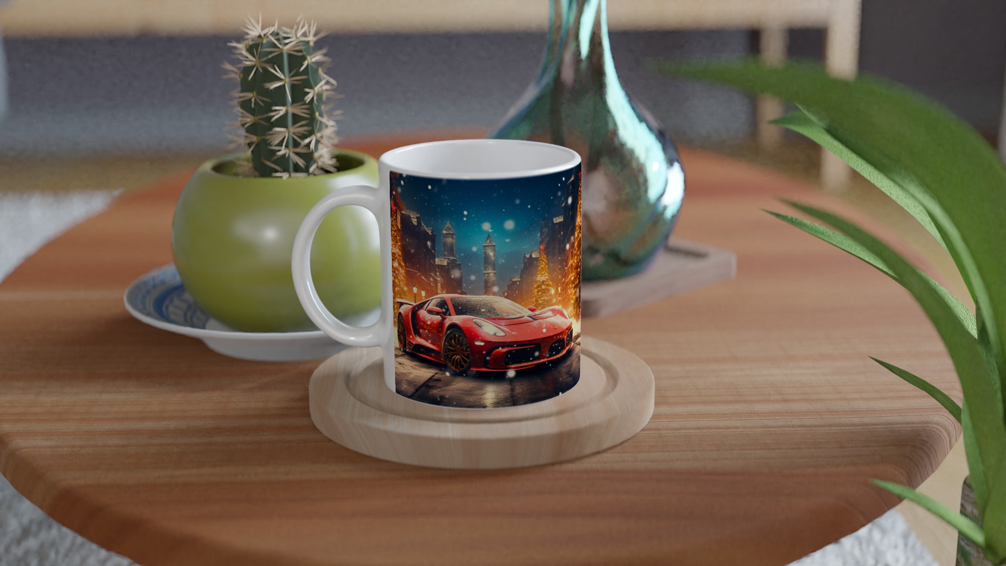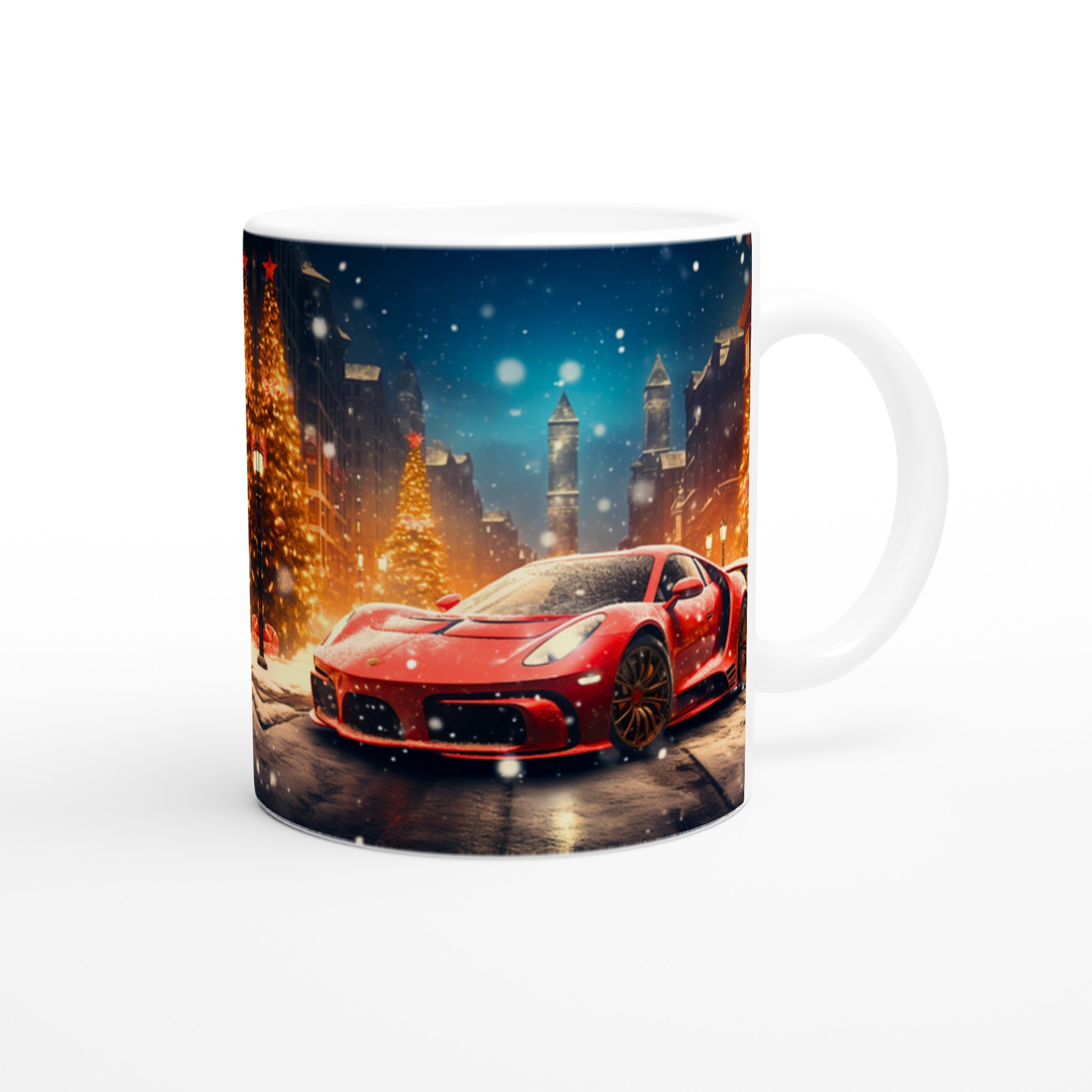 Fånga den magiska julkänslan varje dag med vår exklusiva keramiska mugg, prydd med en glänsande sportbil i ett drömskt, snöigt vinterlandskap. Den här stilrena muggen blir snabbt en vardagsfavorit, perfekt för morgonkaffet, kvällens varma choklad eller när du bara vill njuta av en kopp te. Den blanka vita ytan gör att trycken framhävs med klara och levande färger, som håller sig fina även efter många turer i mikron och diskmaskinen.