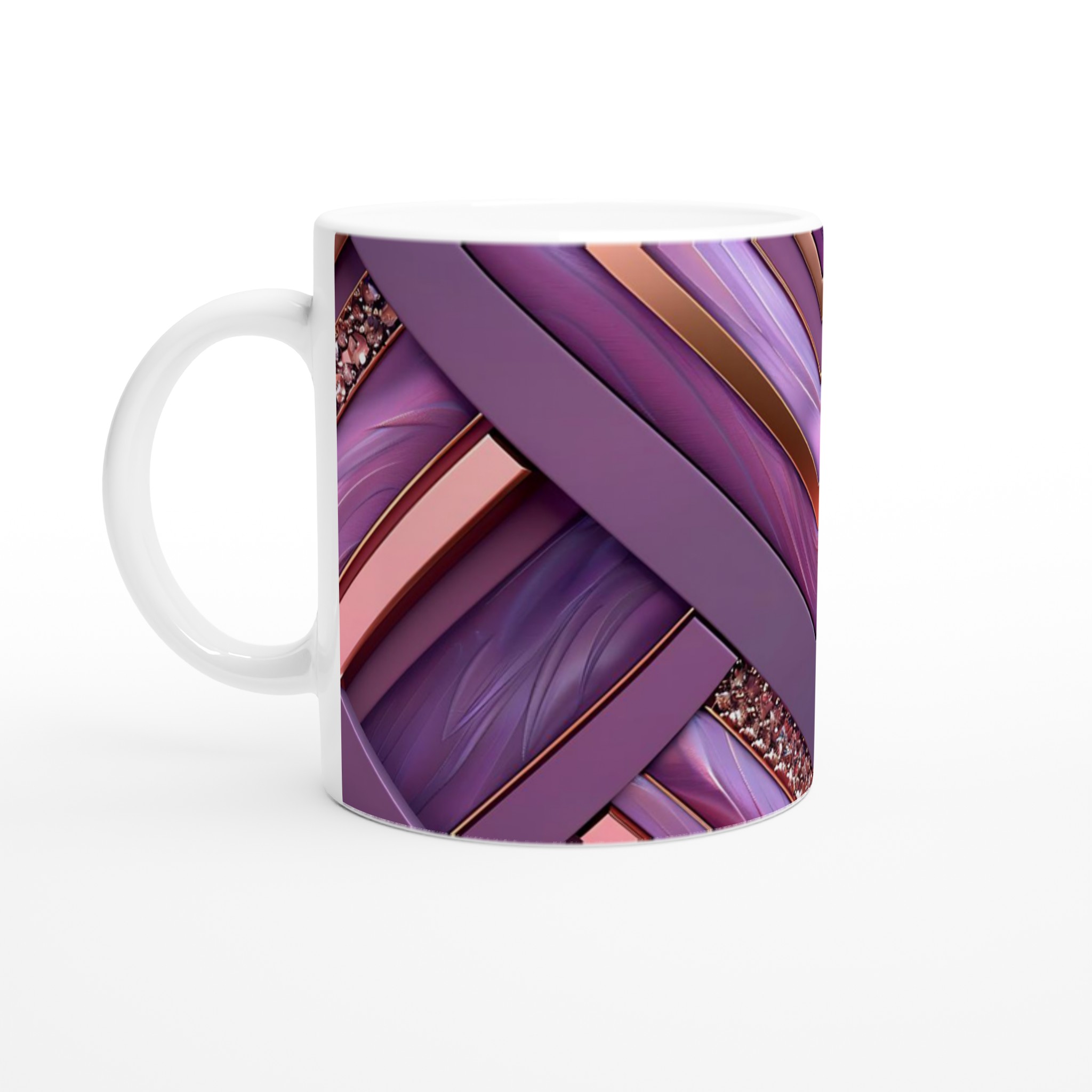 Inspirerad av den sofistikerade elegansen hos lavendellila toner och skimrande roséguld, erbjuder denna mugg en touch av vardagslyx till din dryckesupplevelse. Den blanka vita ytan ger ett skarpt och levande tryck som verkligen sticker ut, oavsett om det är en personlig design, ett roligt citat eller en present till någon du tycker om.