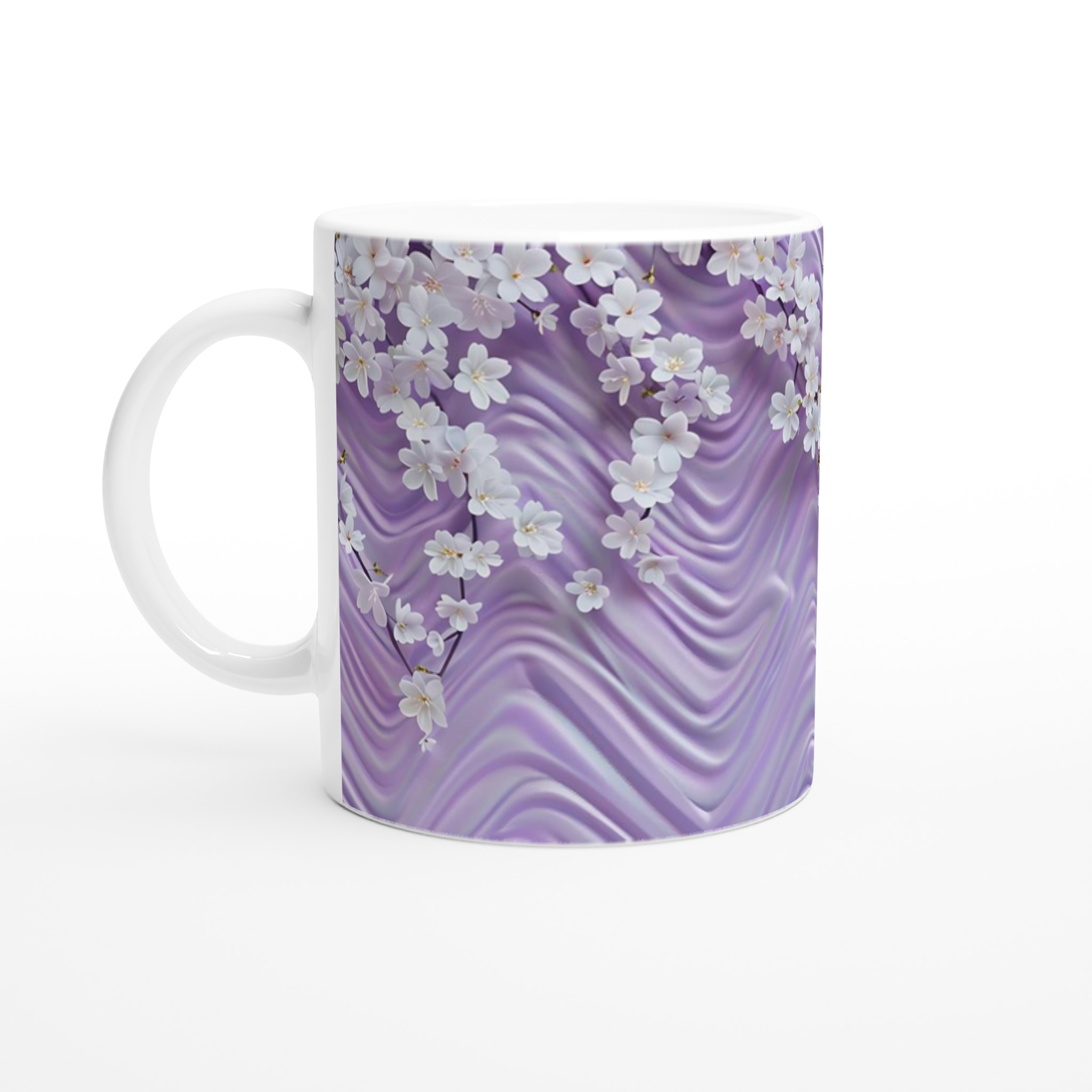 Lyxig Lavendelmugg med Vita Blommor – 11oz Keramisk Kaffekopp i ditt Val av Färg