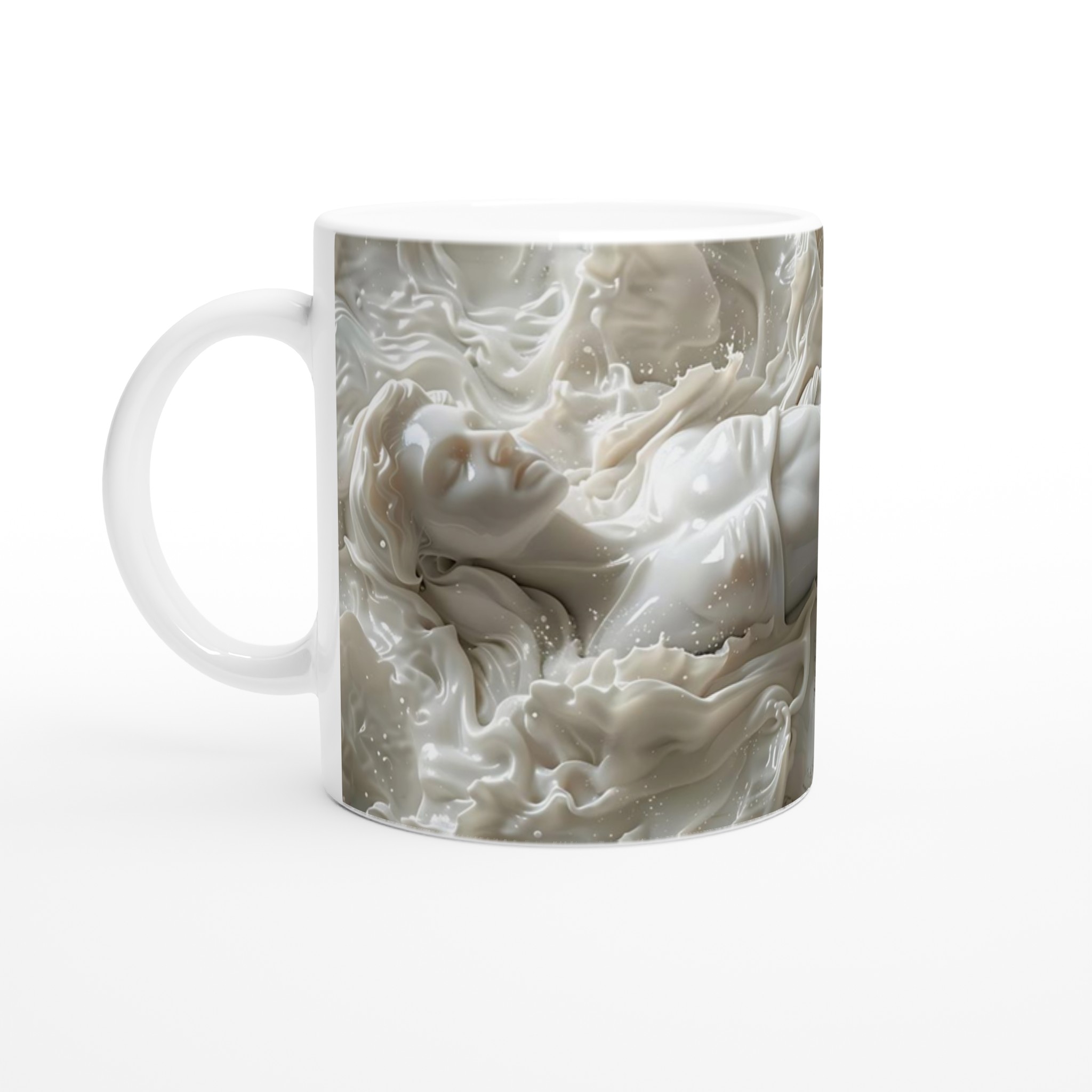 Inspirerad av den drömlika skönheten hos mjölkiga strömmar och tidlös elegans, förvandlar denna mugg din dagliga dryckesritual till en konstnärlig upplevelse. Den blanka vita ytan ger ett skarpt och levande tryck som verkligen sticker ut, oavsett om det är en personlig design, ett roligt citat eller en present till någon du tycker om.