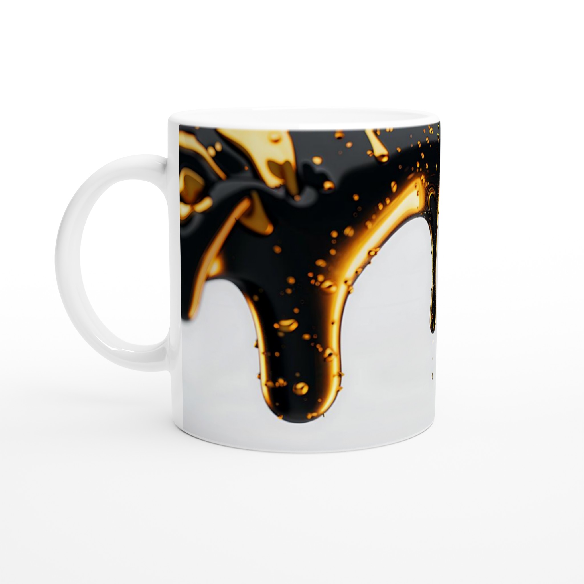 Inspirerad av den rika, kontrasterande skönheten hos smält guld som möter elegant svart, erbjuder denna mugg en touch av sofistikerad lyx till din vardag. Den blanka vita ytan ger ett skarpt och levande tryck som verkligen sticker ut, oavsett om det är en personlig design, ett roligt citat eller en present till någon du tycker om.