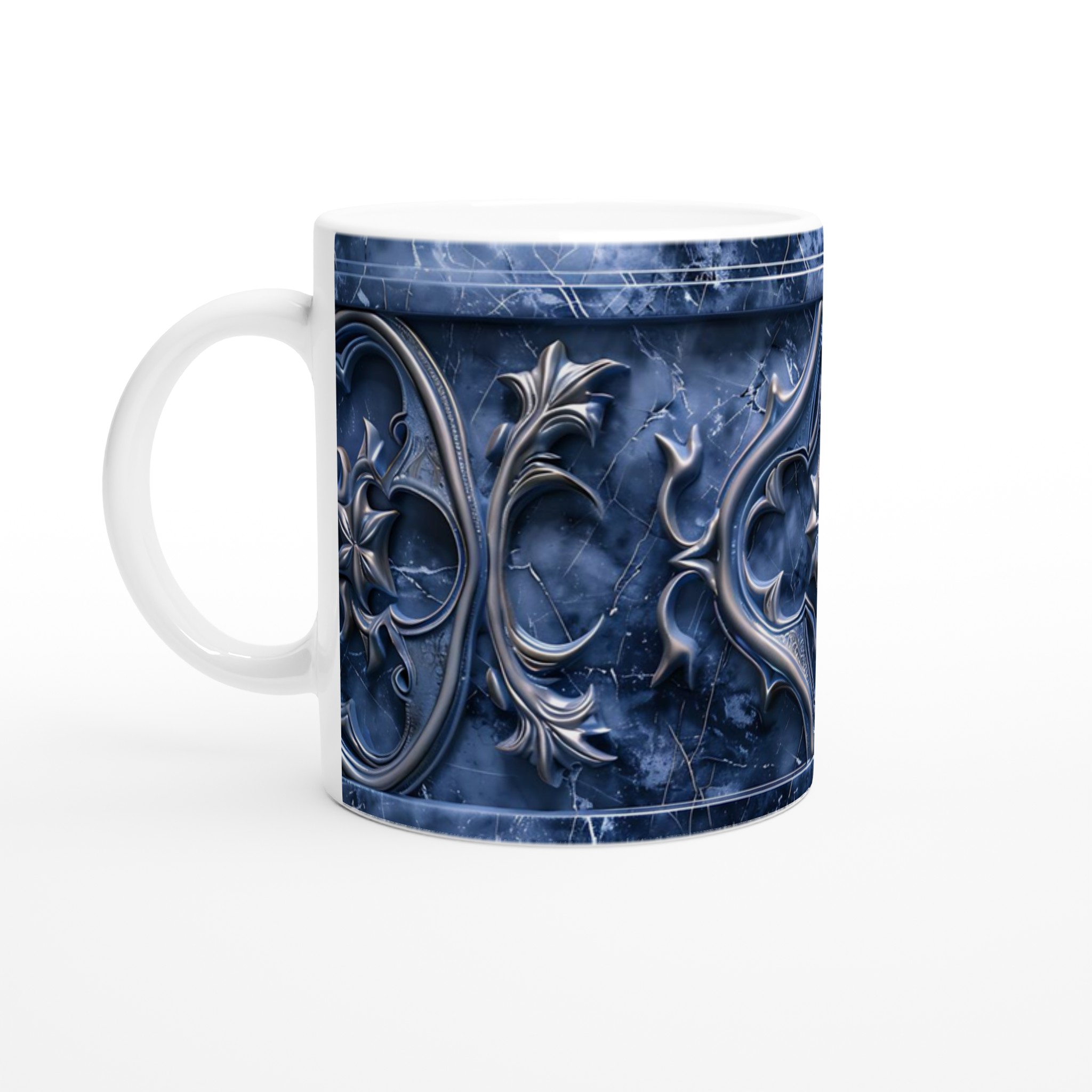 Föreställ dig den djupa, rika skönheten hos marmor kombinerad med eleganta guldornament – en design som utstrålar tidlös lyx. Vår keramikmugg förvandlar din dryckesupplevelse till en stund av ren indulgence. Den mörkblå marmorstrukturen med sina subtila vita ådringar, accentuerad av intrikata gulddetaljer, ger en sofistikerad känsla till varje sip. Välj din favoritfärg för att verkligen anpassa din mugg: från klassisk Ceramic White till livfulla nyanser som Ceramic Yellow, Pink, Green, Red, Black eller Blue.