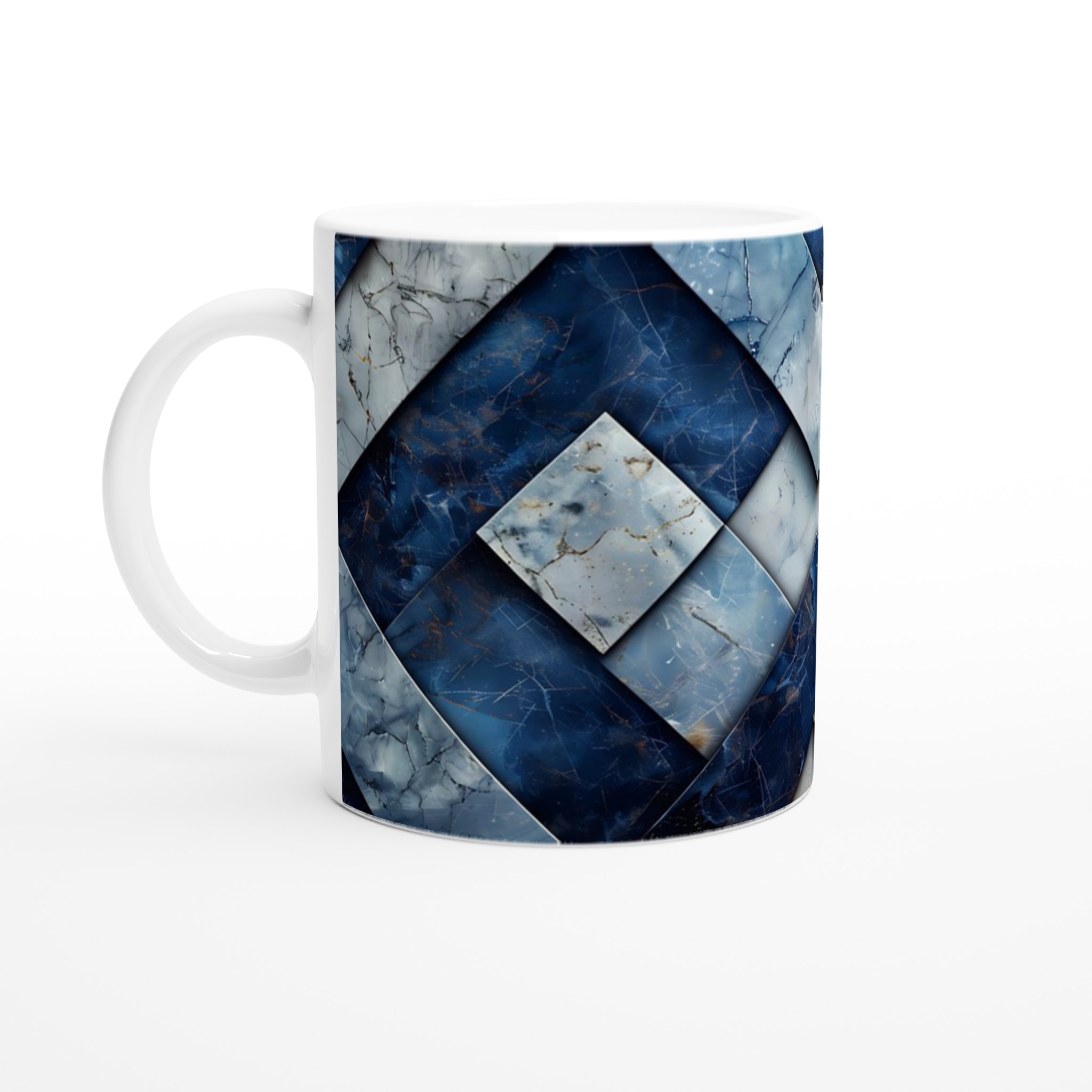 Inspirerad av djupblå marmor och guldskimrande vener, denna unika mugg fångar en känsla av lyx och modern elegans. Den blanka vita ytan ger ett skarpt och levande tryck som verkligen sticker ut, oavsett om det är en personlig design, ett roligt citat eller en present till någon du tycker om.