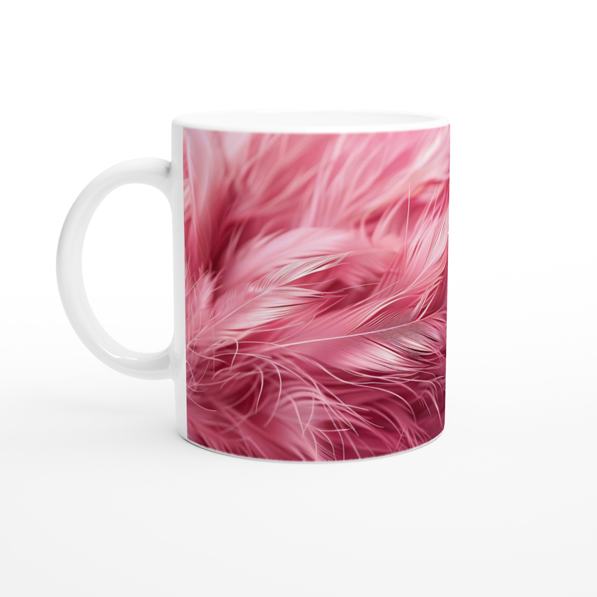Den blanka vita ytan ger ett skarpt och levande tryck som verkligen sticker ut, oavsett om det är en personlig design, ett roligt citat eller en present till någon du tycker om. Inspirerad av bilden av mjuka rosa fjädrar, kommer denna mugg att ge en känsla av lyx och lugn till din dryckesrutin. Varför inte matcha den drömska rosa tonen med en av våra unika keramikfärger?