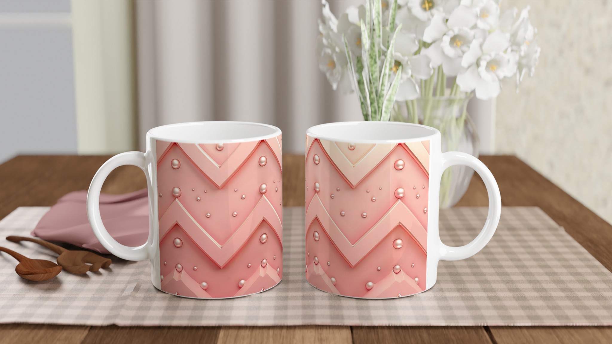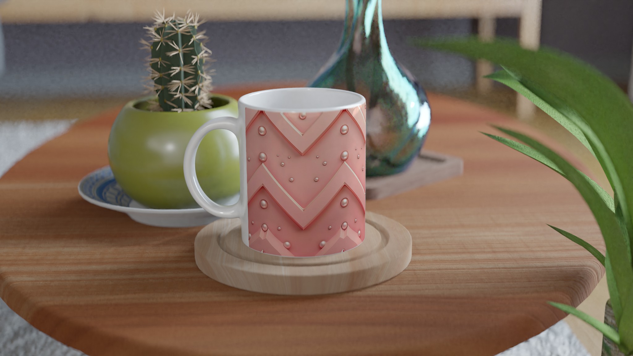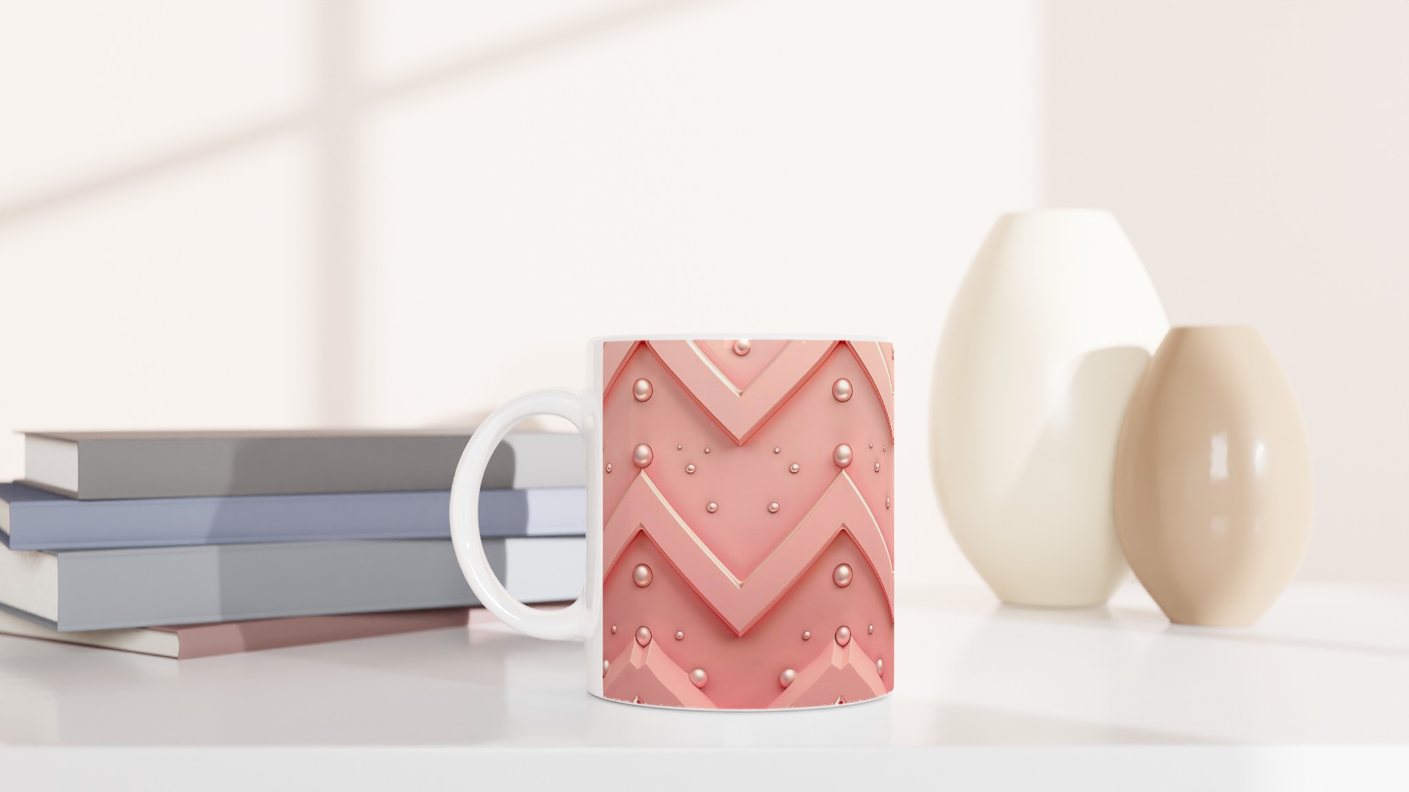 Förvandla varje fikastund till en liten lyxig paus med denna förtrollande keramikmugg. Den lekfulla vågdesignen, inspirerad av bildens eleganta rosa nyanser och pärlemorskimrande detaljer, ger en sofistikerad touch till din dryckesupplevelse. Oavsett om det är morgonkaffet, en lugnande kopp te eller en festlig varm choklad, kommer denna mugg att höja stämningen.