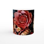 Förhöj din dagliga fikastund med denna utsökta keramikmugg, prydd med ett dramatiskt och elegant blommönster i svart, guld och djuprött. Inspirerad av en känsla av lyx och mystik, är denna mugg en perfekt blandning av konst och funktion, designad för att göra varje klunk till en upplevelse. Oavsett om det är morgonkaffet, en lugnande kopp te eller en rik varm choklad, kommer denna mugg att tillföra en touch av glamour till din rutin.