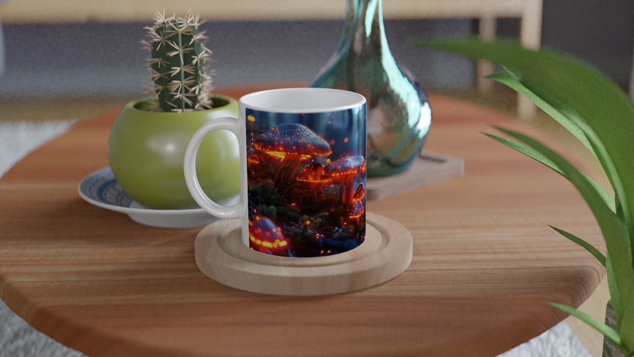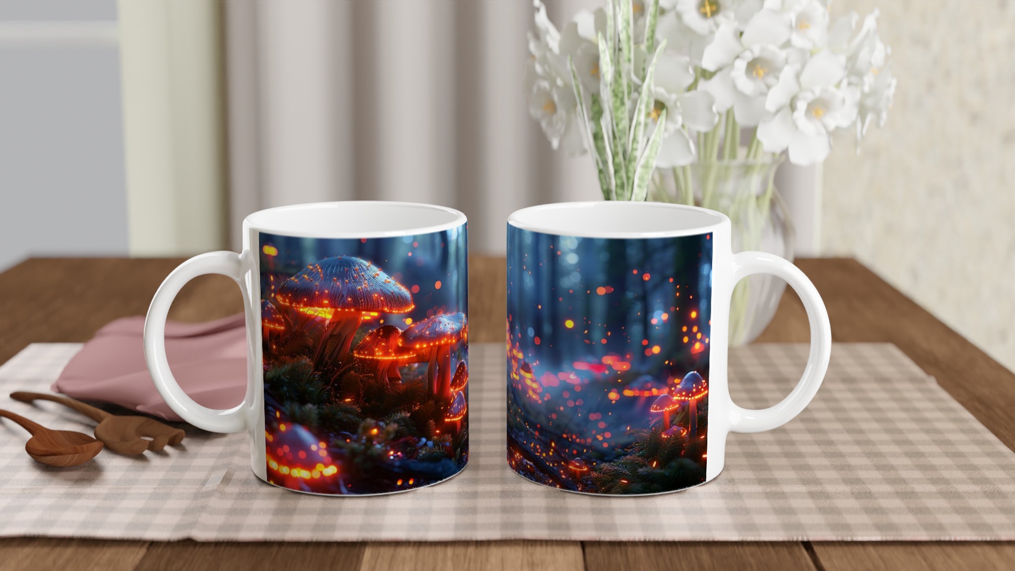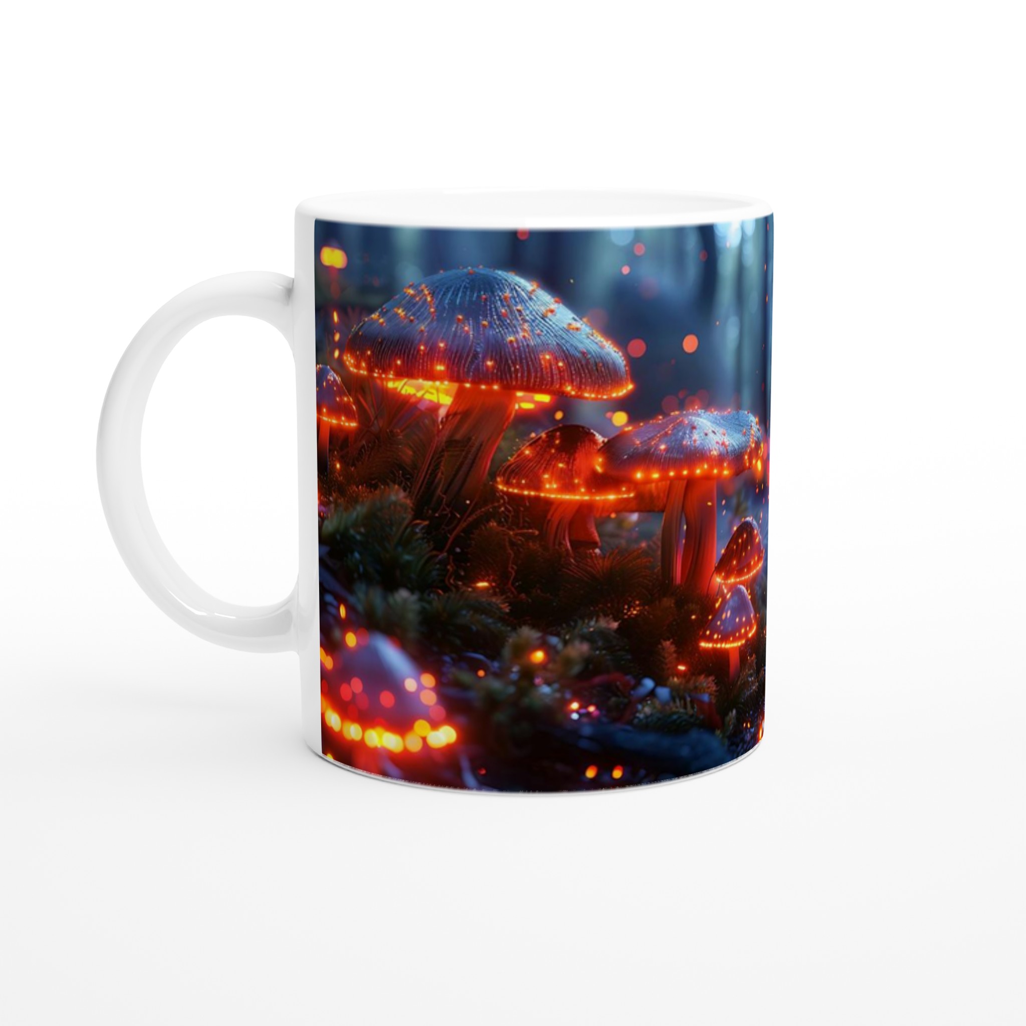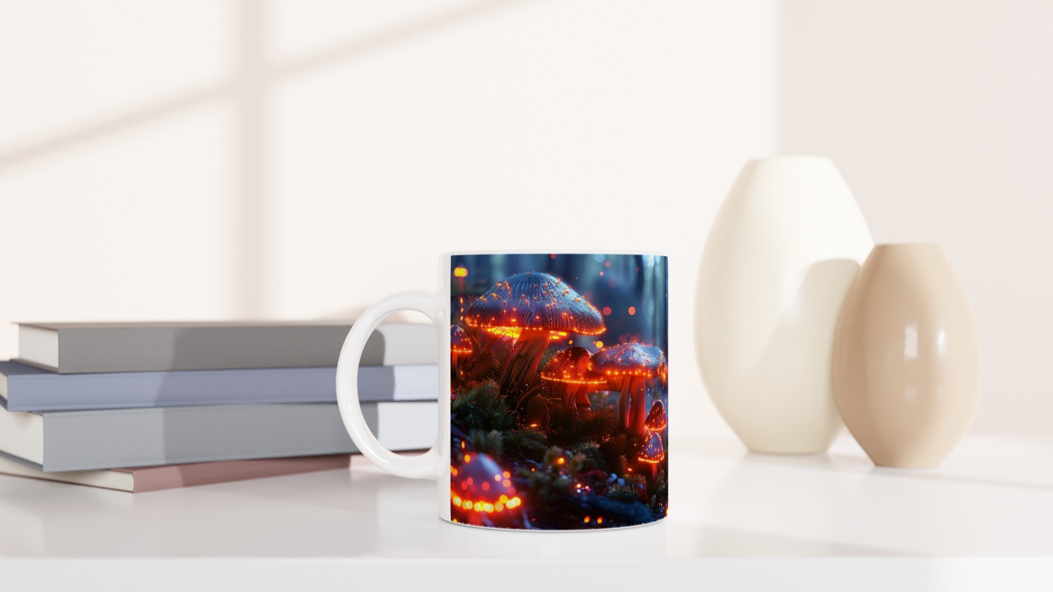 Väck dina sinnen med vår förtrollande keramiska mugg, som fångar den mystiska skönheten i en glödande svampskog. Varje klunk blir en resa till en magisk värld där djupt blåa och lila toner möter varma, lysande orangea nyanser – en perfekt inspiration för att starta dagen med.
