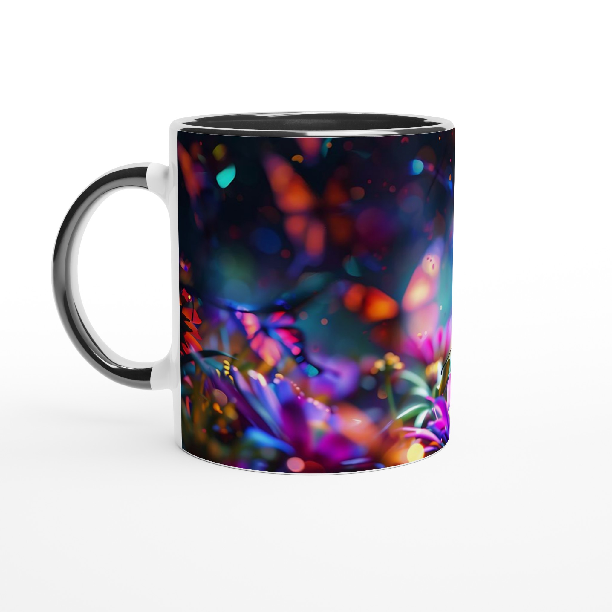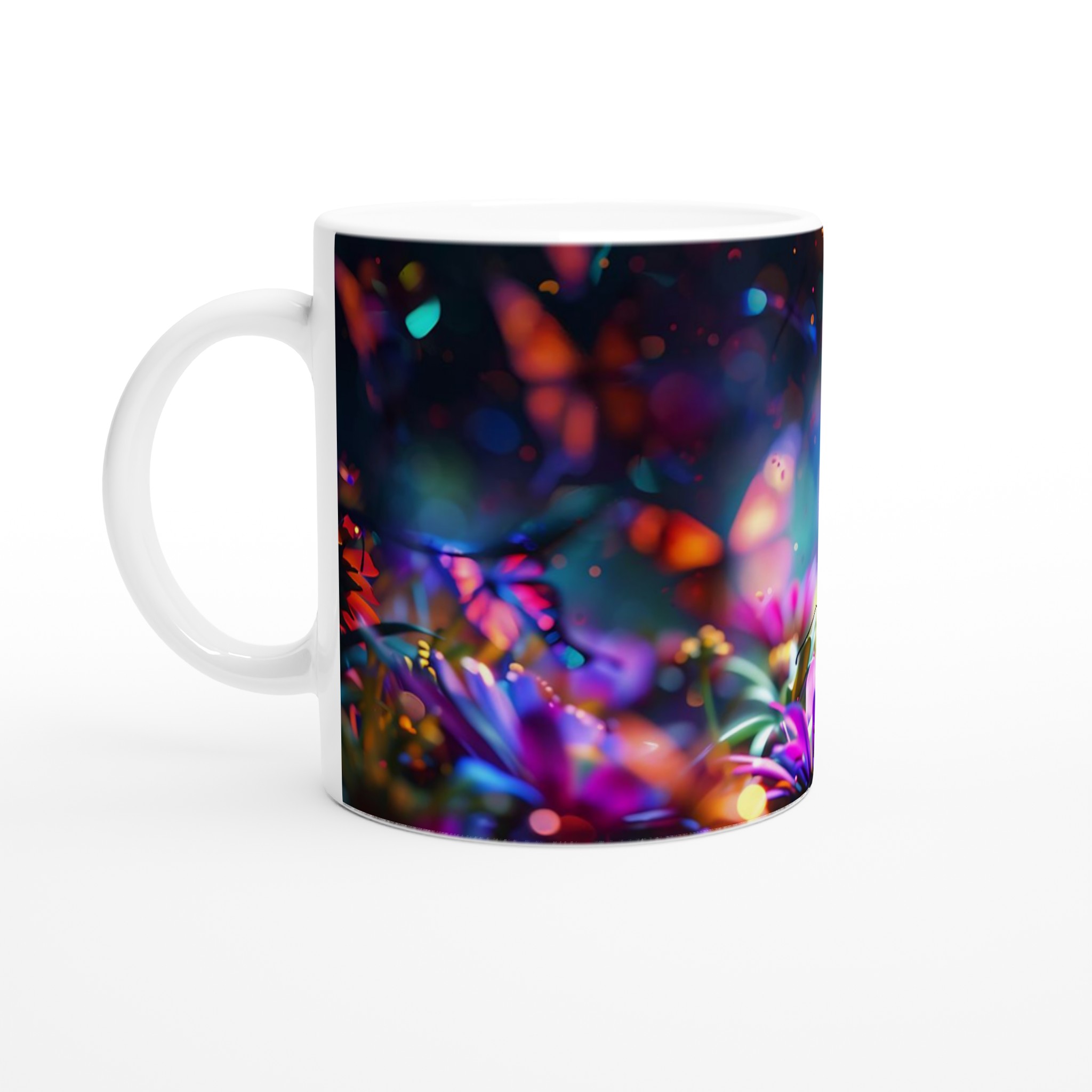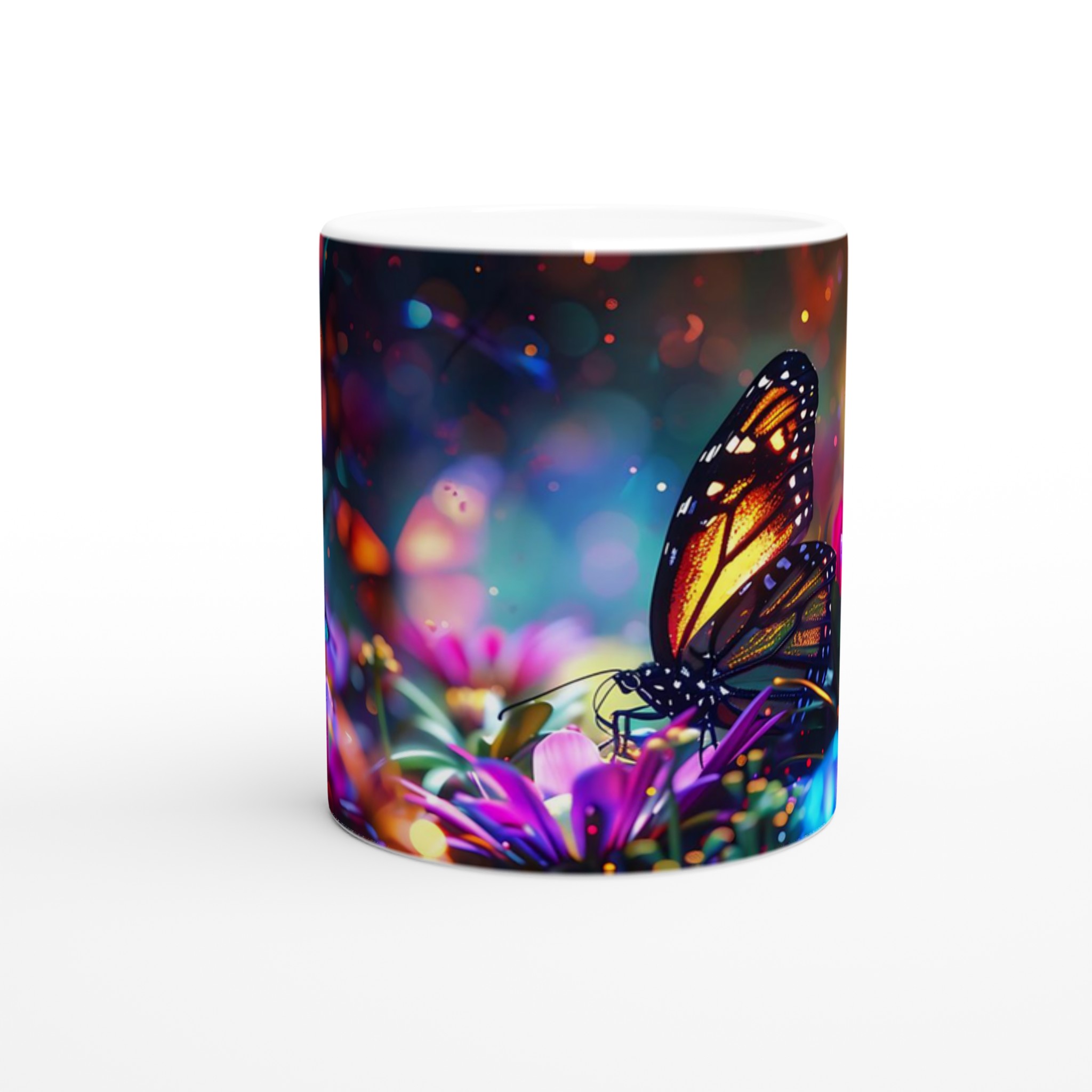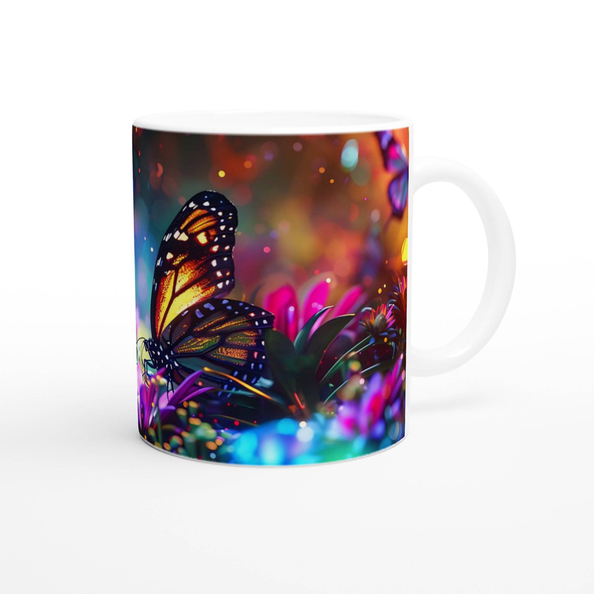 Fånga magin i en förtrollad trädgård varje gång du tar en klunk med denna underbara keramiska mugg. Dess design, inspirerad av skimrande fjärilar och blommor i en kalejdoskopisk färgpalett, förvandlar din dryckesstund till en drömlik upplevelse. Oavsett om det är morgonkaffet, kvällens varma choklad eller en lugn kopp te, blir denna mugg snabbt din favorit.