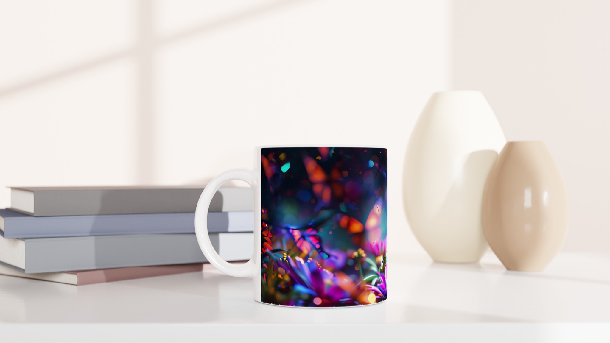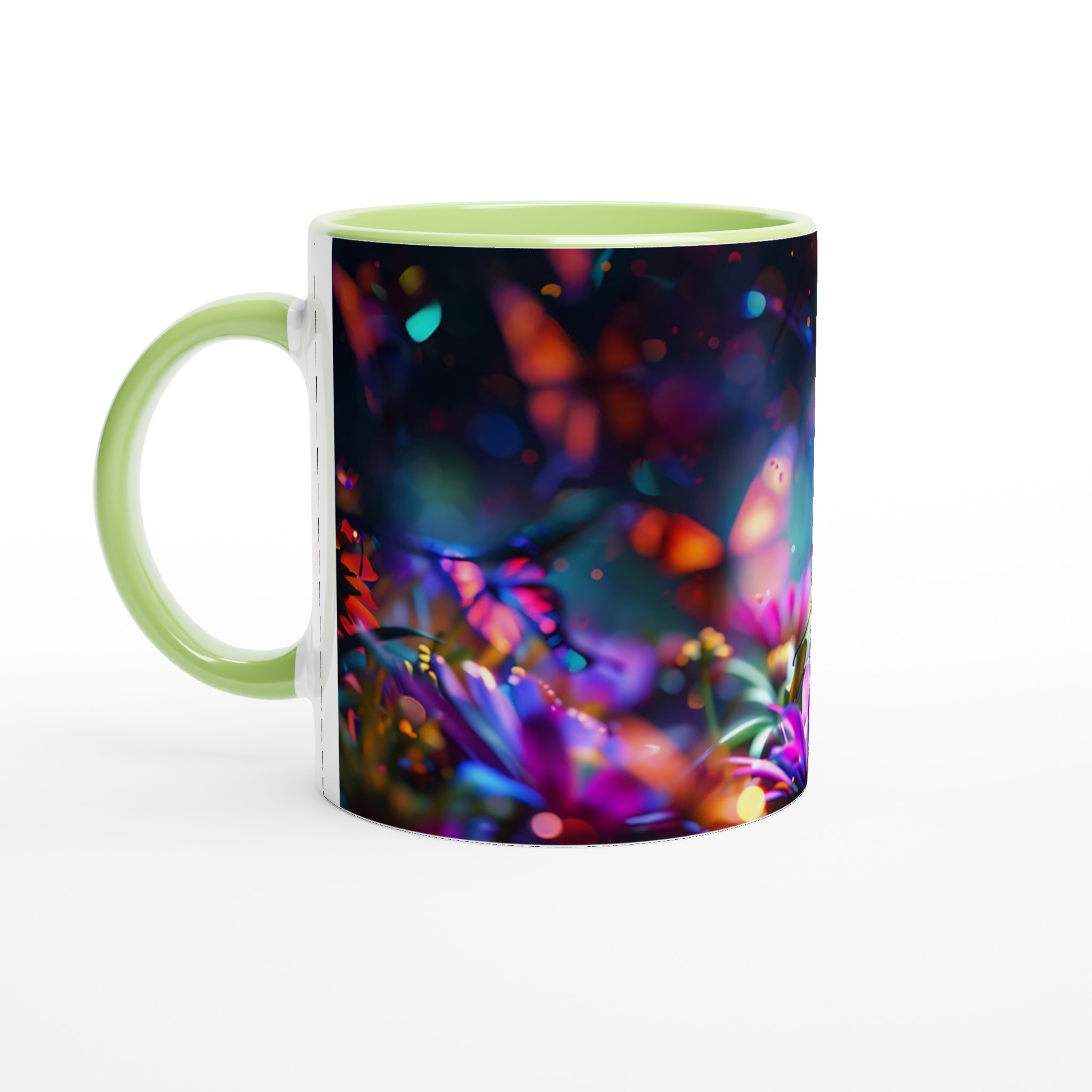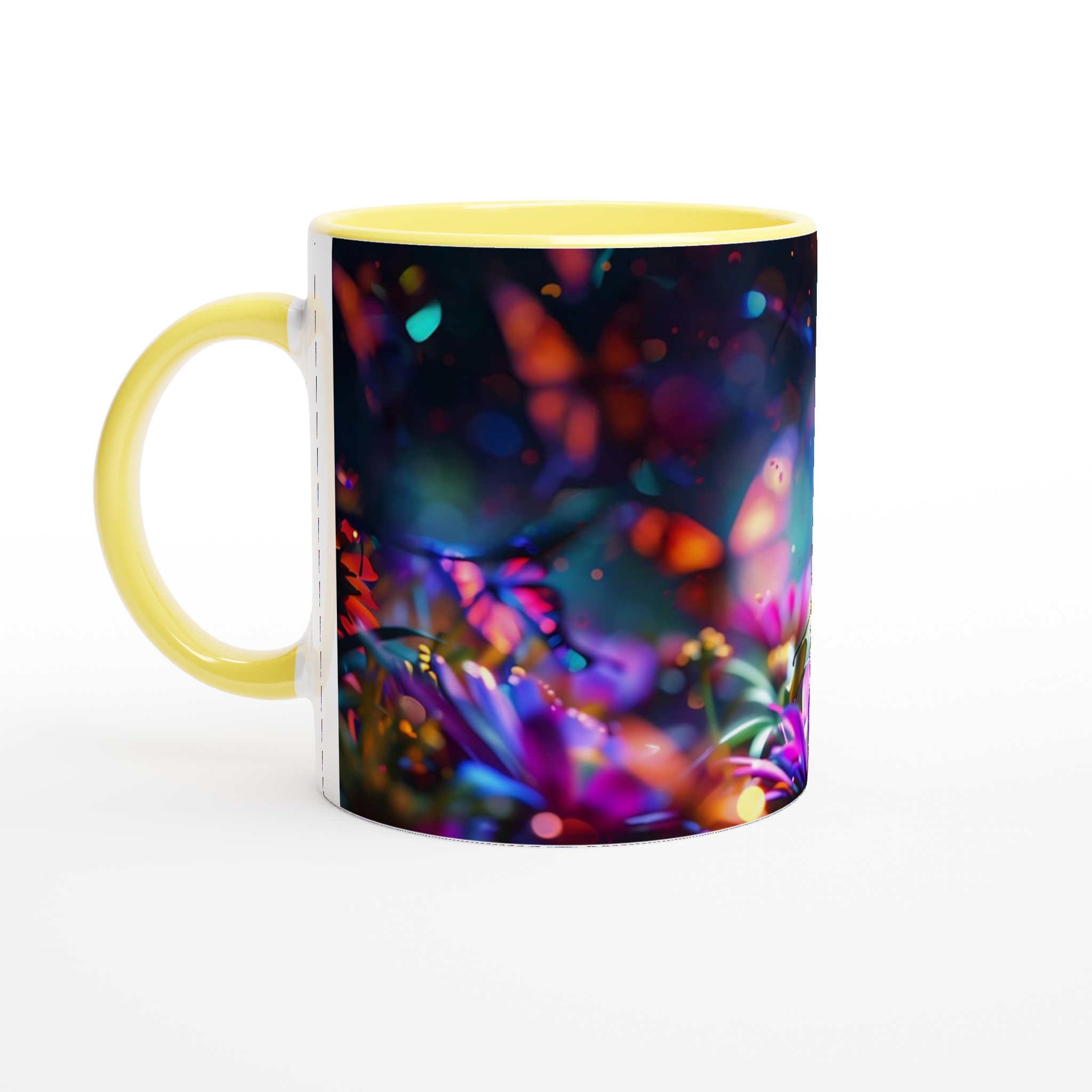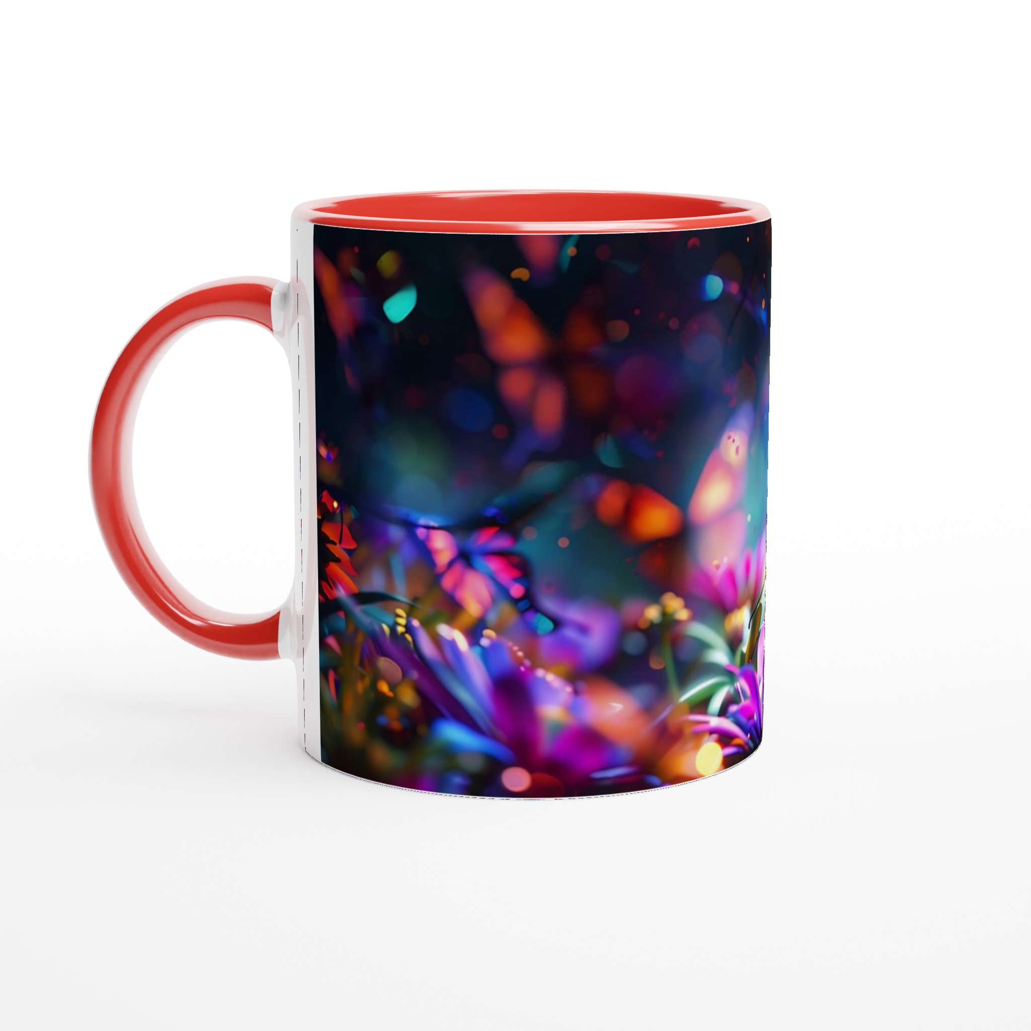 Fånga magin i en förtrollad trädgård varje gång du tar en klunk med denna underbara keramiska mugg. Dess design, inspirerad av skimrande fjärilar och blommor i en kalejdoskopisk färgpalett, förvandlar din dryckesstund till en drömlik upplevelse. Oavsett om det är morgonkaffet, kvällens varma choklad eller en lugn kopp te, blir denna mugg snabbt din favorit.