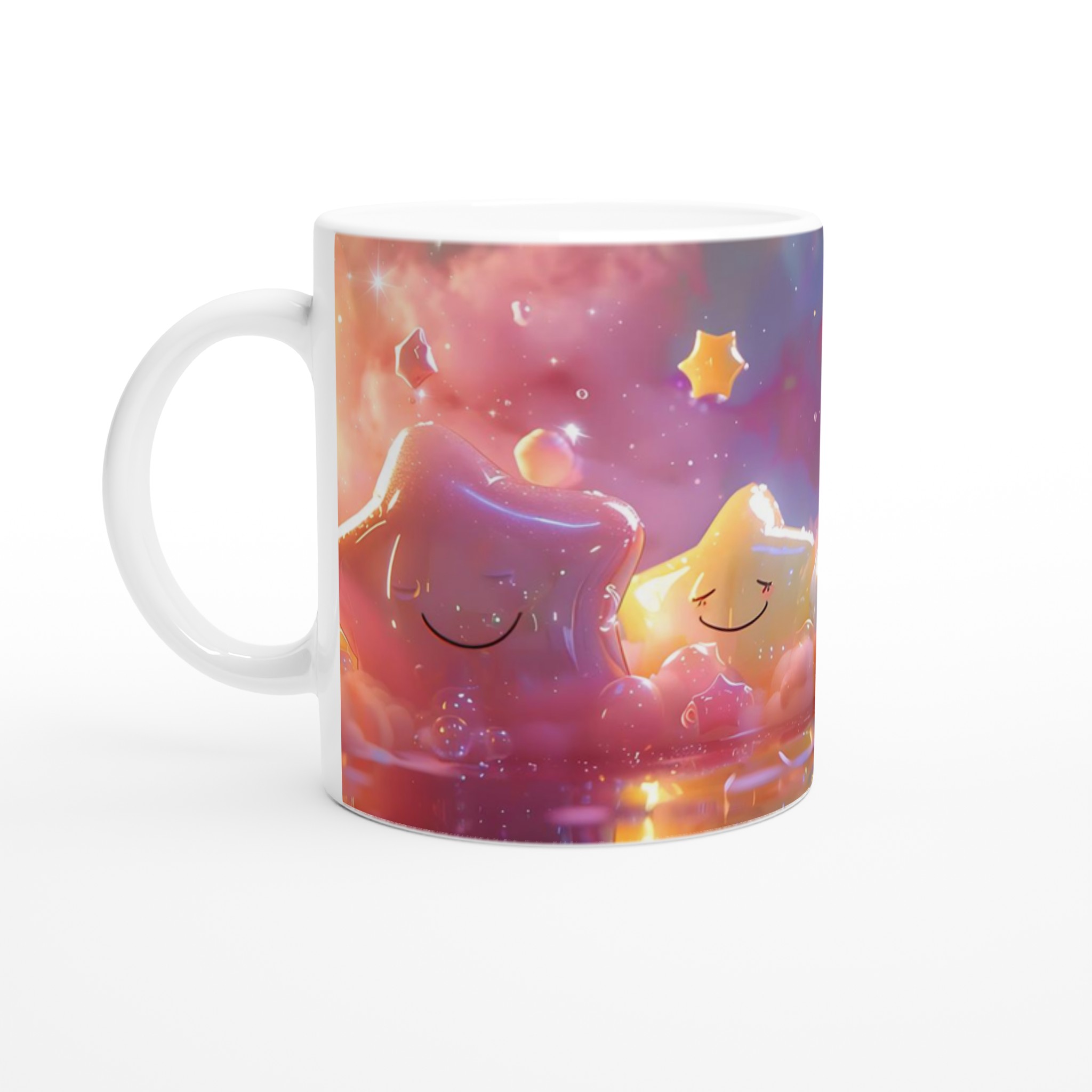 Inspirerad av drömska stjärnhimlar och lekfulla molnlandskap, ger denna mugg en touch av magi till din vardag. Med sina mjuka pastellfärger och en känsla av glittrande stjärnor, förvandlar den varje klunk till en liten flykt. Den blanka vita ytan ger ett skarpt och levande tryck som verkligen sticker ut, oavsett om det är en personlig design, ett roligt citat eller en present till någon du tycker om.