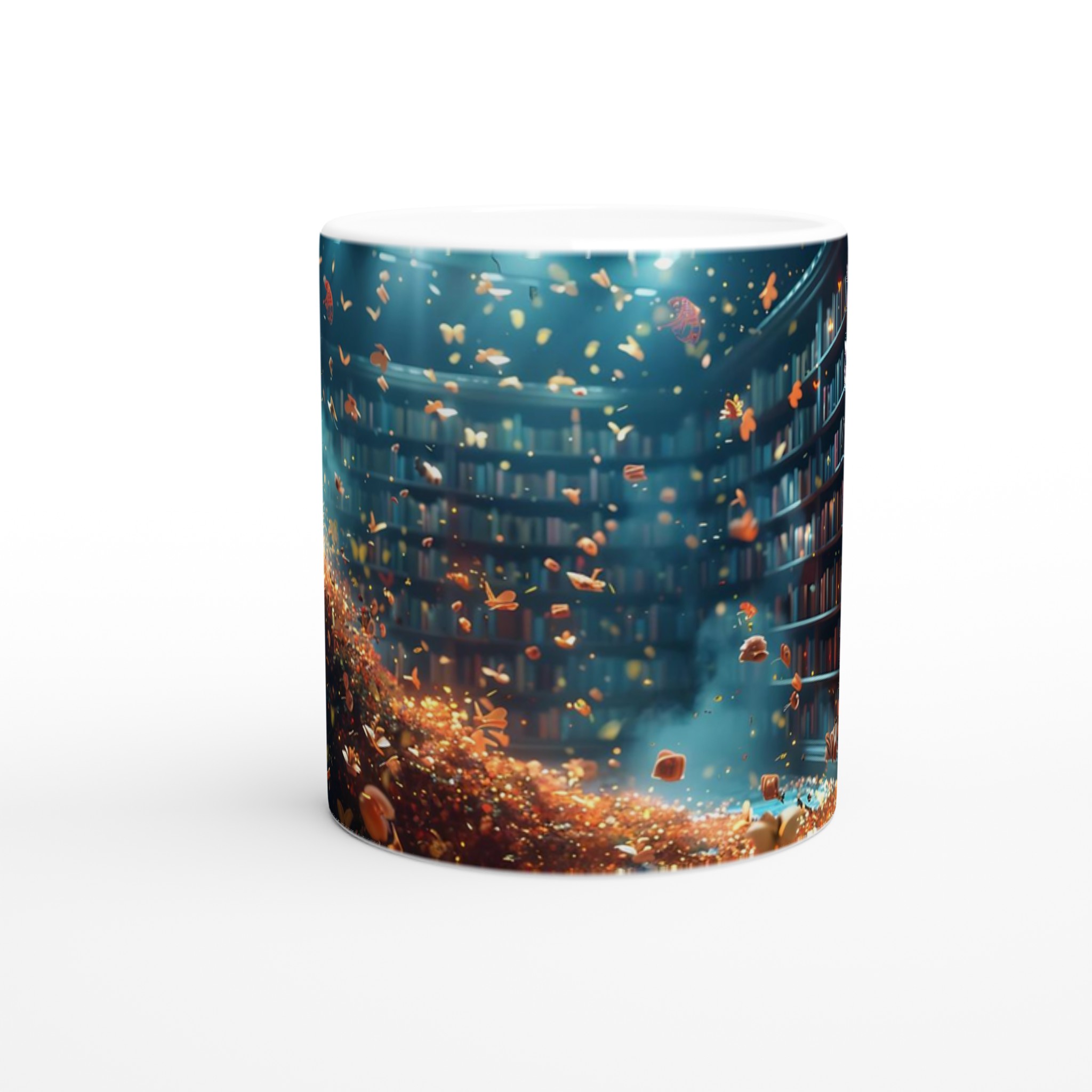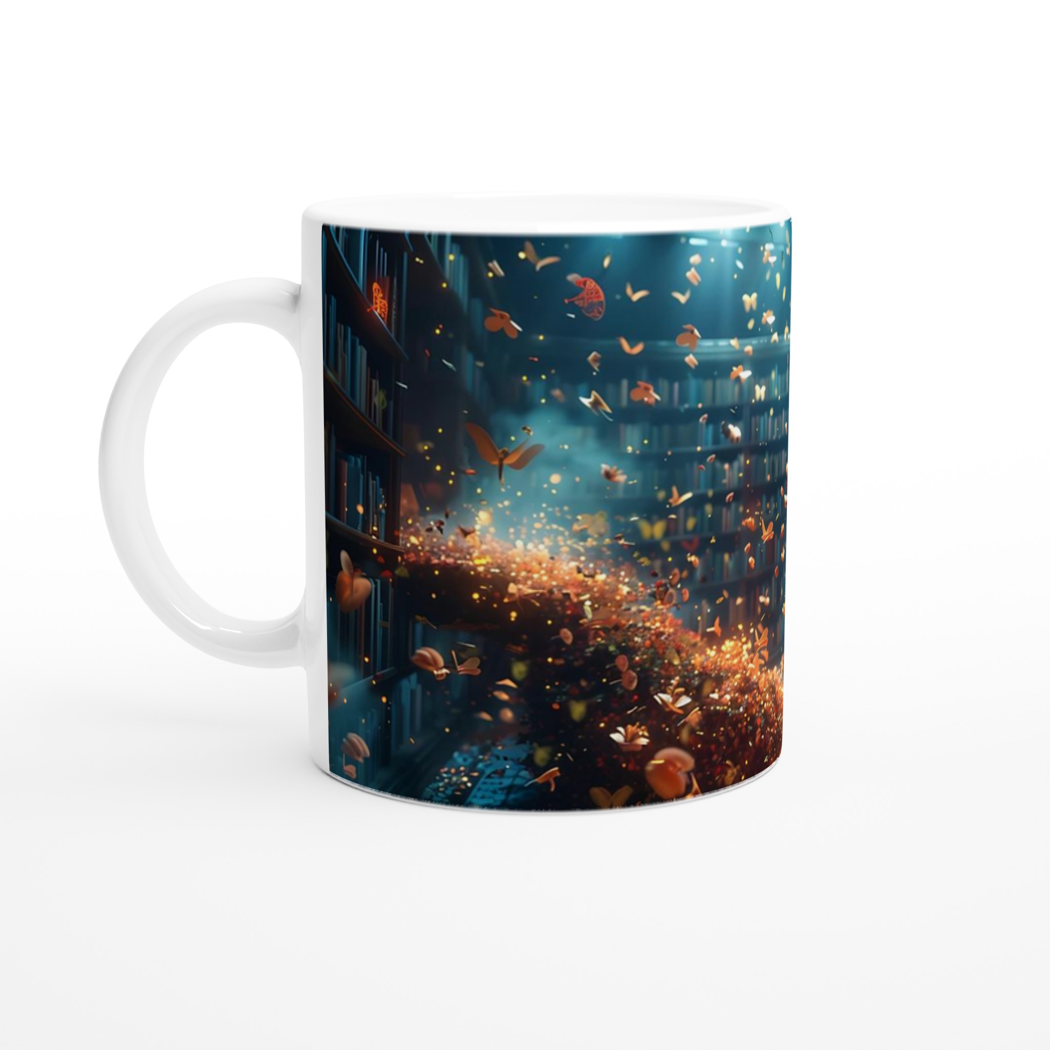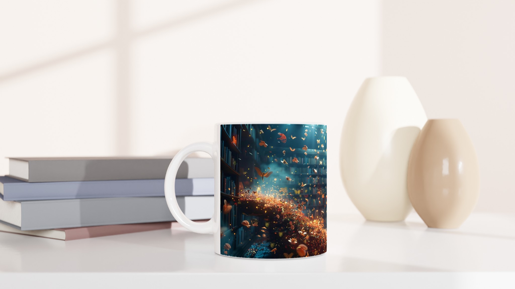 Föreställ dig en värld där berättelser flyger fritt och kunskap sprider sitt skimmer. Den här magiska keramiska muggen fångar den känslan perfekt, med en design som för tankarna till ett drömskt bibliotek där bokstavligen sidor och idéer svävar omkring. Den blir snabbt en vardagsfavorit, perfekt för morgonkaffet, kvällens varma choklad eller när du bara vill njuta av en kopp te i lugn och ro.