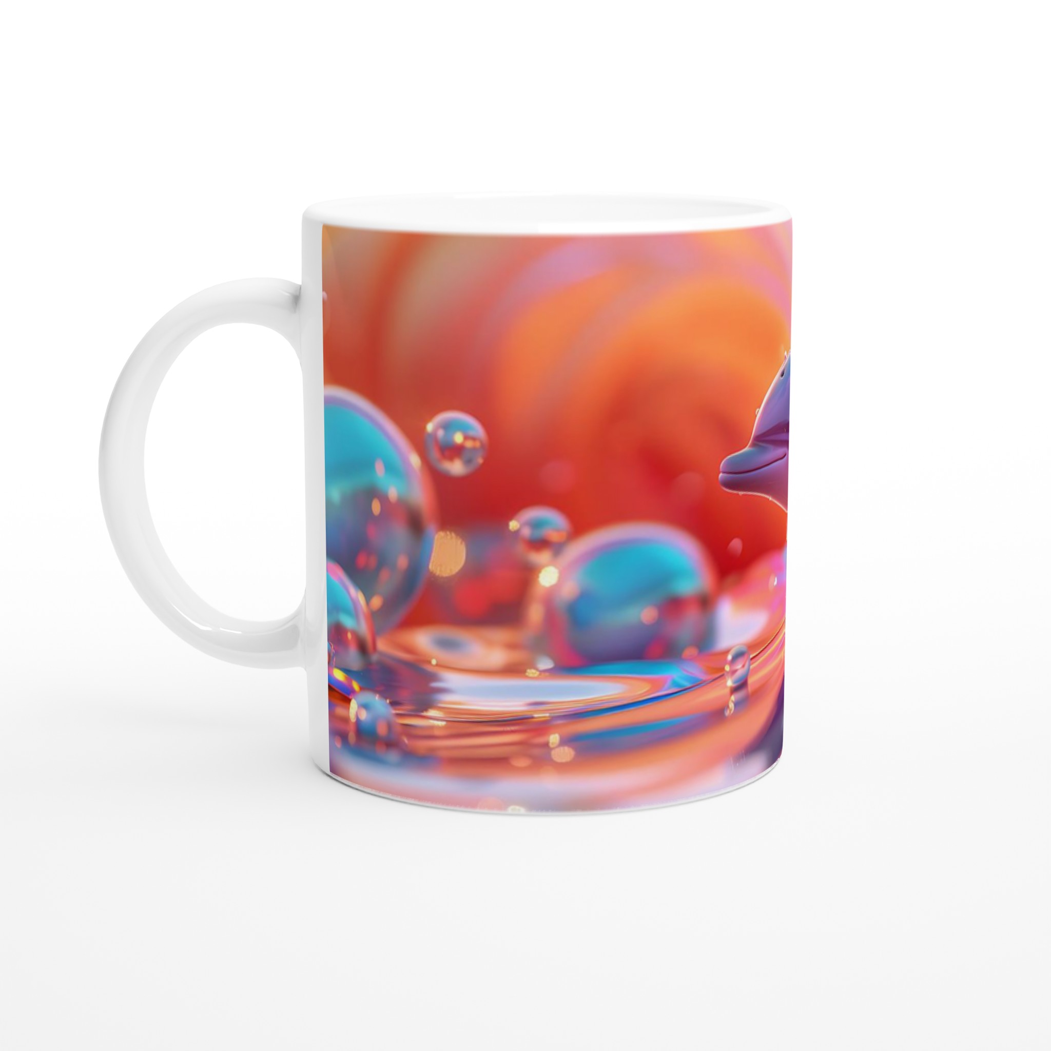 Inspirerad av havets magi och den lekfulla energin från en delfin i solnedgången, bjuder denna mugg in till en stund av lugn och glädje. Den blanka vita ytan ger ett skarpt och levande tryck som verkligen sticker ut, oavsett om det är en personlig design, ett roligt citat eller en present till någon du tycker om.