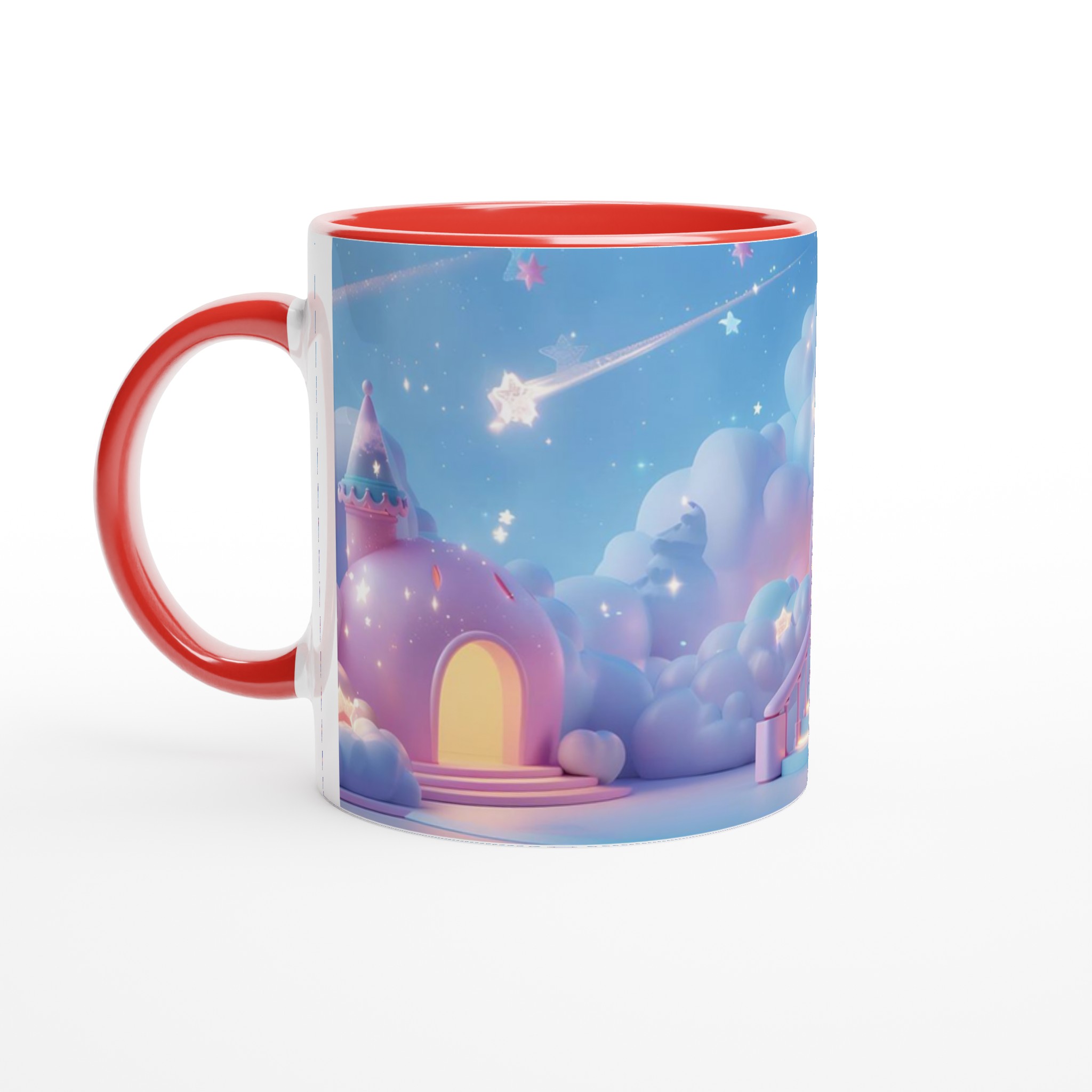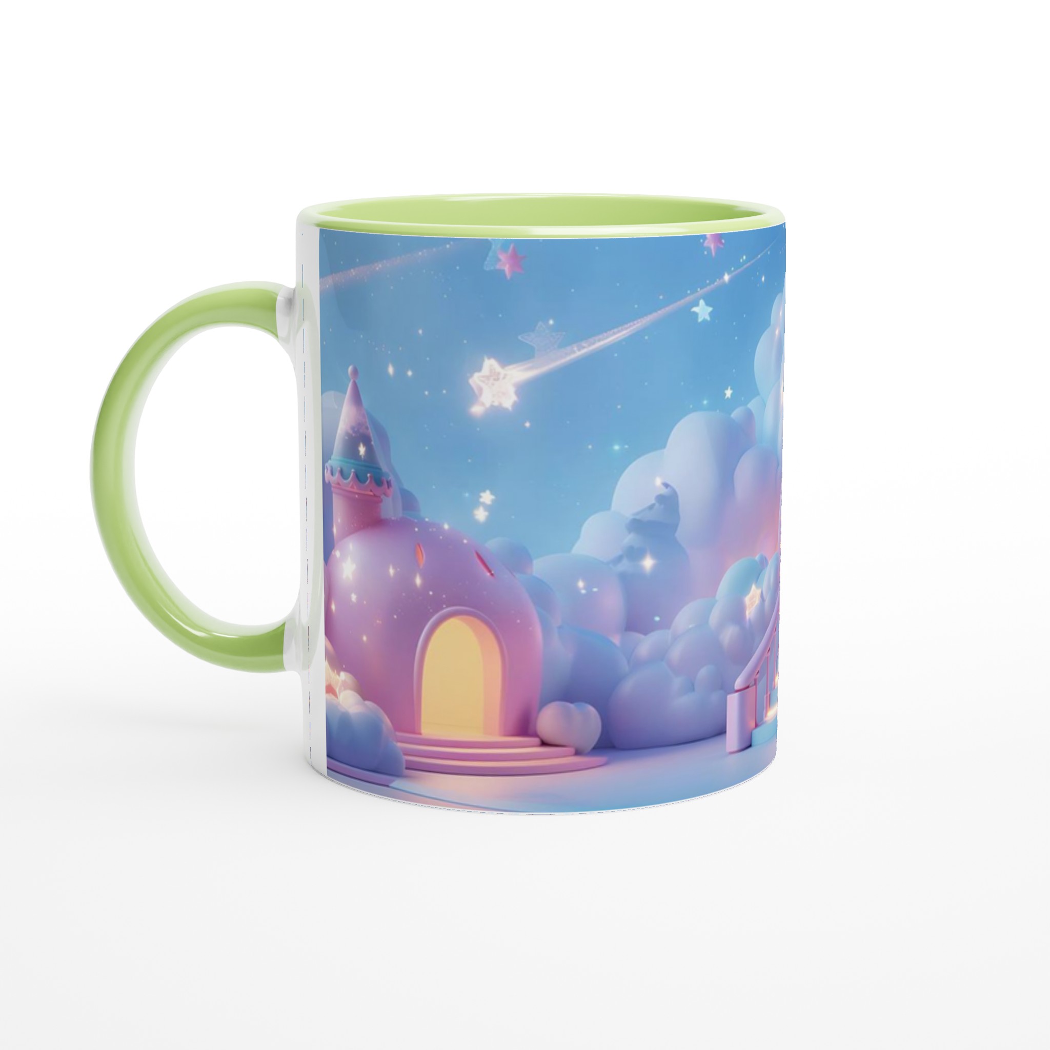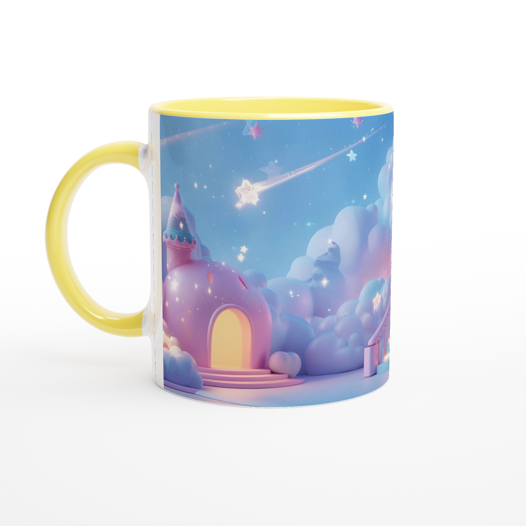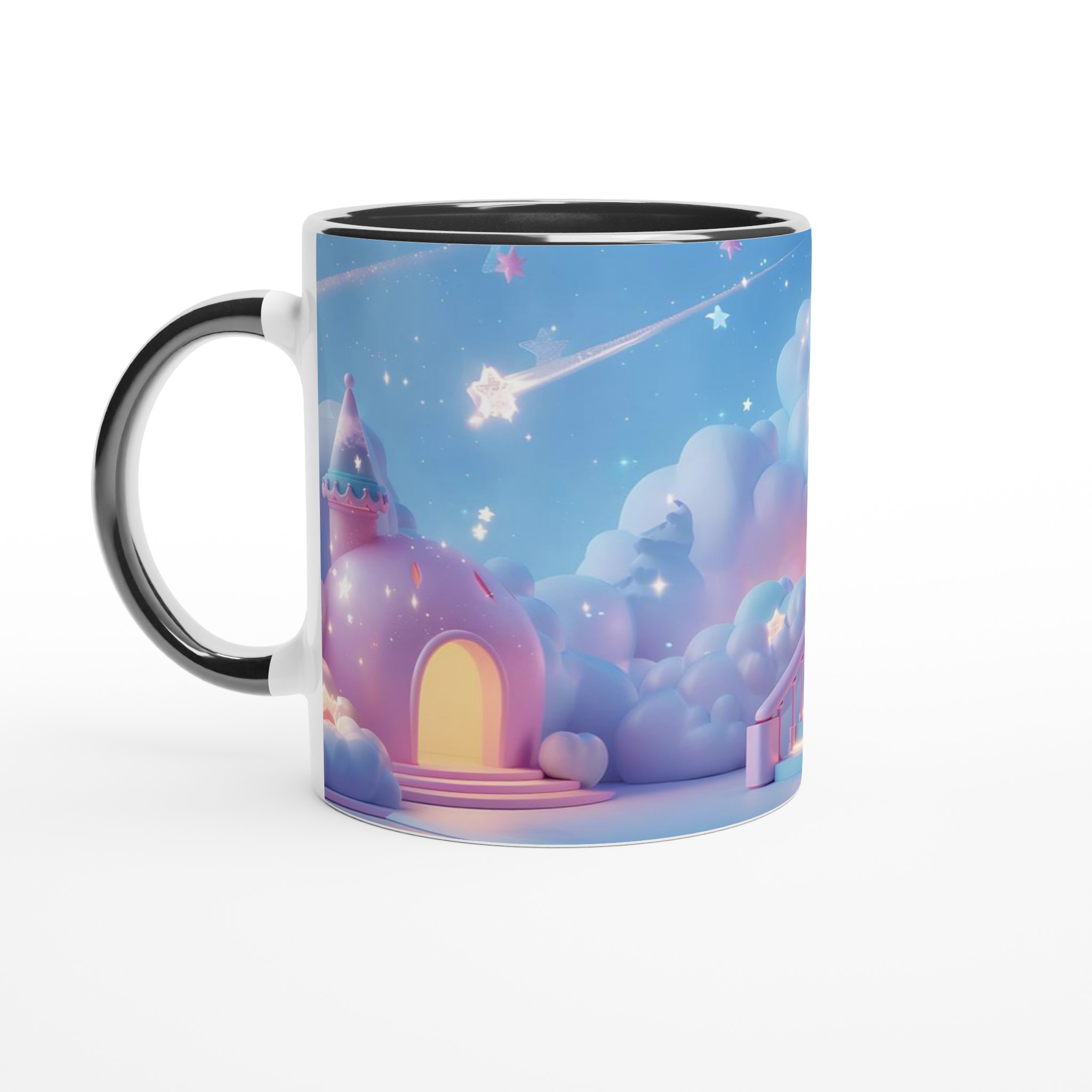 Fånga magin med vår förtrollande keramiska mugg, inspirerad av fantasins sagoslott och lysande stjärnhimmel. Med sin ljuva palett av pastellrosa och himmelsblått, förvandlar denna mugg varje dryckesstund till en drömsk flykt. Den blanka vita ytan ser till att de mjuka trycken framhävs med klara och levande färger, som håller sig fina även efter många turer i mikron och diskmaskinen.