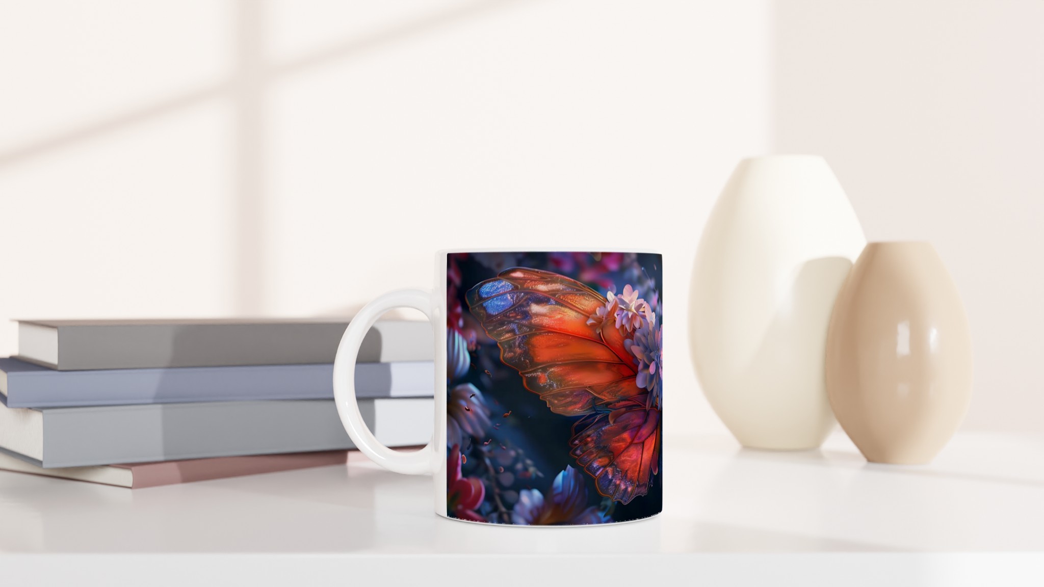 Fånga en bit av den eteriska skönheten med denna magiska fjärilsmugg. Inspirerad av en drömlik bild av en fjäril omgiven av blomster, bjuder denna mugg in till en stund av lugn och förundran med varje klunk. De levande färgerna och det intrikata motivet skapar en känsla av förtrollning, perfekt för att förgylla din morgonrutin eller addera en touch av fantasi till din fikastund.