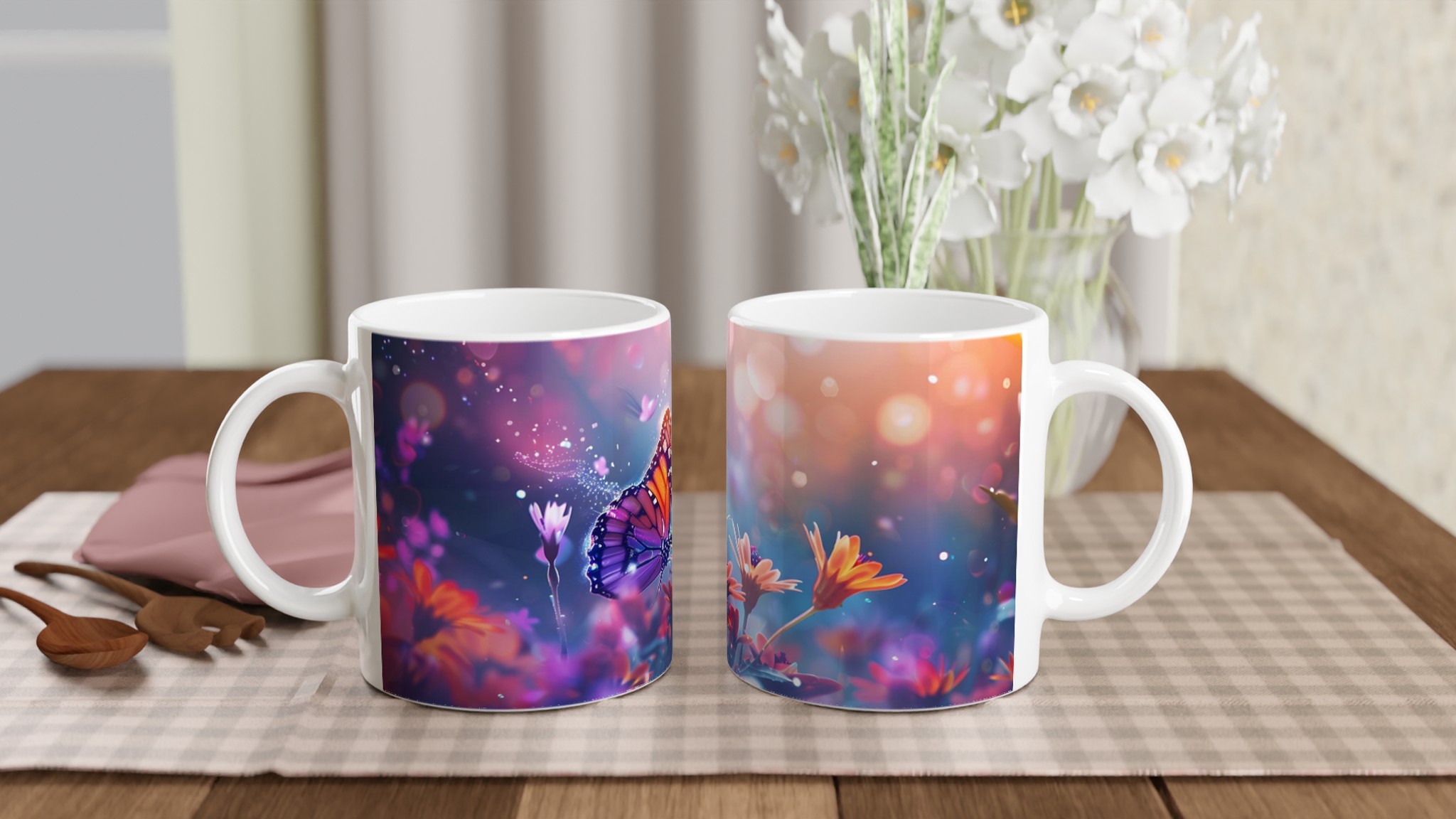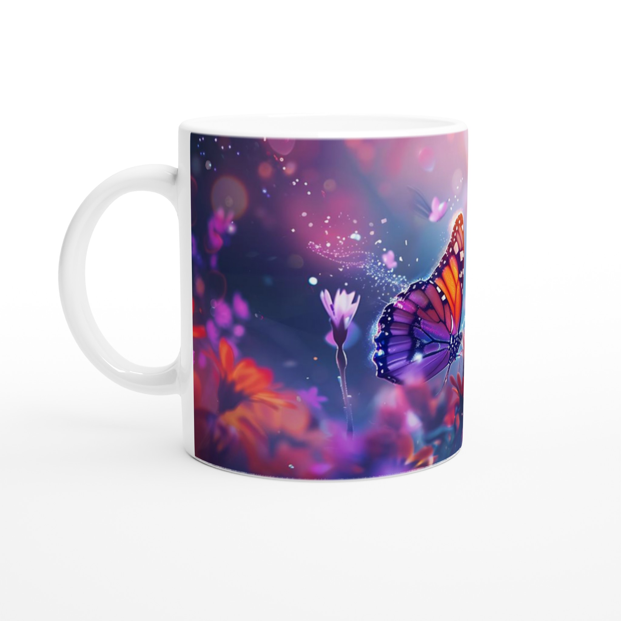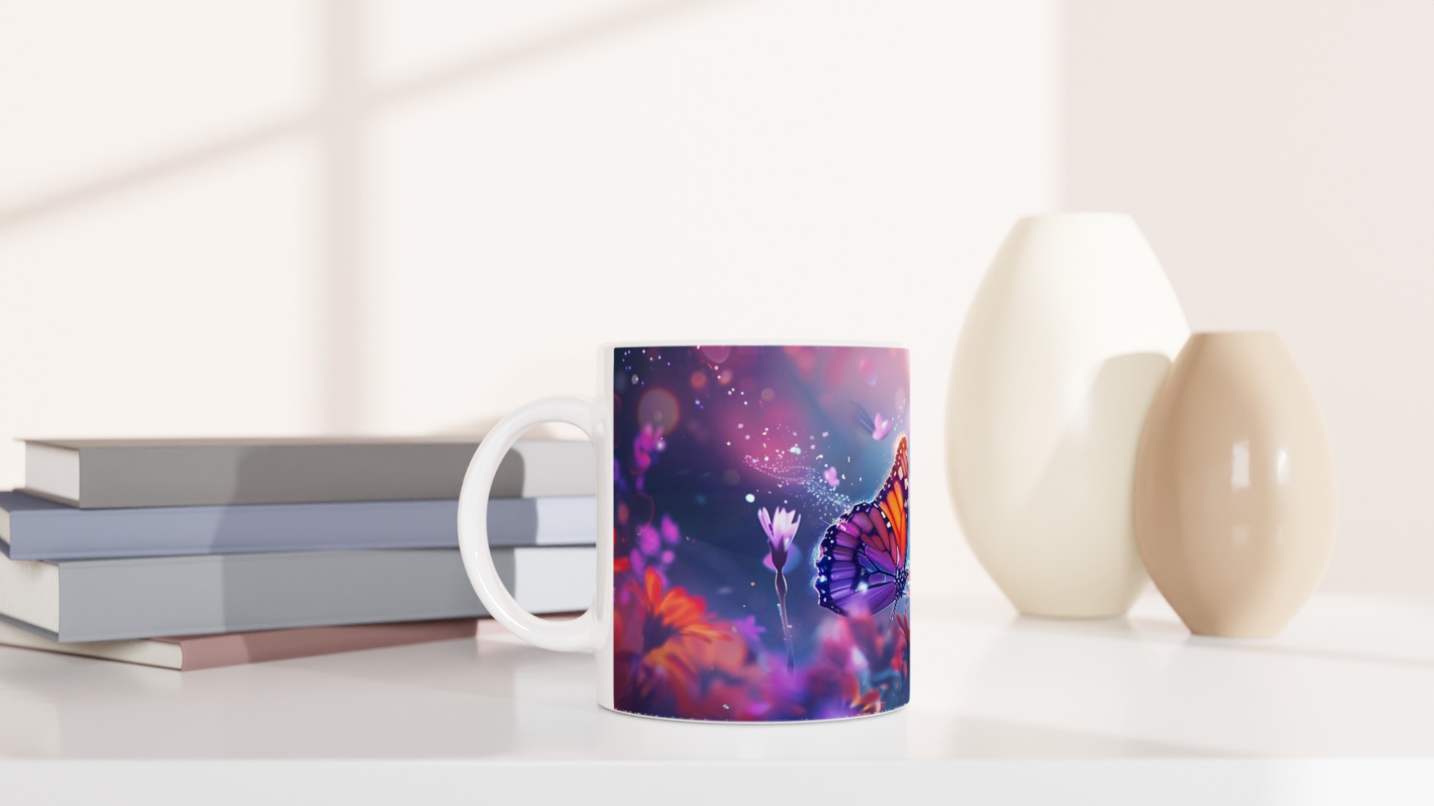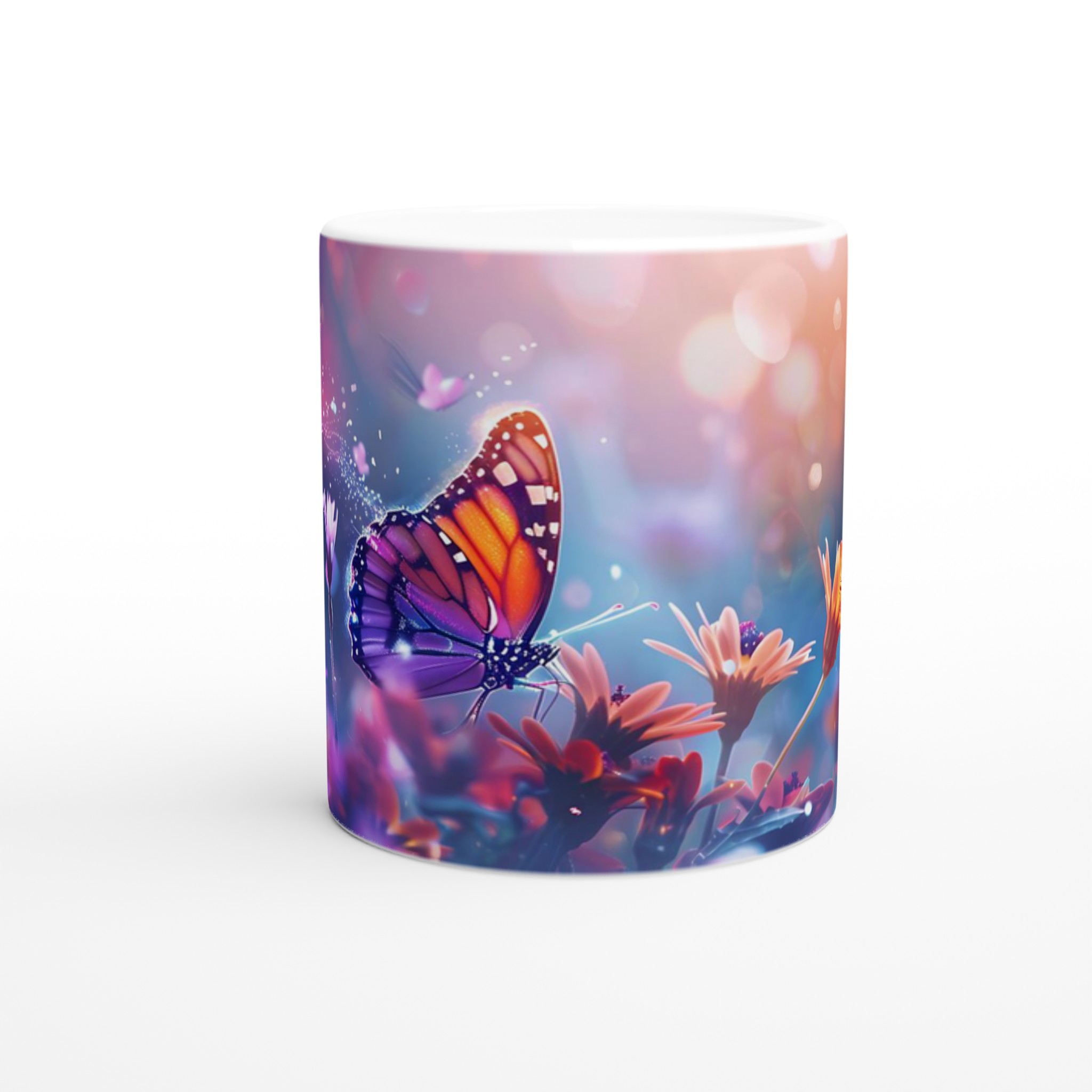 Fånga den förtrollande känslan av en sommaräng fylld med magi varje gång du tar en klunk. Den här stilrena keramiska muggen blir snabbt en vardagsfavorit, och med sitt drömska fjärilsmotiv framhävs färgspelet på ett sätt som väcker glädje. Perfekt för morgonkaffet, kvällens varma choklad eller när du bara vill njuta av en kopp te.