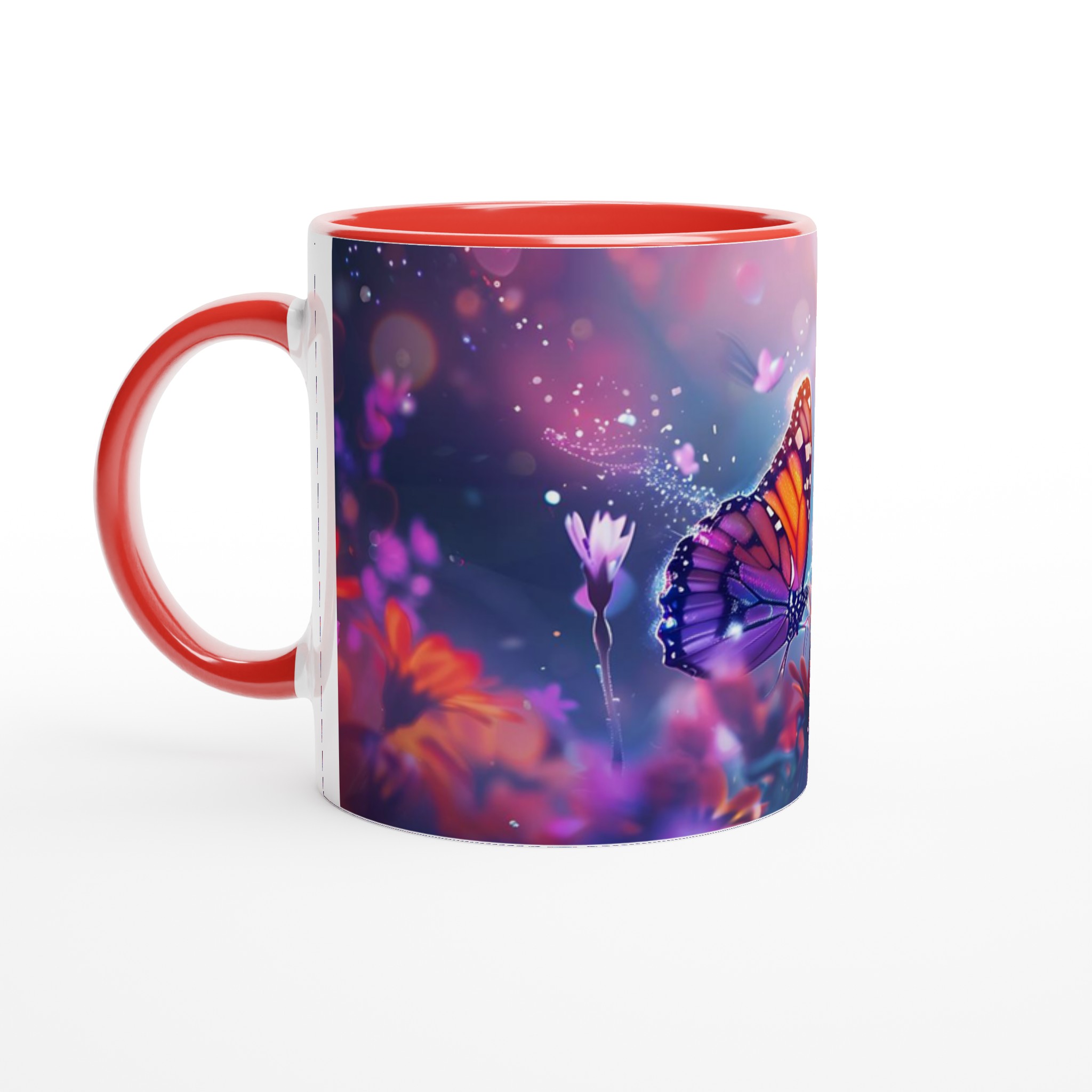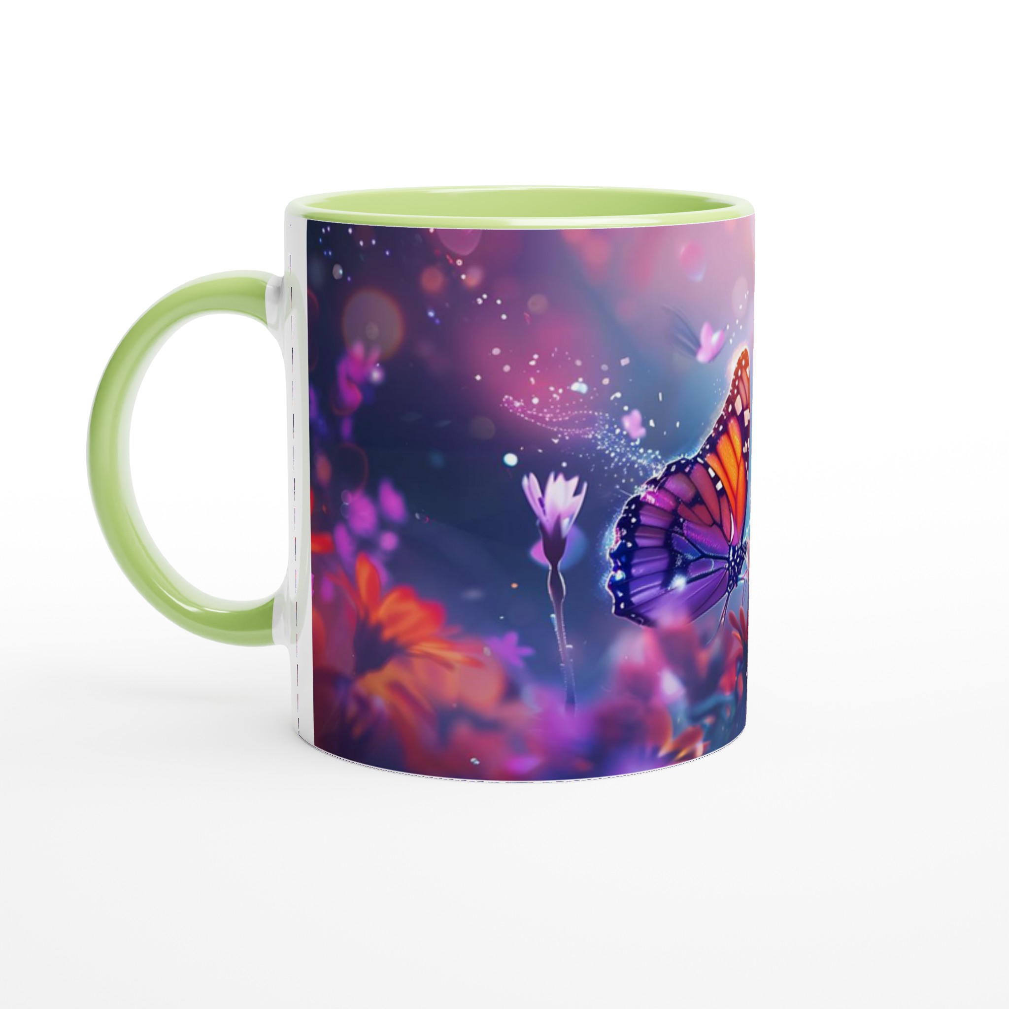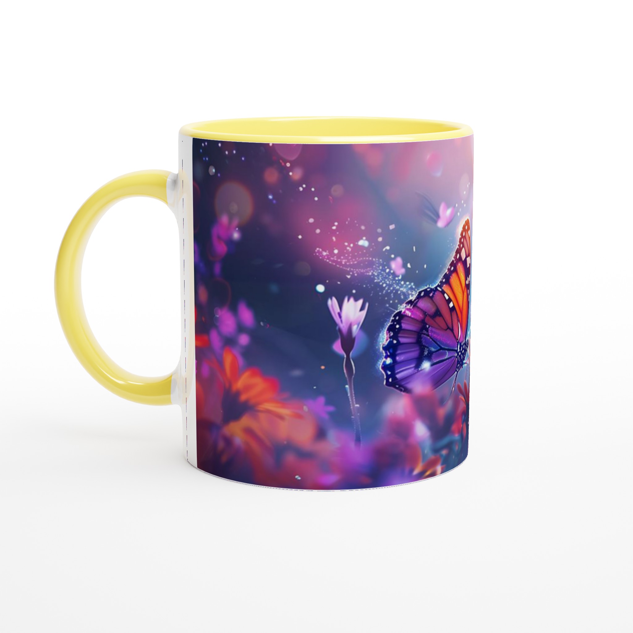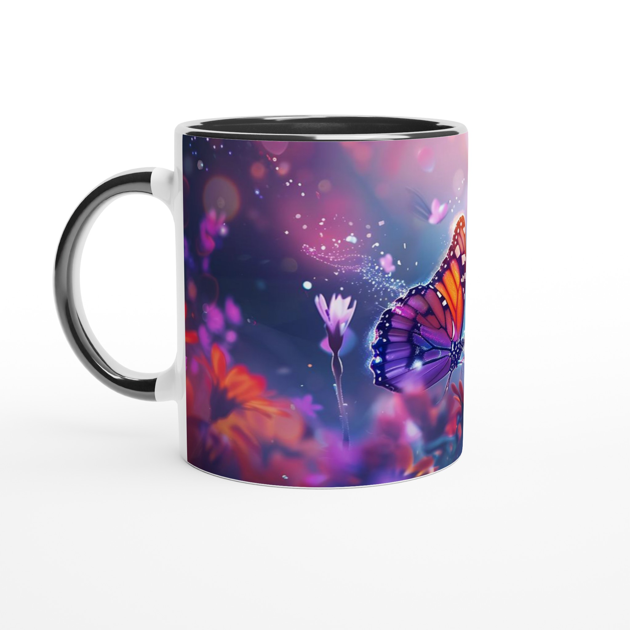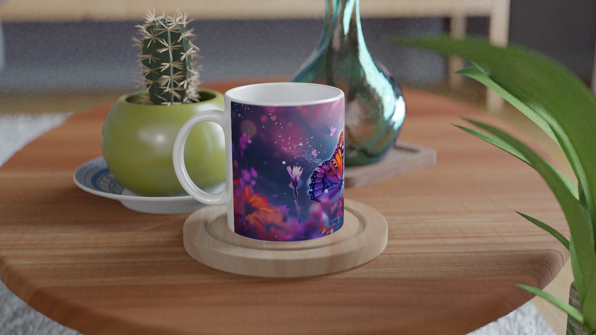 Fånga den förtrollande känslan av en sommaräng fylld med magi varje gång du tar en klunk. Den här stilrena keramiska muggen blir snabbt en vardagsfavorit, och med sitt drömska fjärilsmotiv framhävs färgspelet på ett sätt som väcker glädje. Perfekt för morgonkaffet, kvällens varma choklad eller när du bara vill njuta av en kopp te.