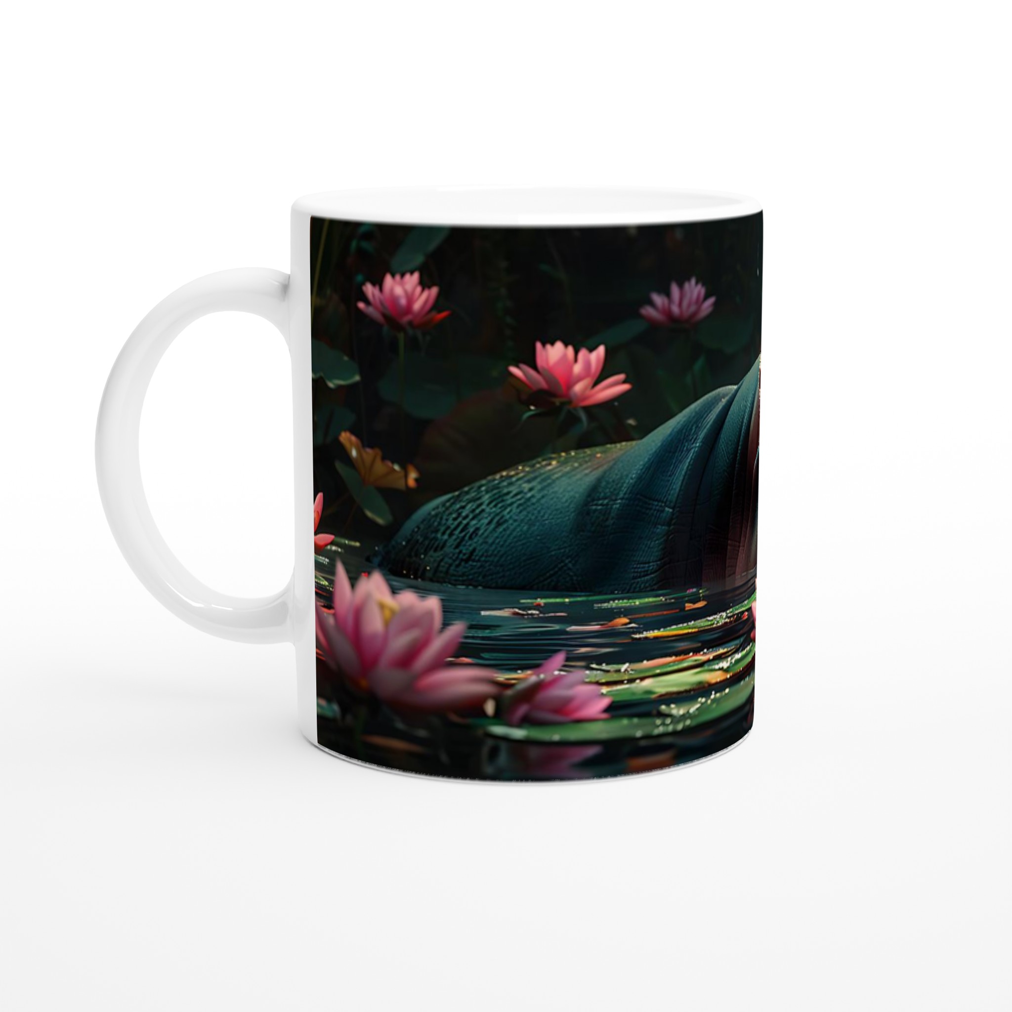 Föreställ dig en lugn stund vid floden, omgiven av blommande näckrosor, med en majestätisk flodhäst som vilar fridfullt. Vår premium keramiska mugg fångar denna magiska scen med enastående detaljrikedom och en färgpalett som för tankarna till avkoppling och naturskönhet. Den rika kontrasten mellan det mörkgröna vattnet och de lysande rosa näckrosorna gör varje sipp till en upplevelse. Välj din favoritfärg bland sju fantastiska alternativ – Ceramic White, Ceramic Yellow, Ceramic Pink, Ceramic Green, Ceramic Red, Ceramic Black eller Ceramic Blue – för att matcha din personliga stil eller som en perfekt gåva.