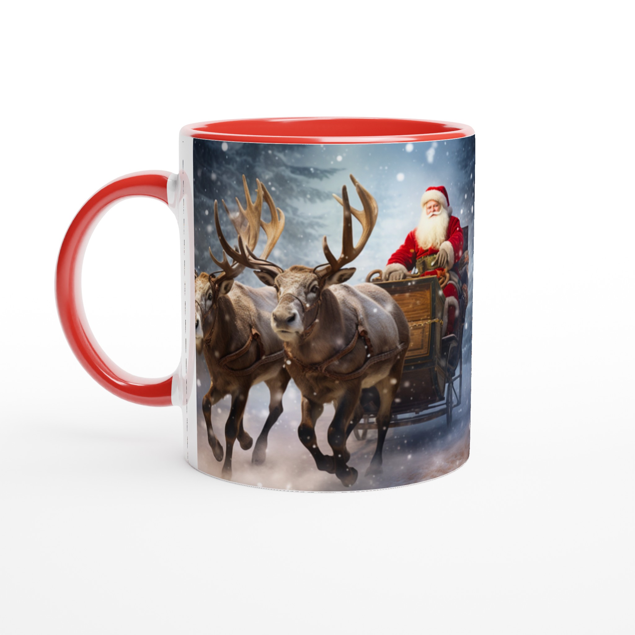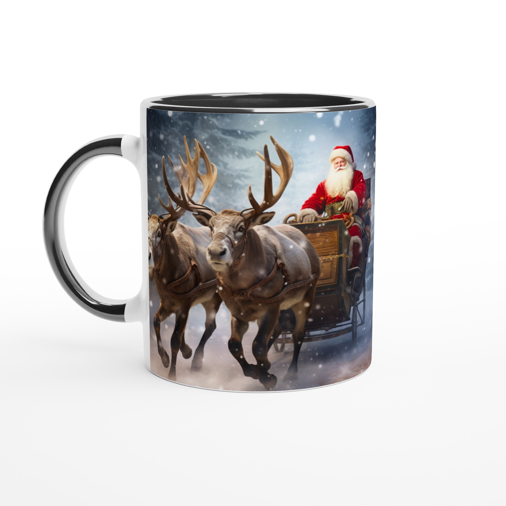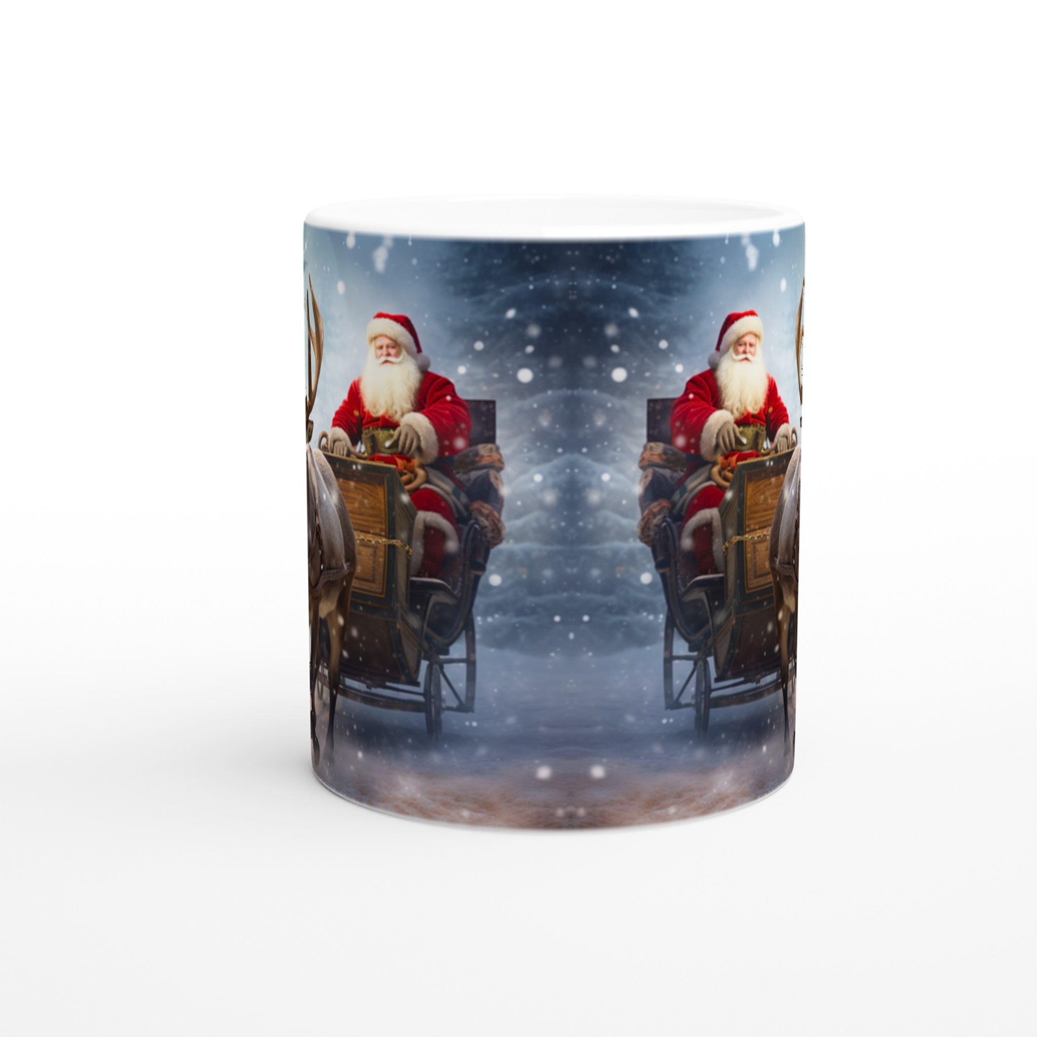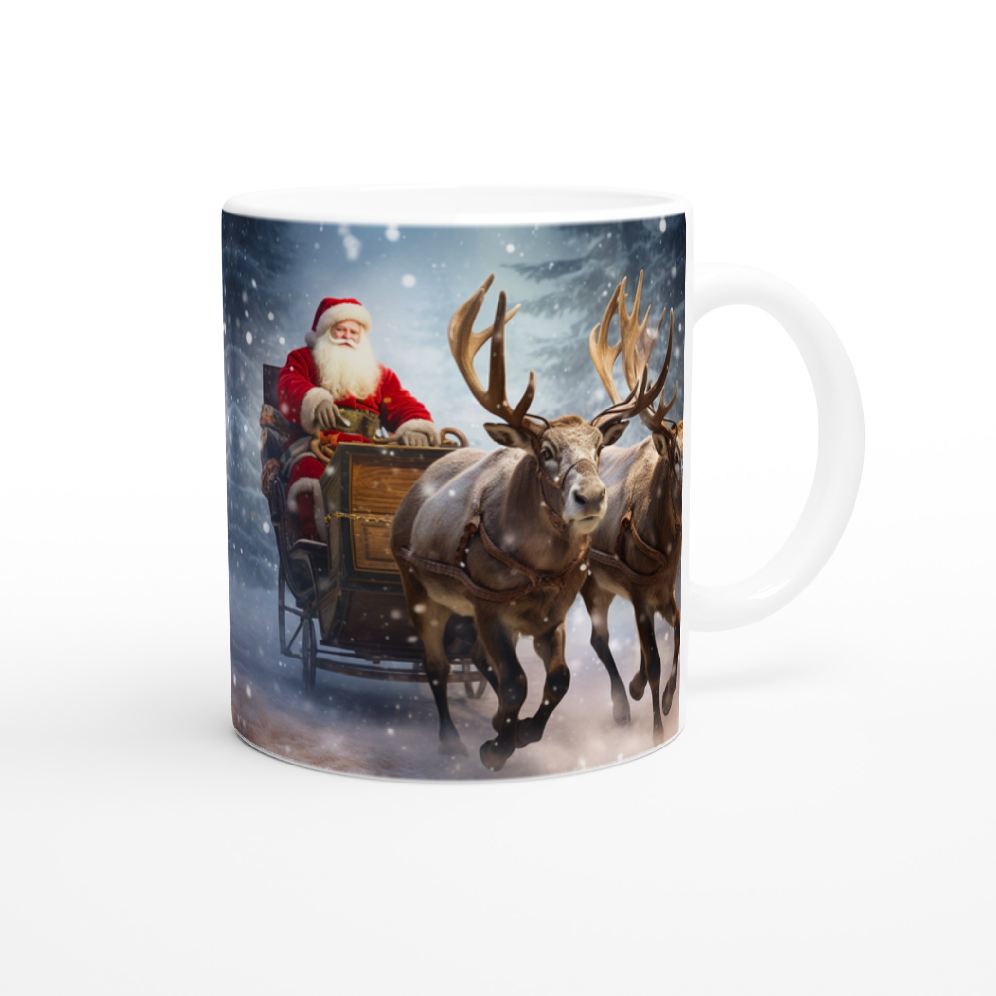 Fånga julens magi varje gång du tar en klunk! Denna förtrollande keramiska mugg transporterar dig direkt till en gnistrande vinternatt med Tomten och hans ståtliga renar, mitt i ett stilla snöfall. Perfekt för morgonkaffet som värmer själen, kvällens mysiga varma choklad, eller när du bara vill njuta av en kopp te medan snöflingorna faller utanför ditt fönster. Den blanka ytan framhäver det detaljrika vinterlandskapet med klara och levande färger, som håller sig fina även efter otaliga turer i mikron och diskmaskinen.