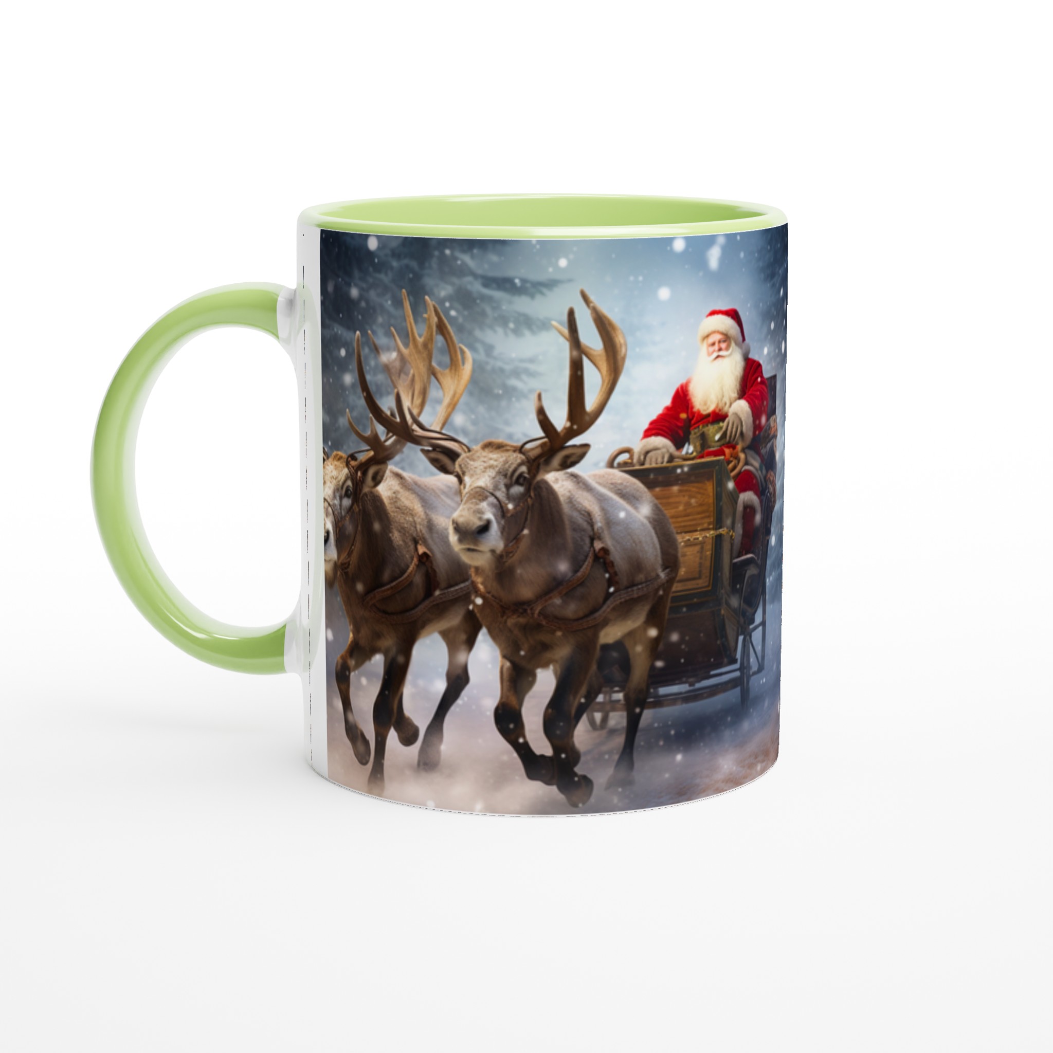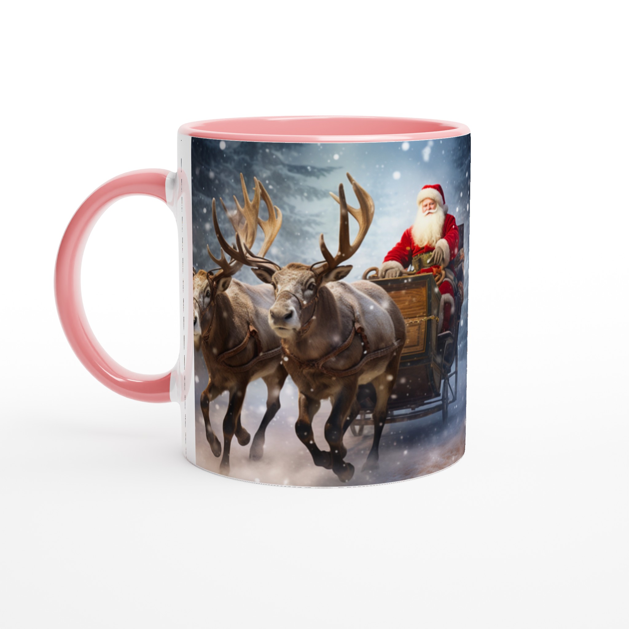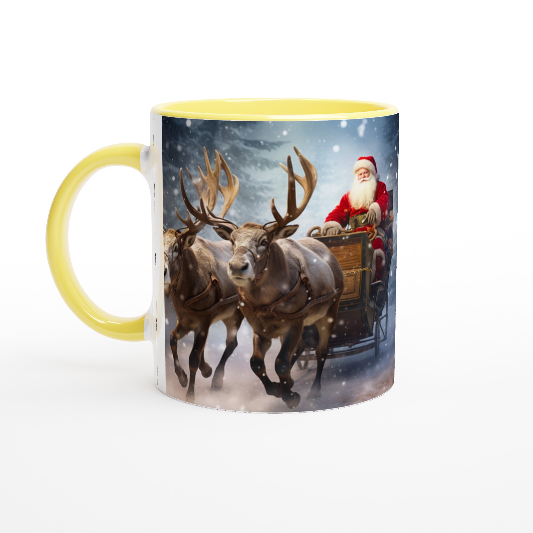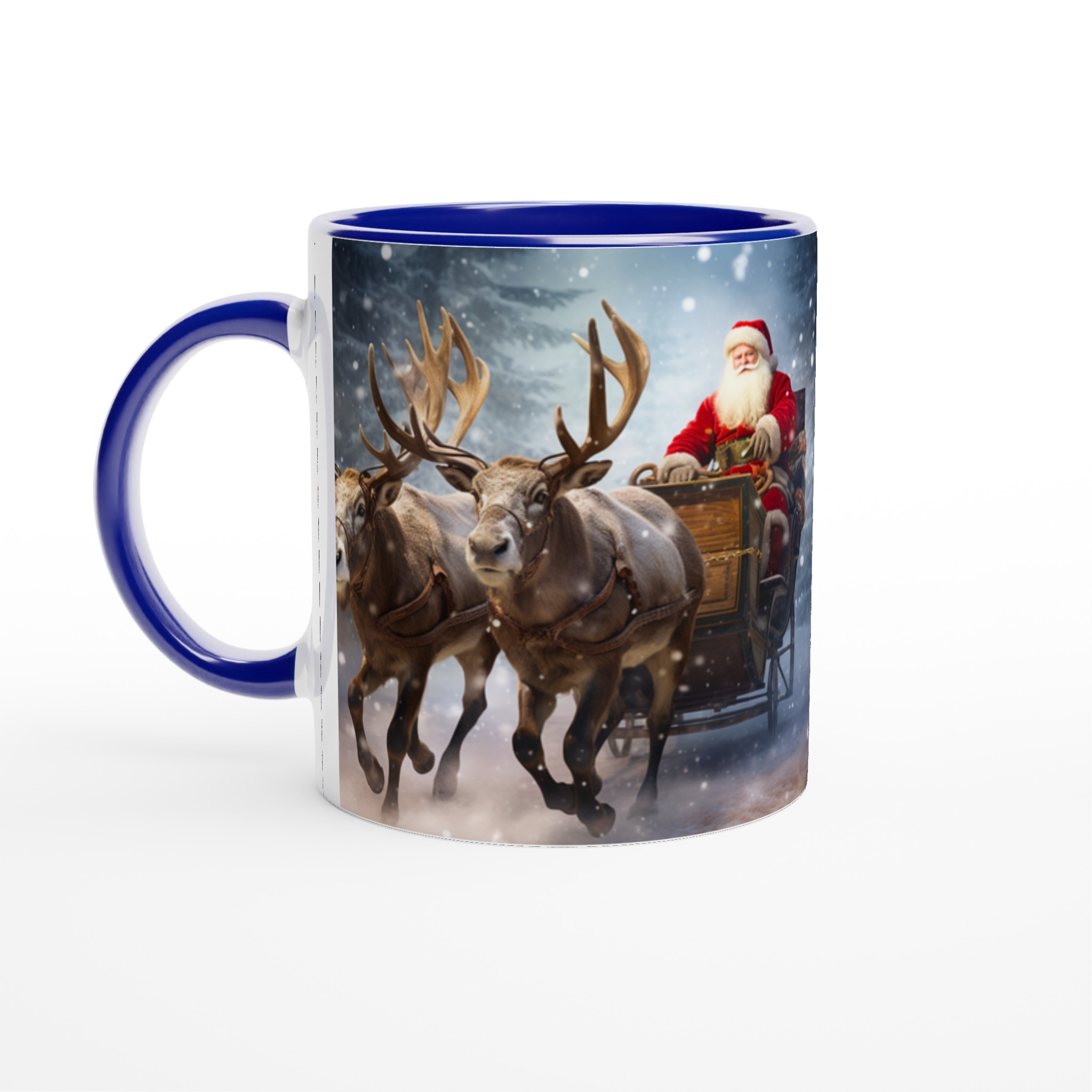 Fånga julens magi varje gång du tar en klunk! Denna förtrollande keramiska mugg transporterar dig direkt till en gnistrande vinternatt med Tomten och hans ståtliga renar, mitt i ett stilla snöfall. Perfekt för morgonkaffet som värmer själen, kvällens mysiga varma choklad, eller när du bara vill njuta av en kopp te medan snöflingorna faller utanför ditt fönster. Den blanka ytan framhäver det detaljrika vinterlandskapet med klara och levande färger, som håller sig fina även efter otaliga turer i mikron och diskmaskinen.
