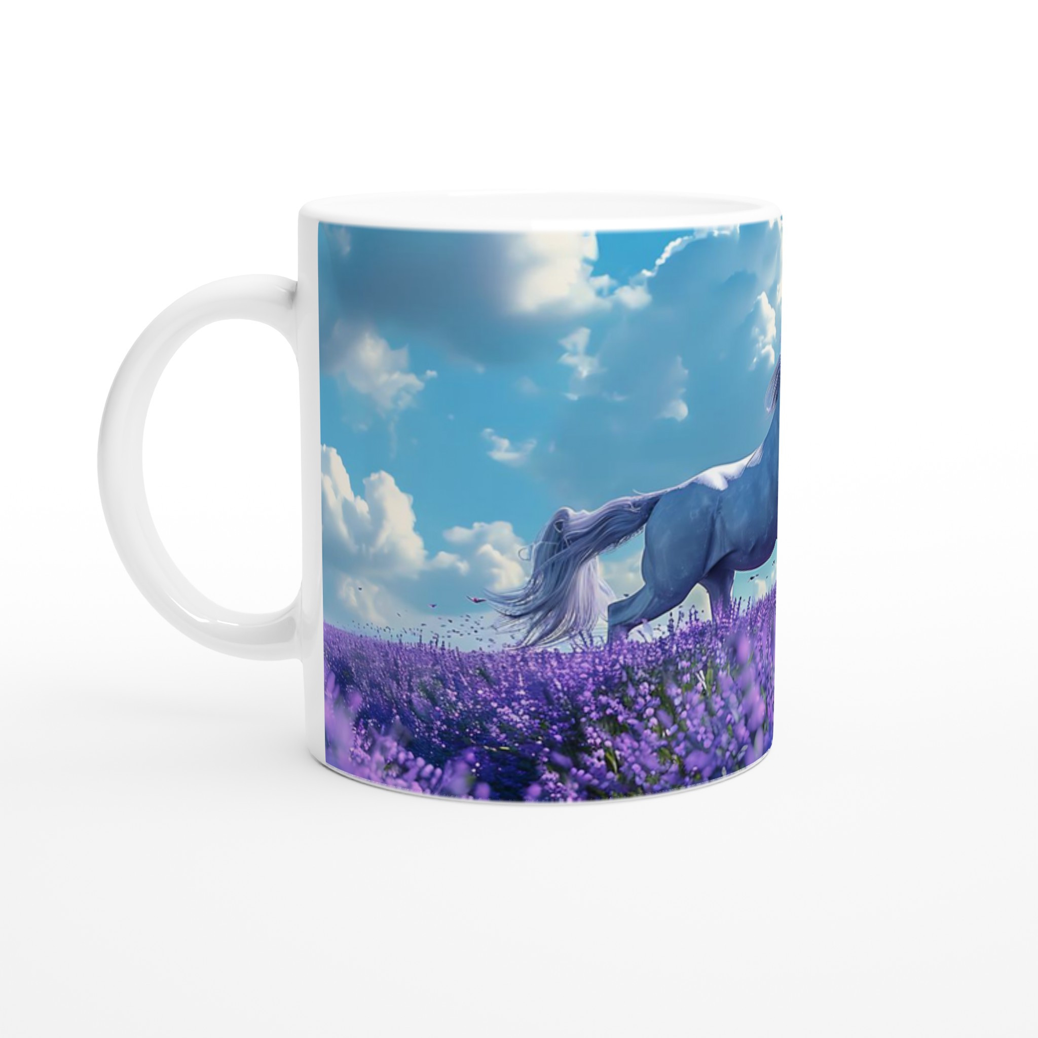 Förvandla varje klunk till en flykt till drömmarnas lavendelfält med vår premium keramikmugg – stilren, hållbar och skapad för att låta ditt motiv glänsa. Inspirerad av den eteriska skönheten hos en galopperande vit häst över lila fält under en vidsträckt himmel, är denna mugg mer än bara en kopp; den är en inbjudan att drömma sig bort. Den blanka vita ytan ger ett skarpt och levande tryck som verkligen sticker ut, oavsett om det är en personlig design, ett roligt citat eller en present till någon du tycker om.