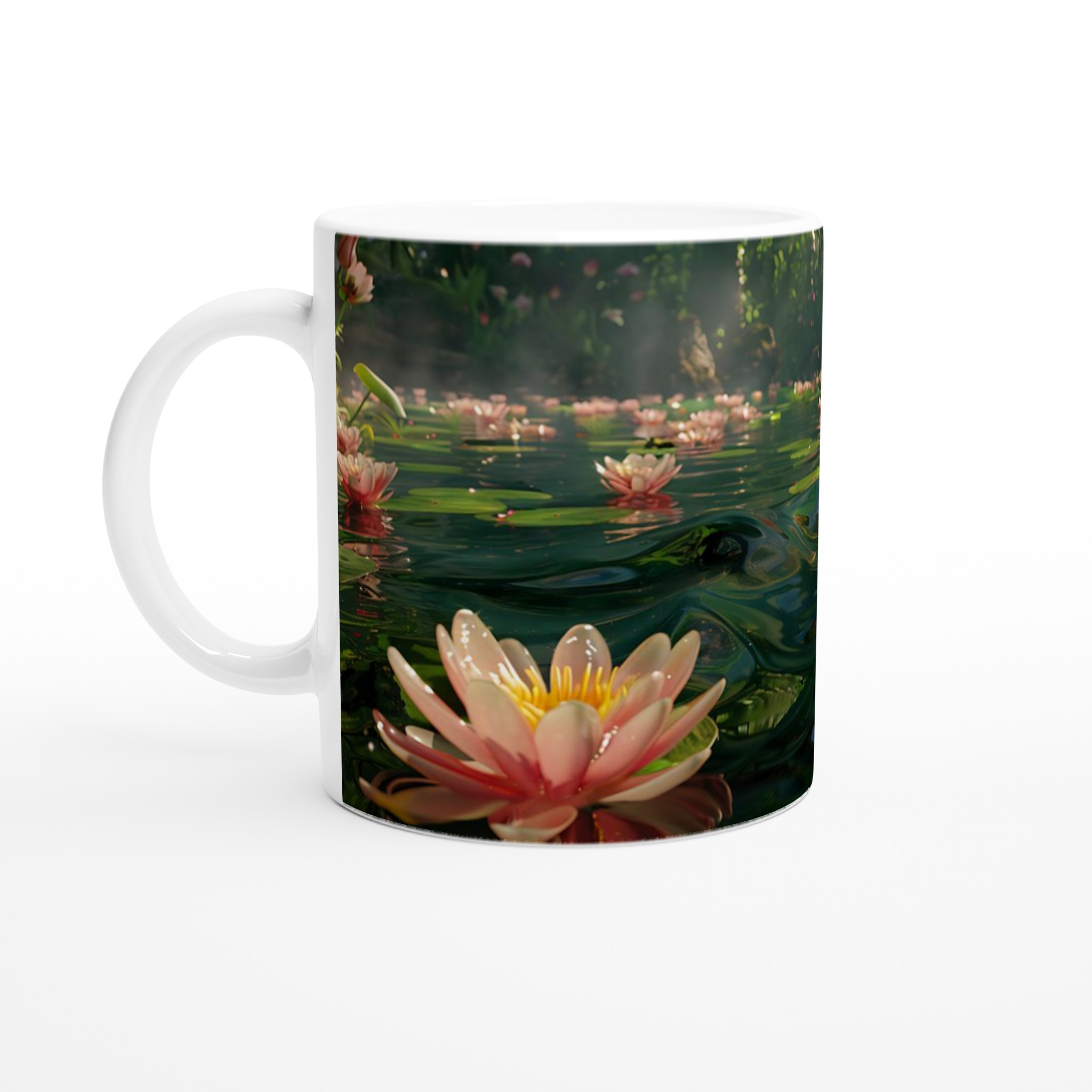 Föreställ dig en lugn oas, där rosa näckrosor flyter stilla på vattnet. Denna ”Magisk Näckrosmugg” fångar den fridfulla skönheten och ger din dryckesupplevelse en touch av naturmagi. Dess blanka vita yta ger ett skarpt och levande tryck som verkligen sticker ut, oavsett om det är en personlig design, ett roligt citat eller en present till någon du tycker om.