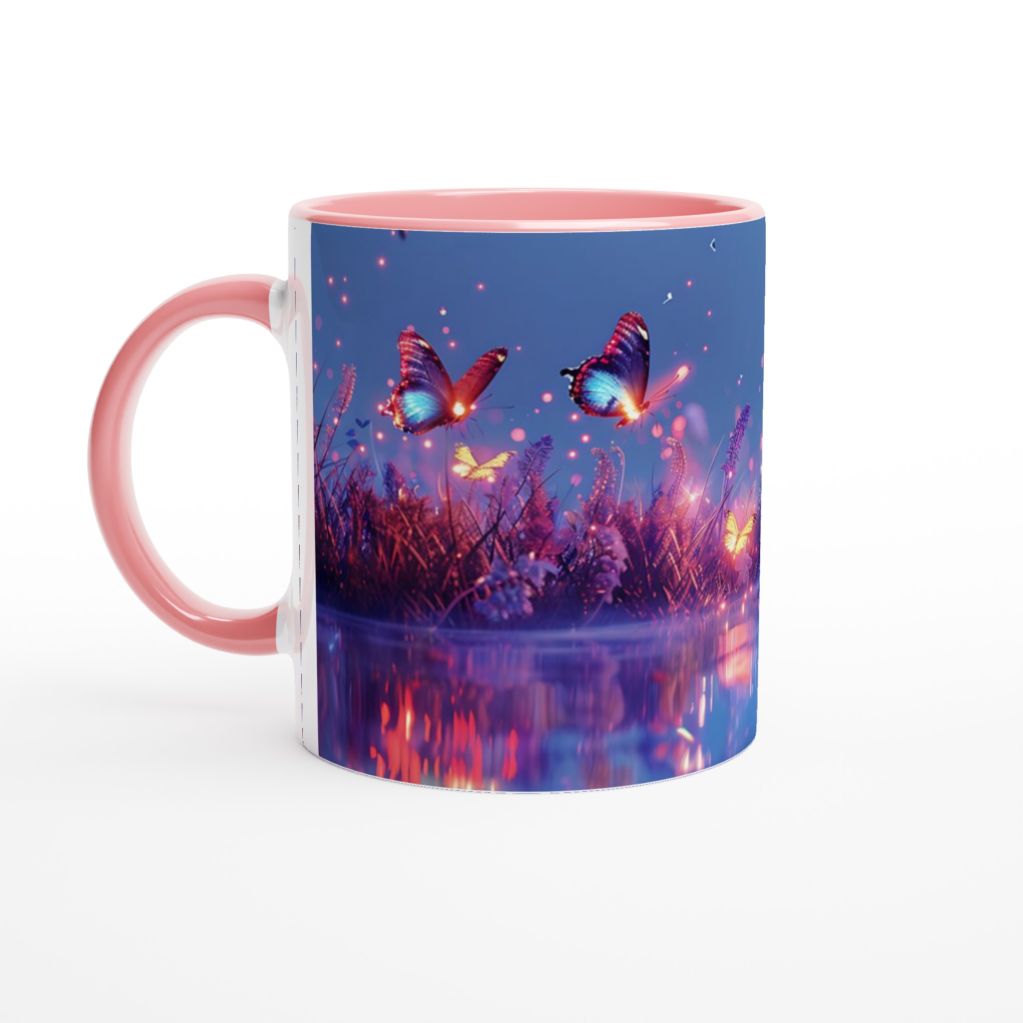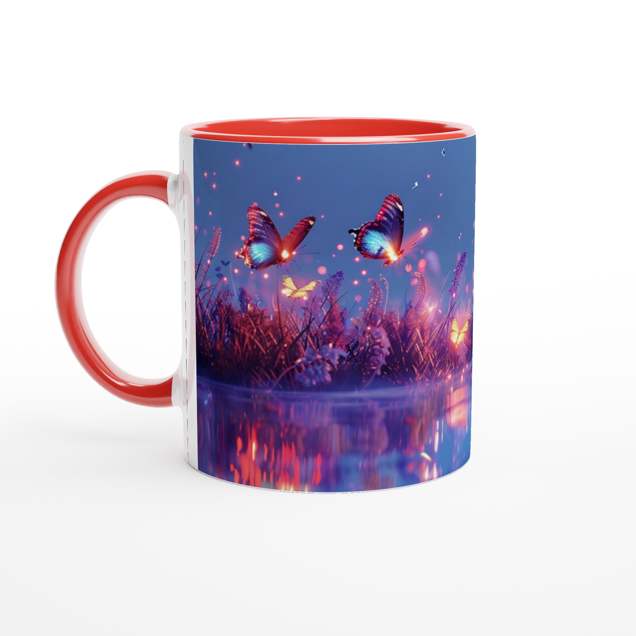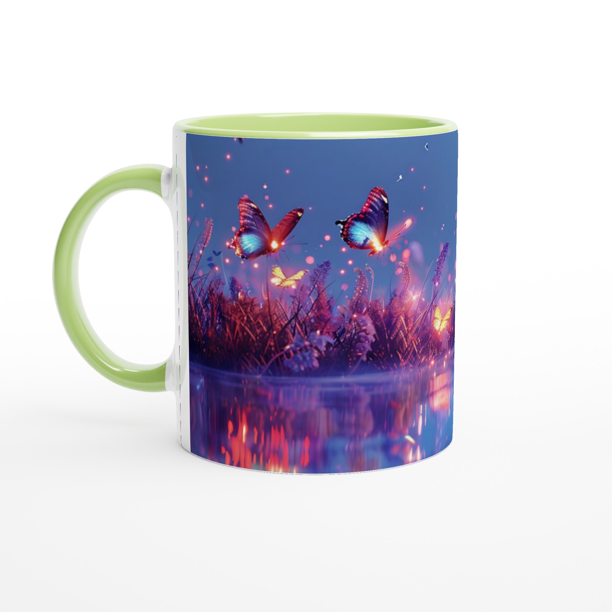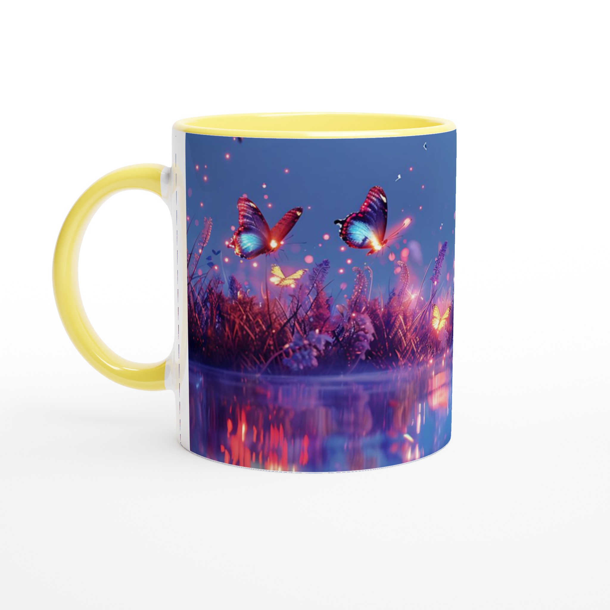 Fånga den magiska stämningen från en sommarnatt med fjärilar som dansar över vattnet med vår förtrollande keramiska mugg. Varje klunk blir en flykt till en drömlik trädgård, perfekt för ditt morgonkaffe, kvällens mysiga choklad, eller en avkopplande kopp te. Den blanka ytan framhäver de levande färgerna från designen och garanterar att den håller sig vacker, även efter otaliga turer i mikron och diskmaskinen.