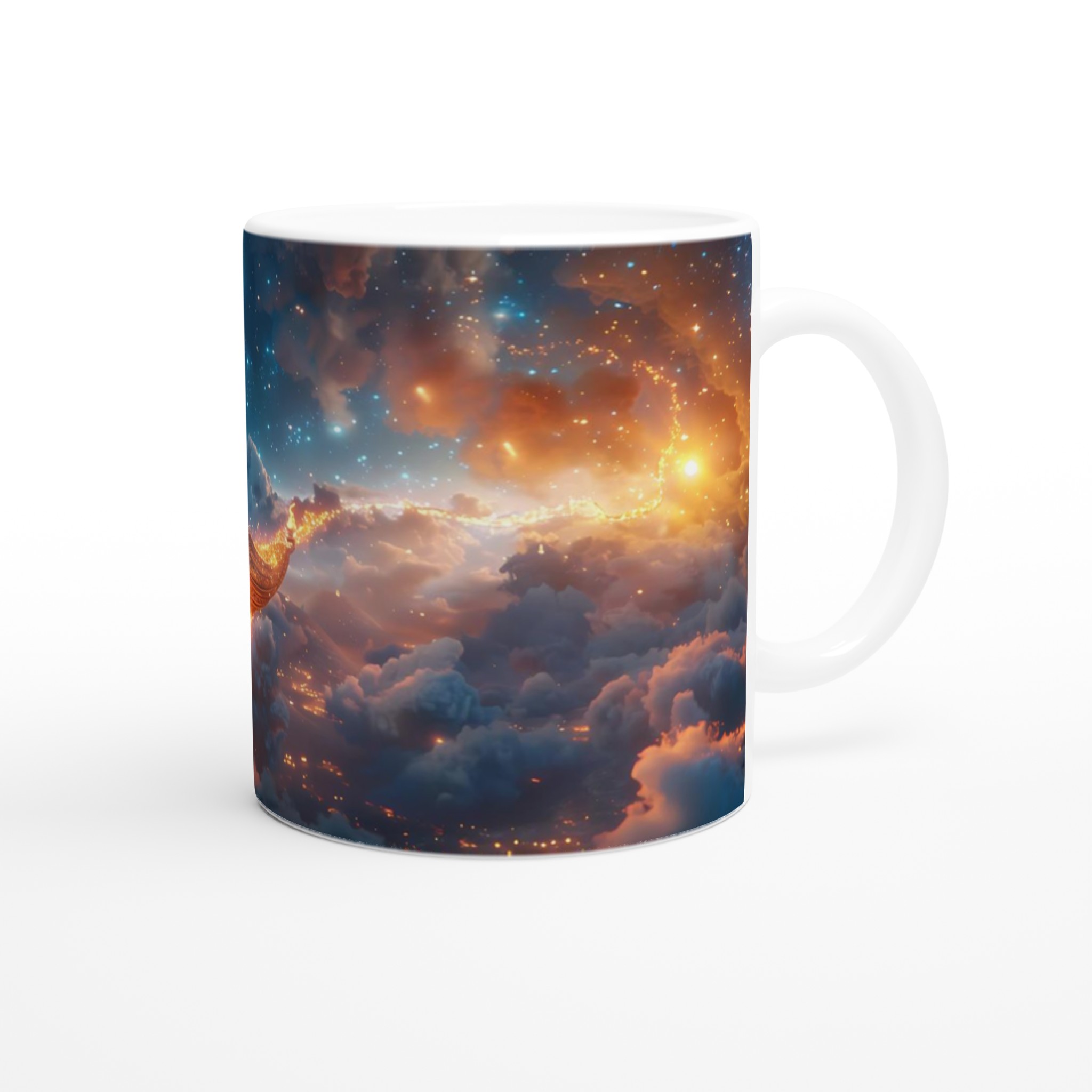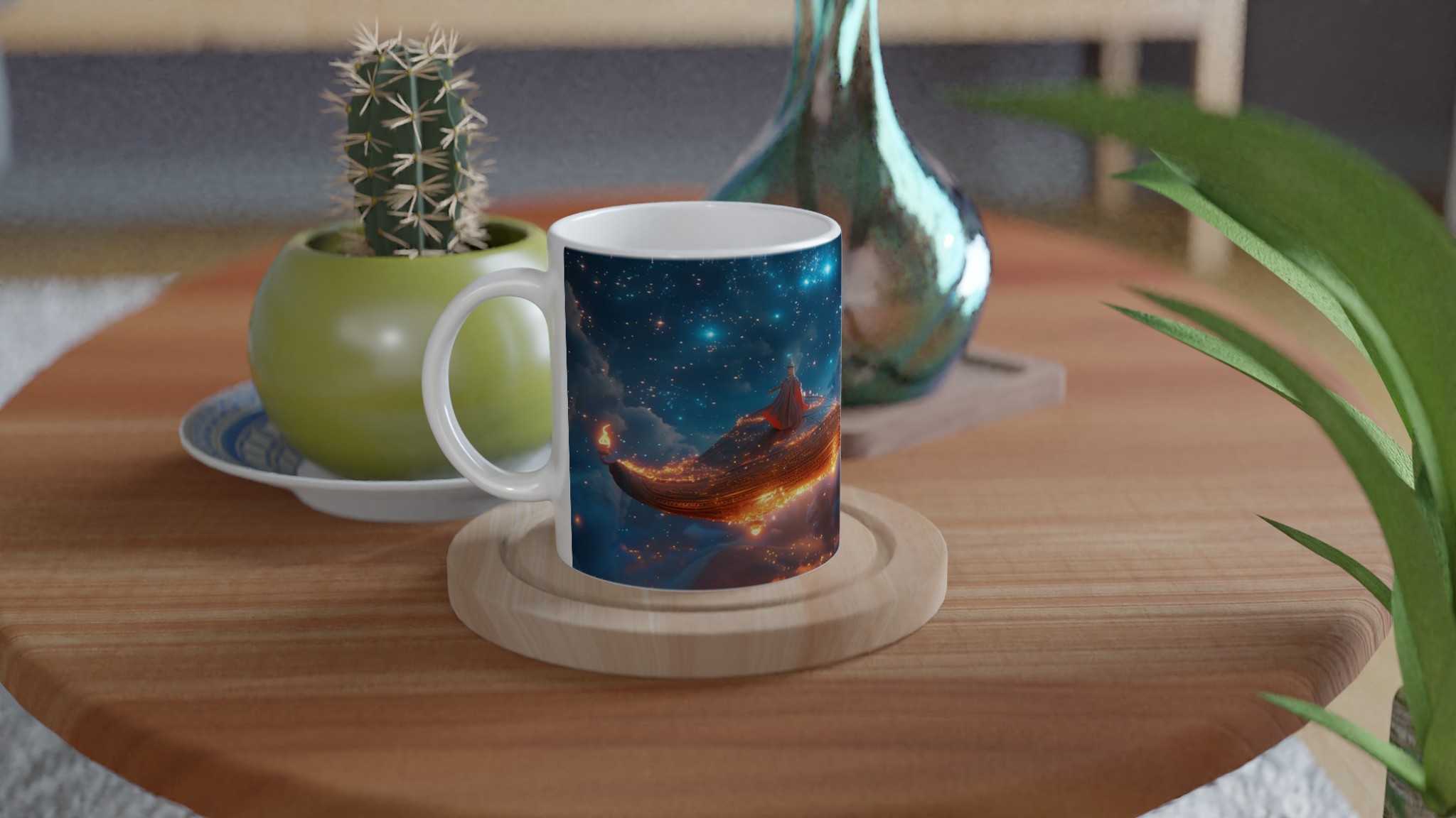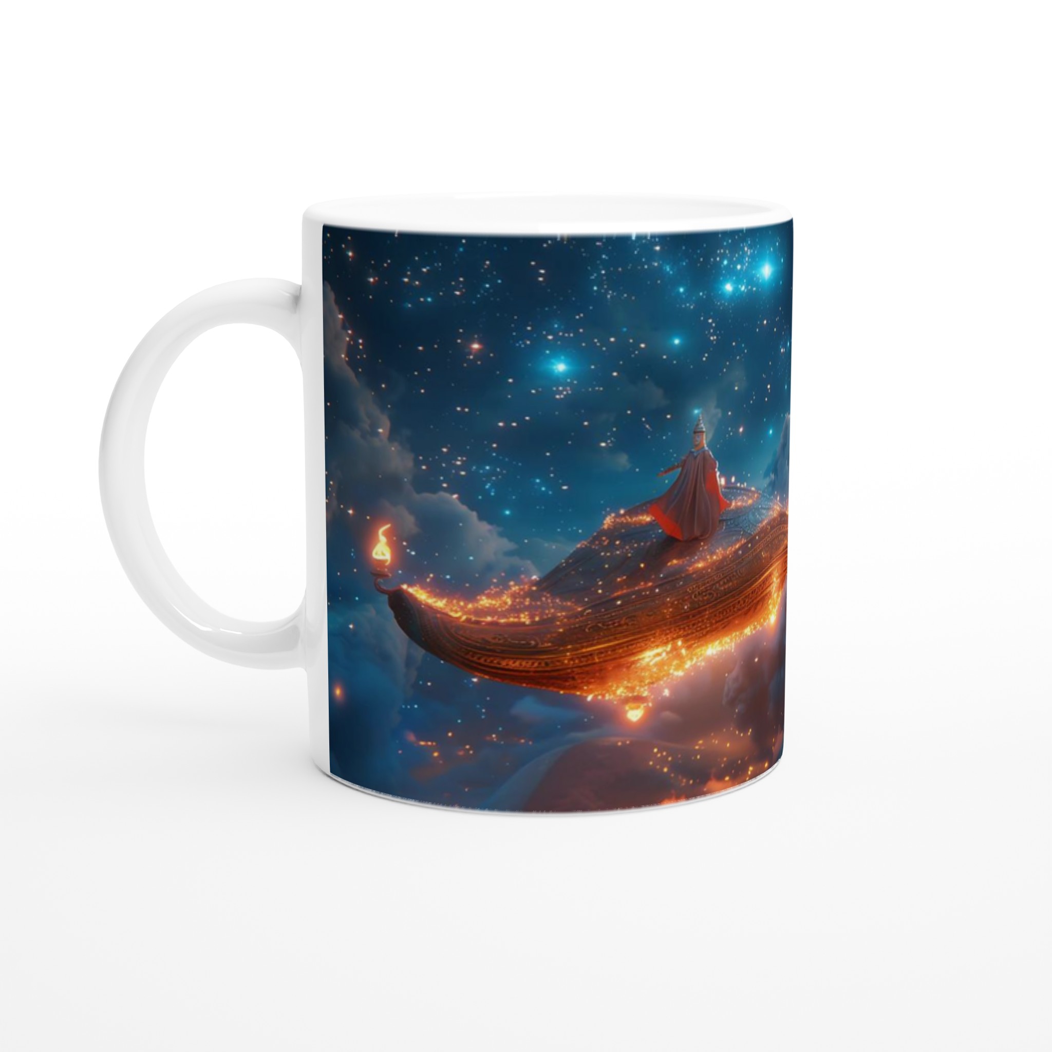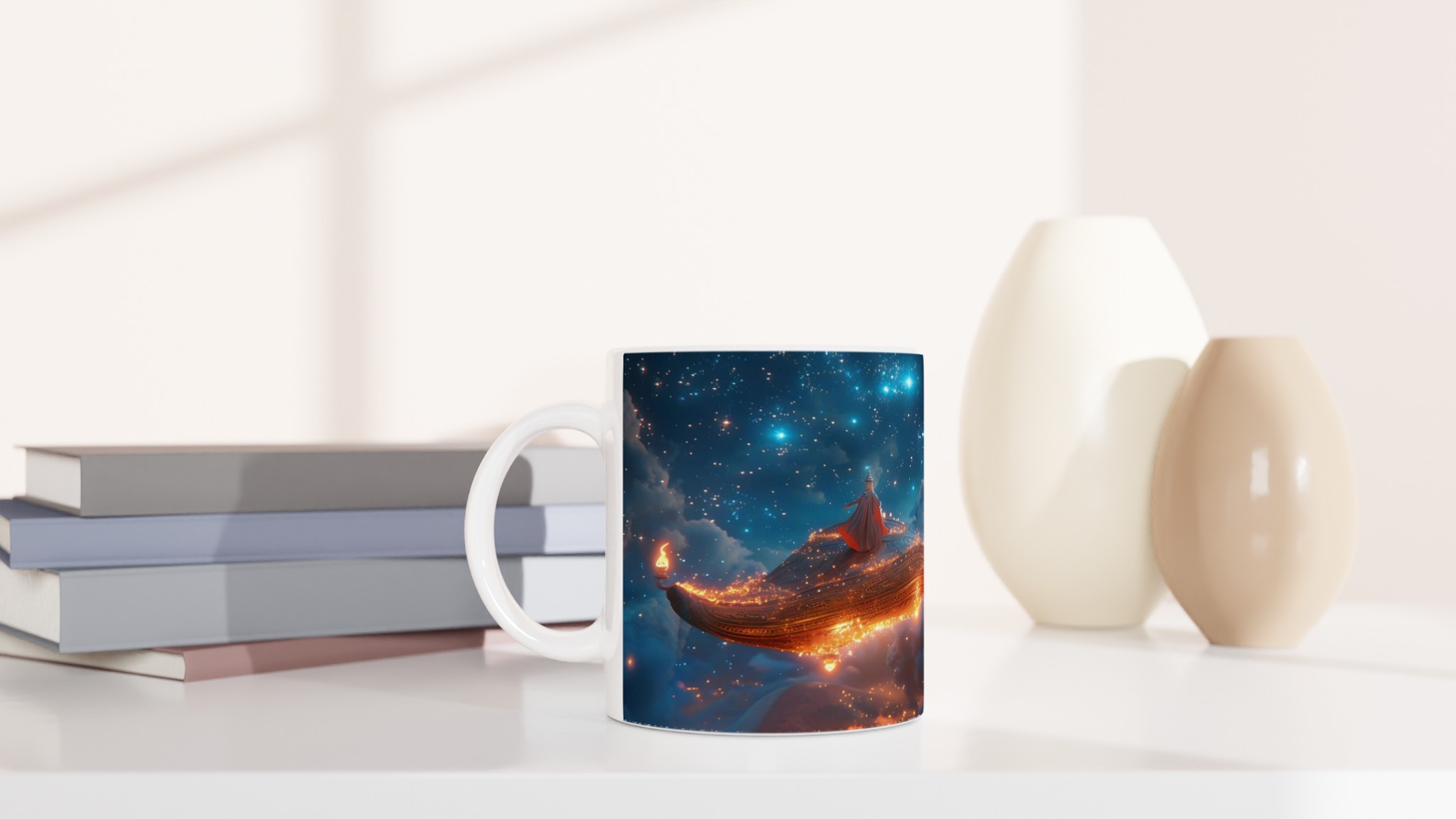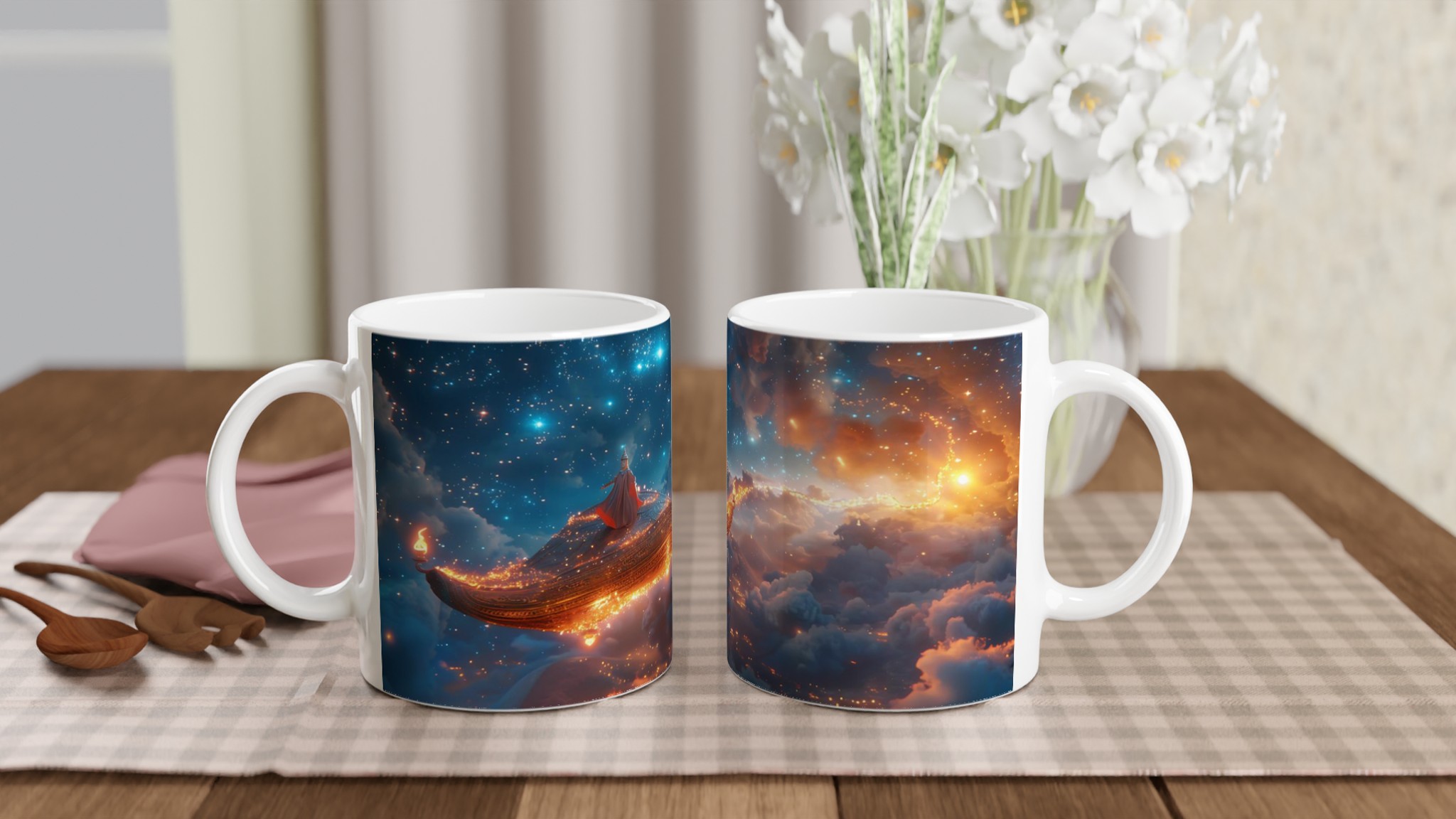 Lyft din vardagliga fikastund till nya galaxer med vår Magiska Nattmugg! Inspirerad av stjärnklara nätter och magiska äventyr, bjuder denna unika keramikmugg in till drömska stunder. Föreställ dig att sväva bland glittrande stjärnor medan du njuter av morgonkaffet, kvällens varma choklad eller en lugn kopp te. Dess blanka yta framhäver tryckets förtrollande färger, som förblir levande även efter otaliga resor genom mikron och diskmaskinen.
