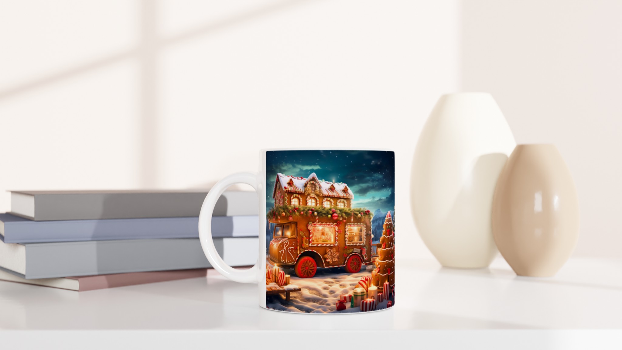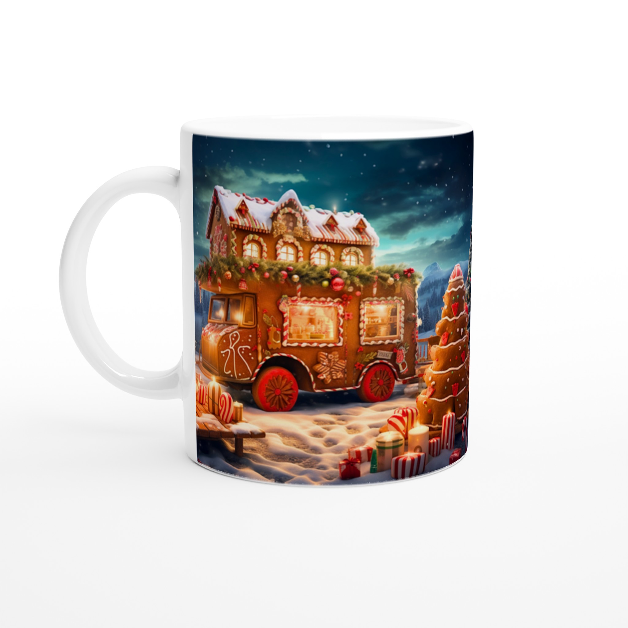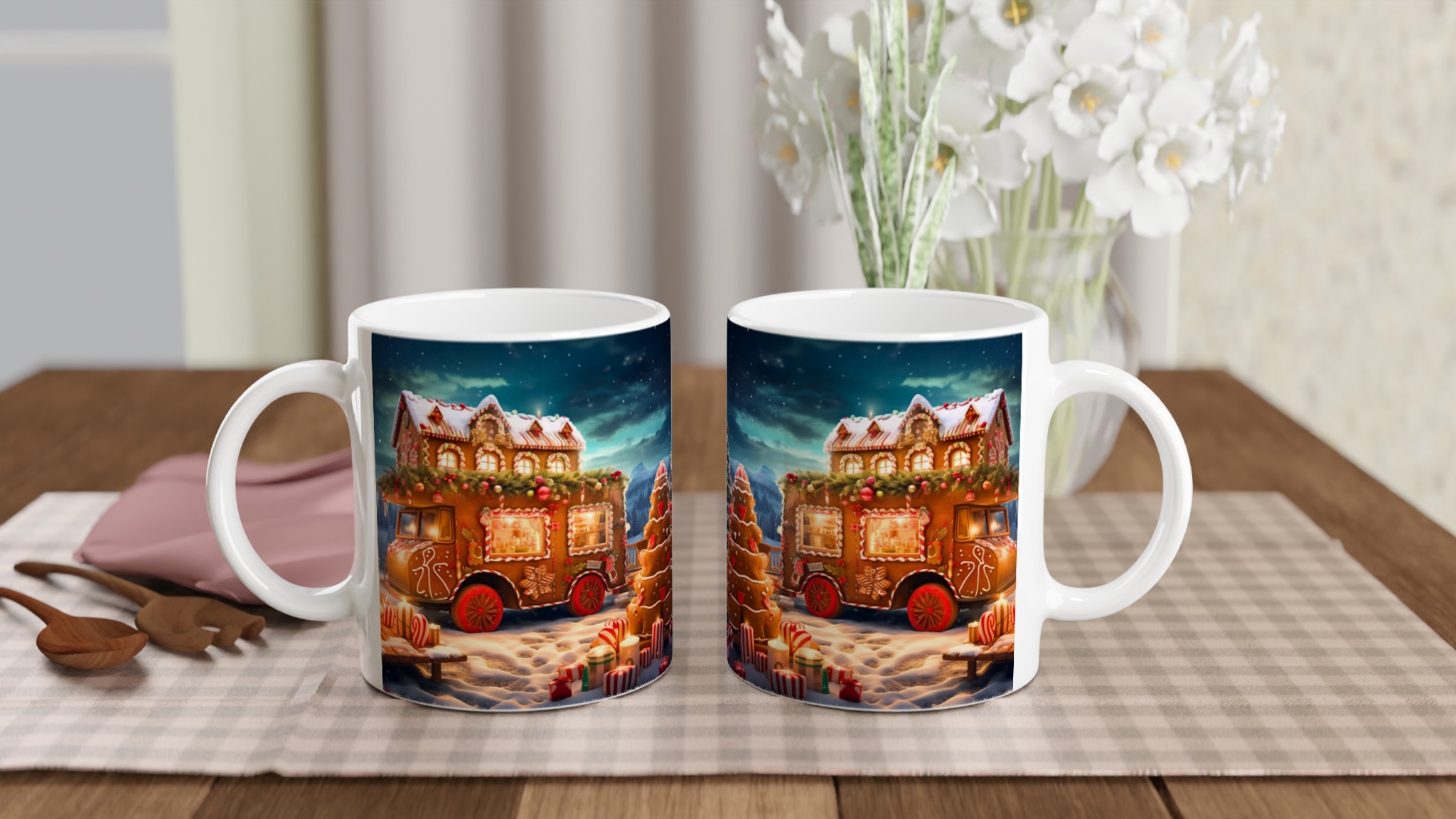 Fånga julens värme och magi med denna underbara keramiska mugg, prydd med ett förtrollande pepparkakshusmotiv. Den är den perfekta följeslagaren för dina mysiga stunder, oavsett om det är morgonkaffet som värmer, kvällens söta varma choklad, eller en lugn stund med en kopp te. Den blanka vita ytan framhäver det detaljrika trycket med enastående klarhet och levande färger, som håller sig lika fina även efter otaliga turer i mikron och diskmaskinen, år efter år.