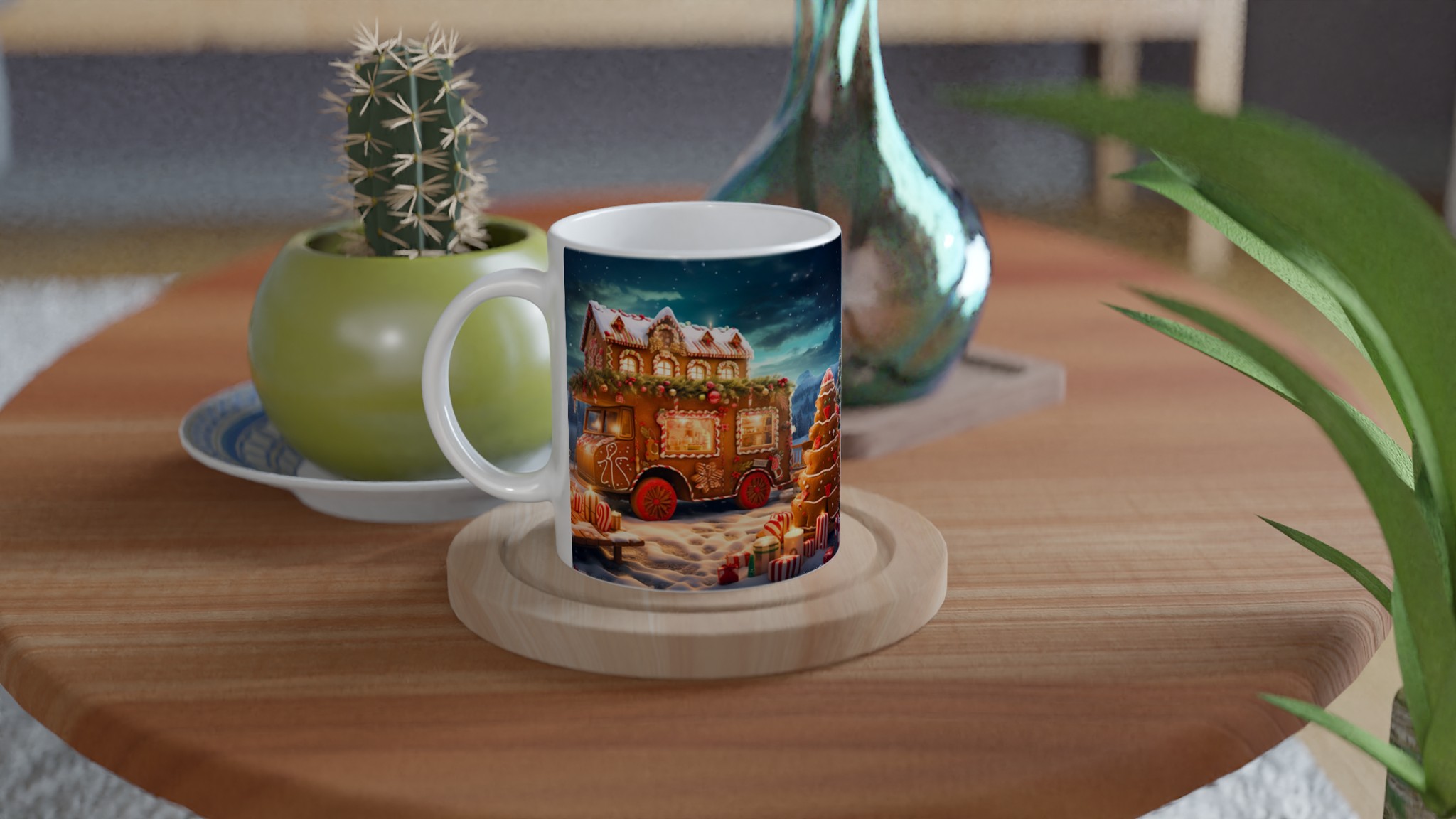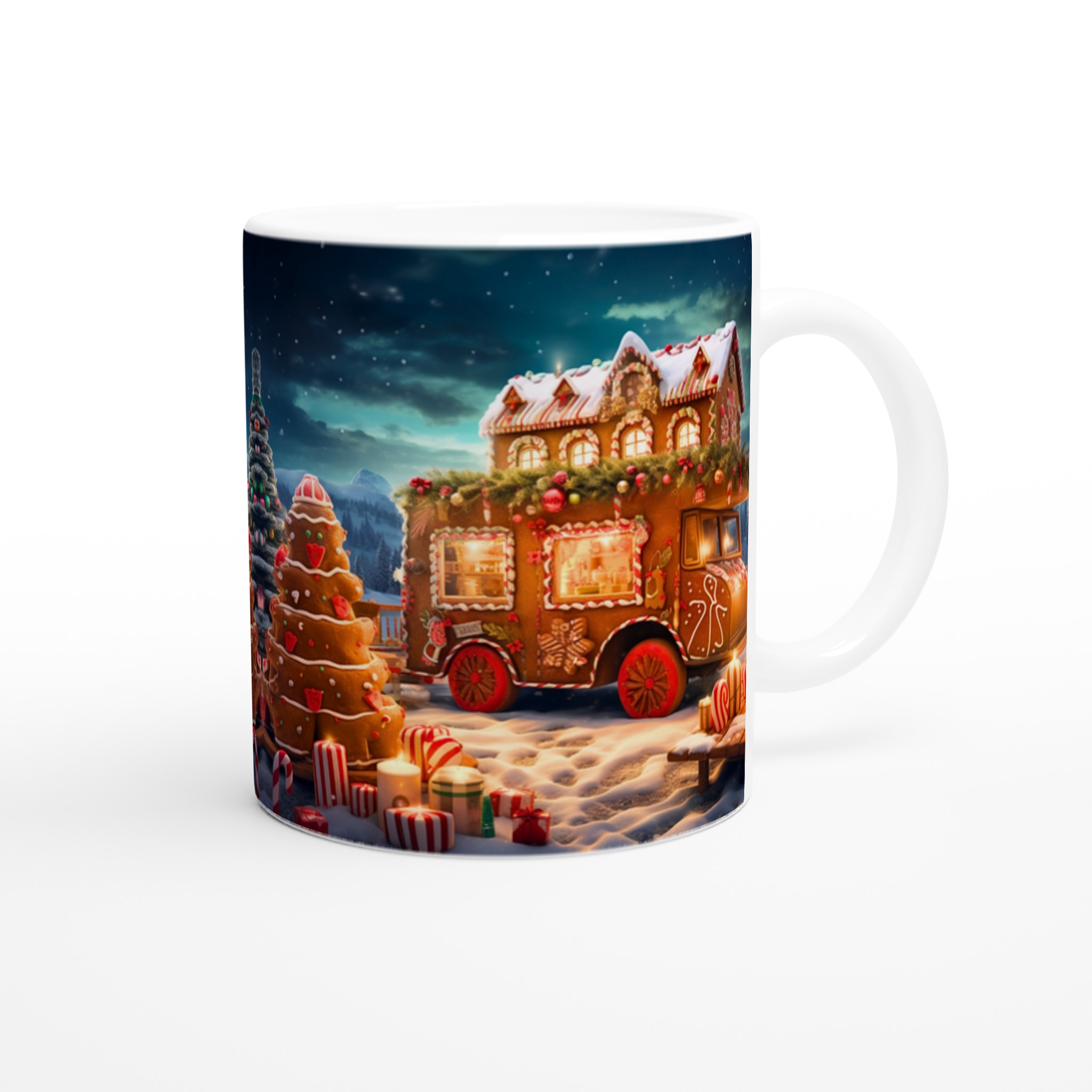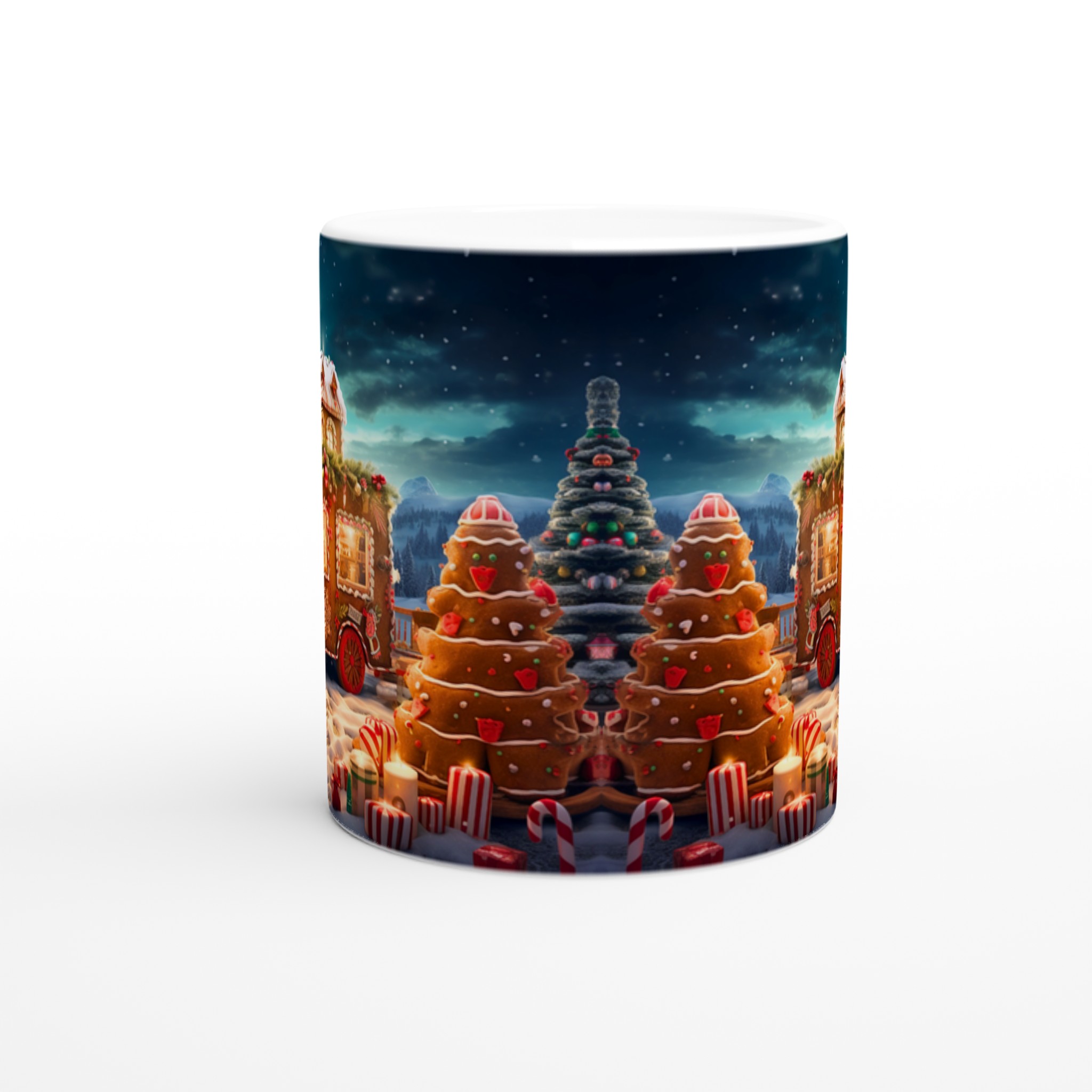 Fånga julens värme och magi med denna underbara keramiska mugg, prydd med ett förtrollande pepparkakshusmotiv. Den är den perfekta följeslagaren för dina mysiga stunder, oavsett om det är morgonkaffet som värmer, kvällens söta varma choklad, eller en lugn stund med en kopp te. Den blanka vita ytan framhäver det detaljrika trycket med enastående klarhet och levande färger, som håller sig lika fina även efter otaliga turer i mikron och diskmaskinen, år efter år.