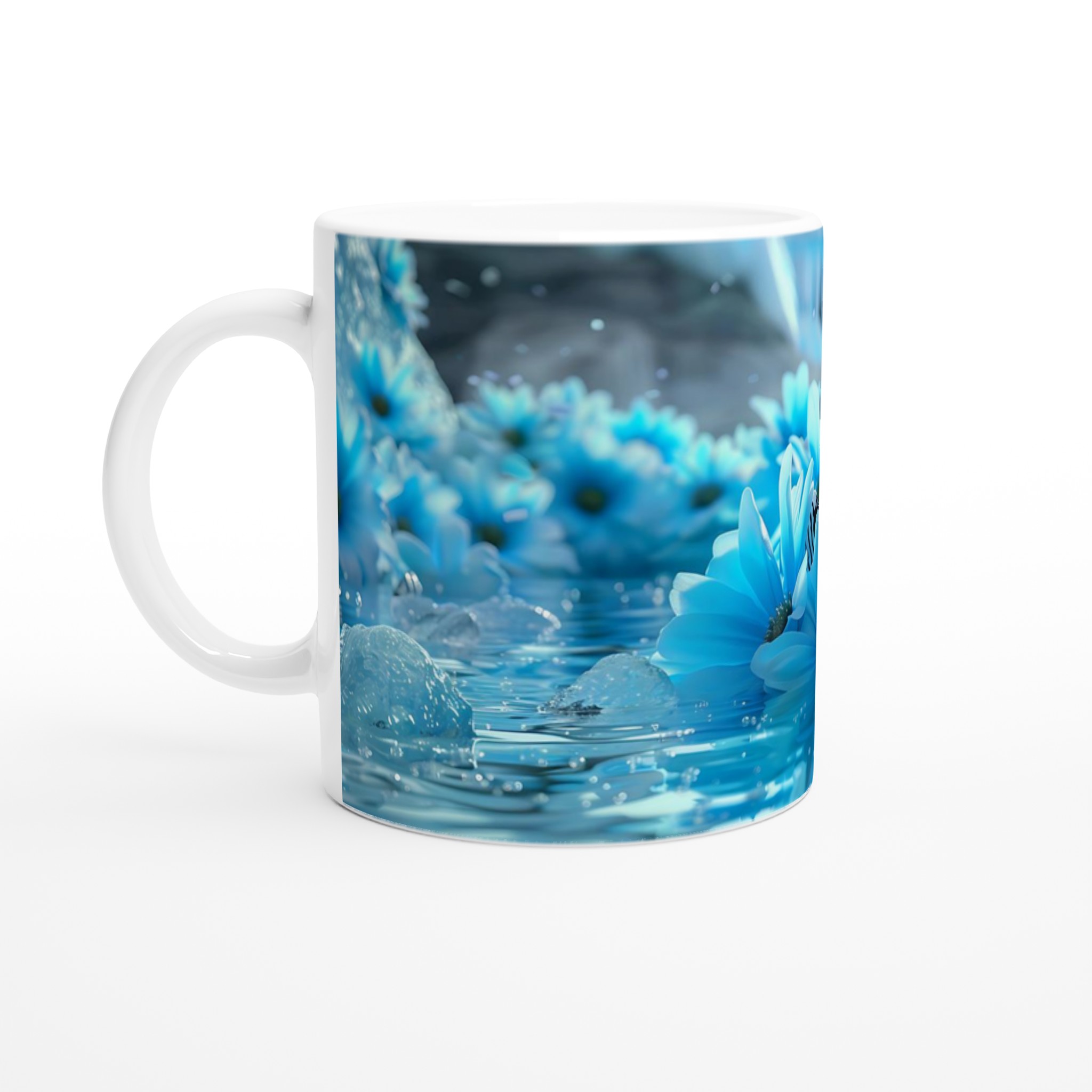 Föreställ dig en värld där is möter blomsterprakt med vår förtrollande mugg. Denna design fångar den lugna skönheten hos en majestätisk pingvin omgiven av glittrande isblommor och iskristaller, allt i en palett av lugnande blått och vitt. Perfekt för den som älskar unika, drömska motiv och vill addera en touch av magi till sin vardag.