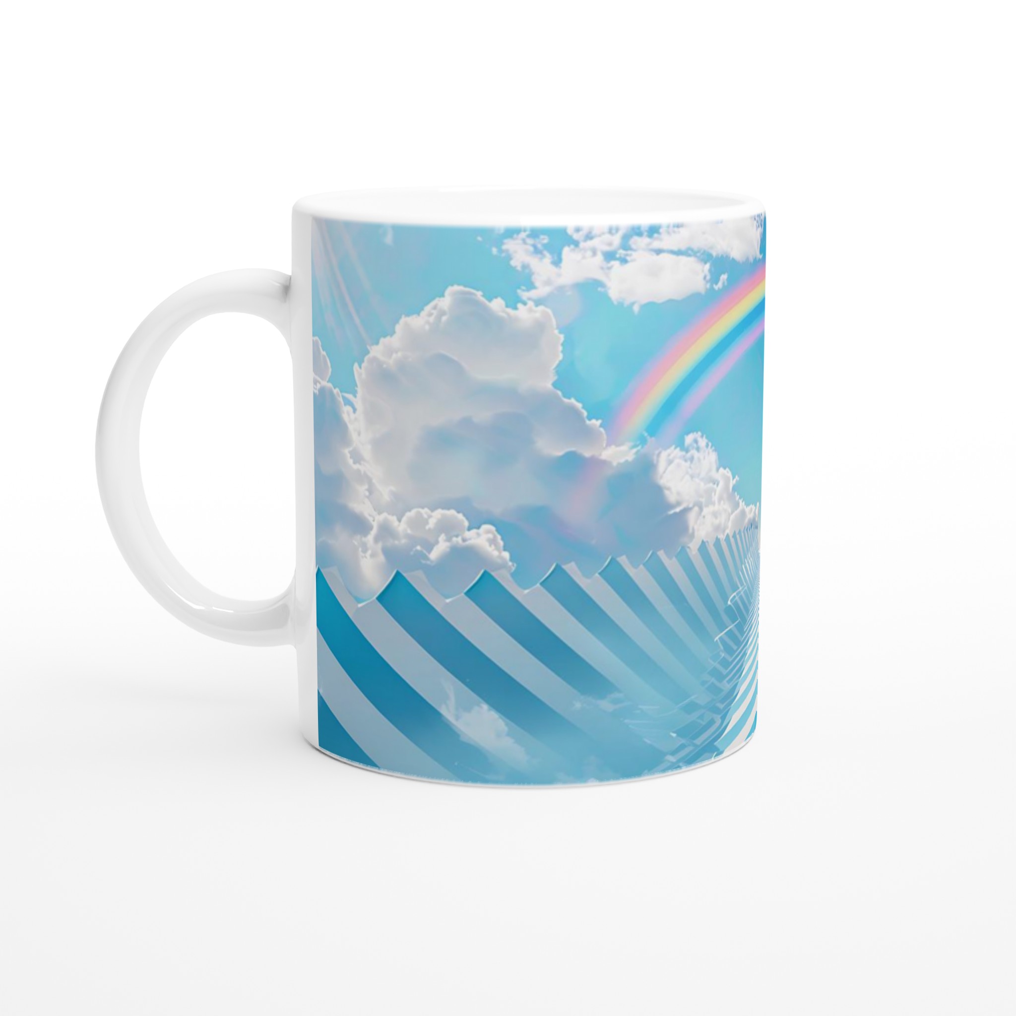 Lyft varje kaffestund med vår premium keramikmugg – stilren, hållbar och skapad för att låta ditt motiv glänsa. Inspirerad av regnbågens lugna skönhet och den oändliga himlens frihet, ger denna mugg en touch av magi till din dag. Den blanka vita ytan ger ett skarpt och levande tryck som verkligen sticker ut, oavsett om det är en personlig design, ett roligt citat eller en present till någon du tycker om.