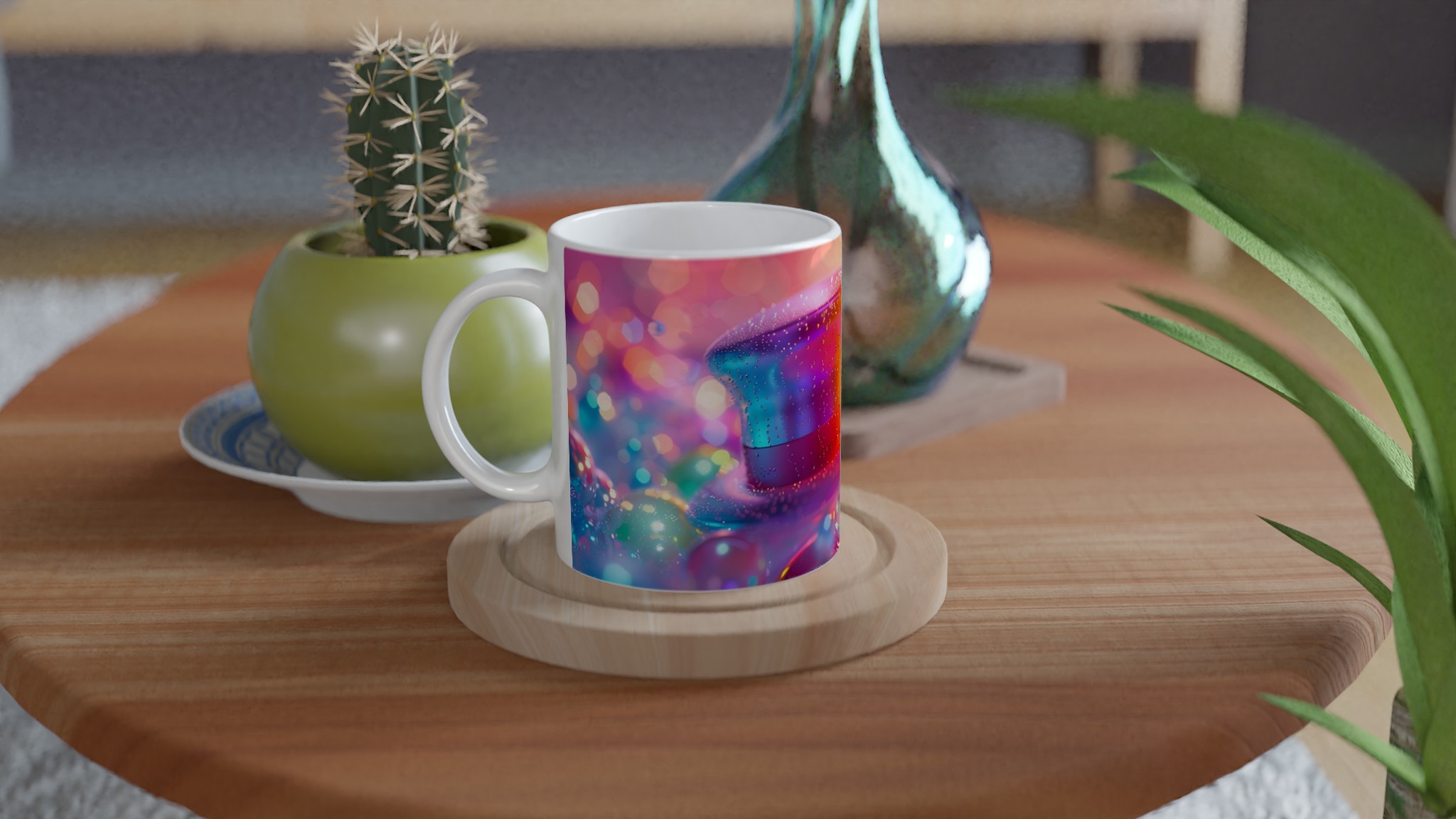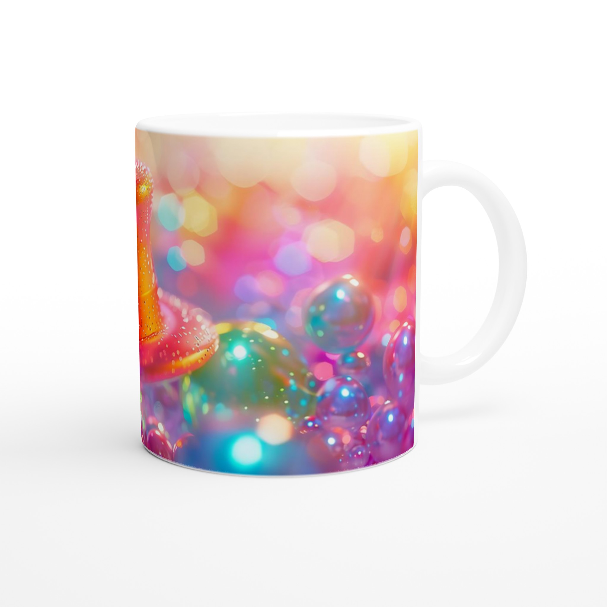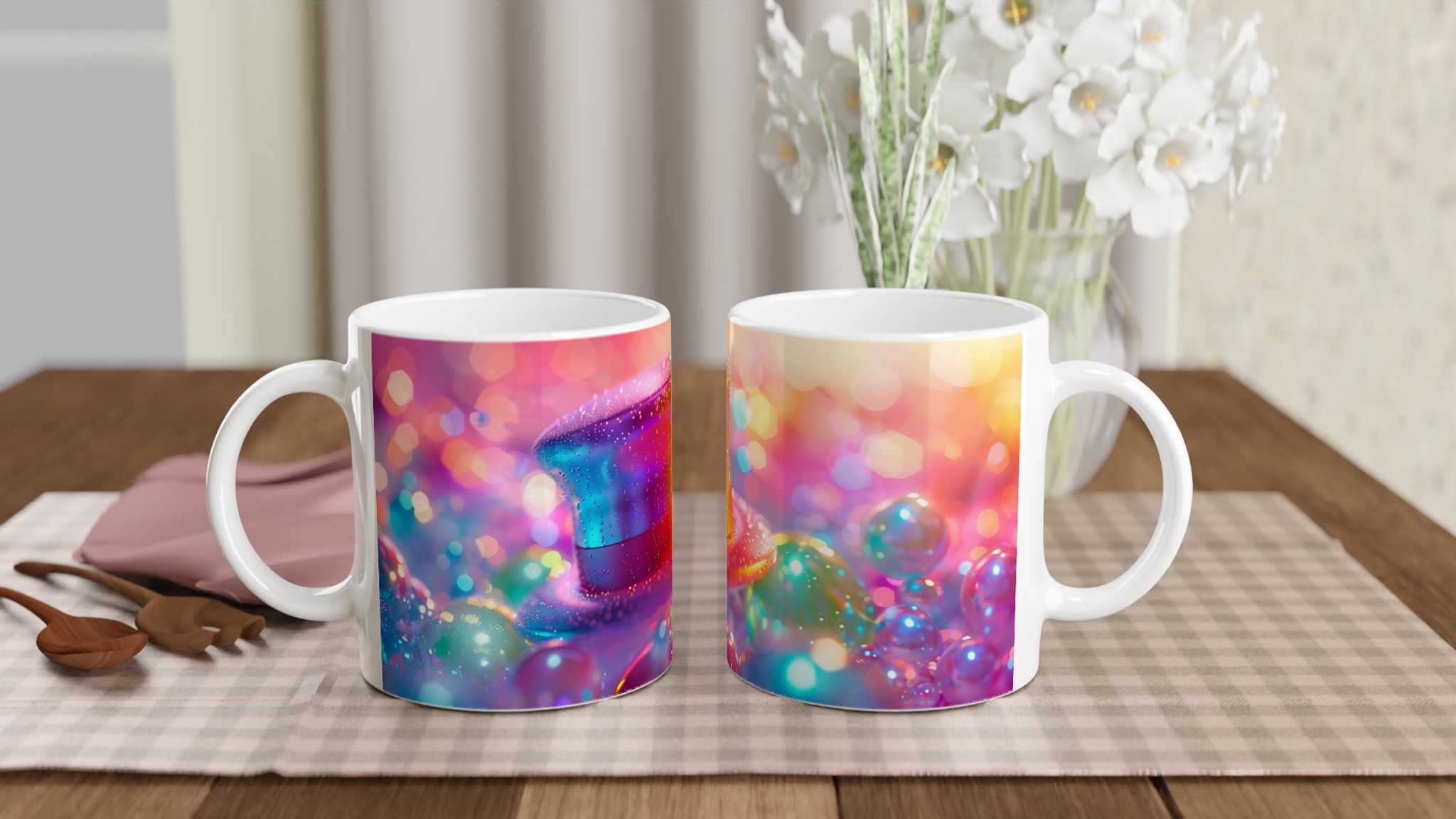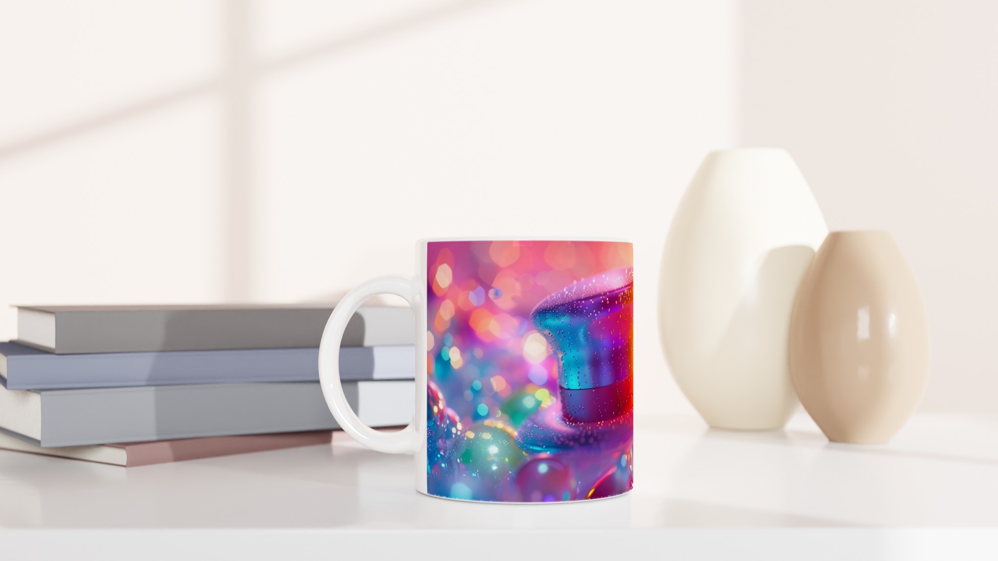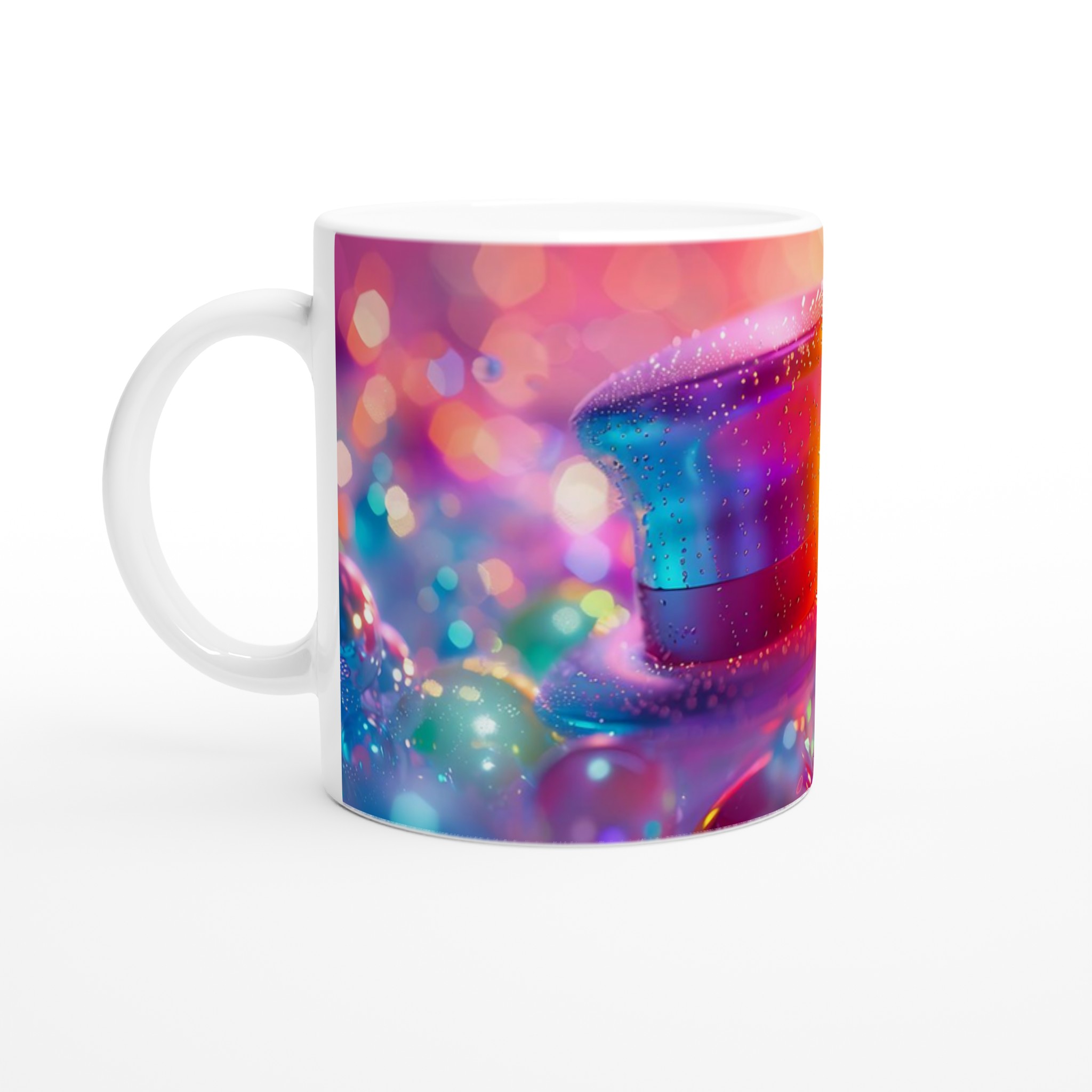 Väck din inre glädje med vår magiska regnbågsfärgade keramiska mugg! Denna stilrena och vackra mugg är den perfekta följeslagaren för alla dagens stunder – oavsett om det är morgonkaffet, en värmande kopp te eller en härlig varm choklad. Den blanka vita ytan ger din valda design ett fantastiskt lyft, vilket gör muggen till en riktig favorit i vardagen. Föreställ dig hur varje klunk blir en fest för sinnena, omgiven av glittrande nyanser som speglar den glada energin i bilden.